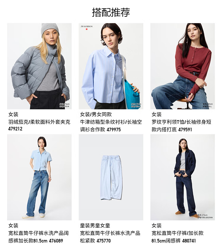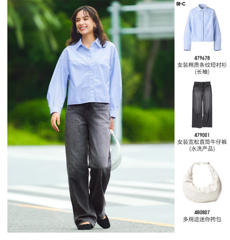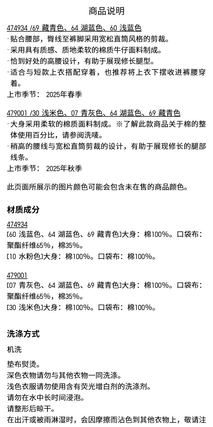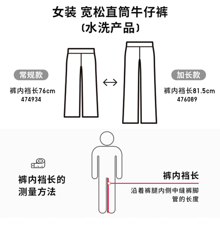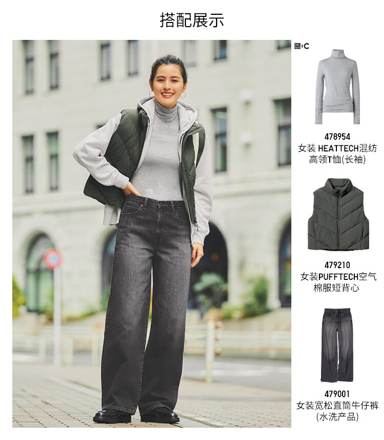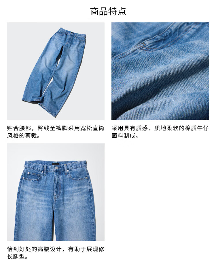 Uniqlo women's loose straight jeans/washed products/wide-feel pants new style 474934 479001 479001/64 lake blue 24/155/62A