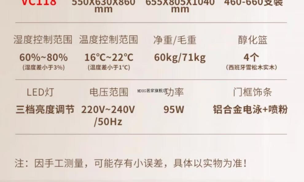 MDUG German imported quality high-end cigar cabinet constant temperature and humidity moisturizing German imported cedar solid wood humidifying cabinet fourth generation VC118 4th generation VC308 black 1000 pieces
