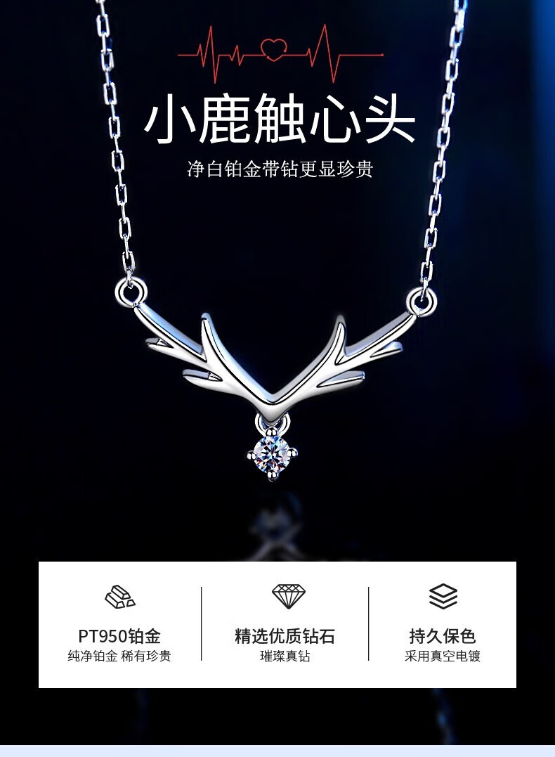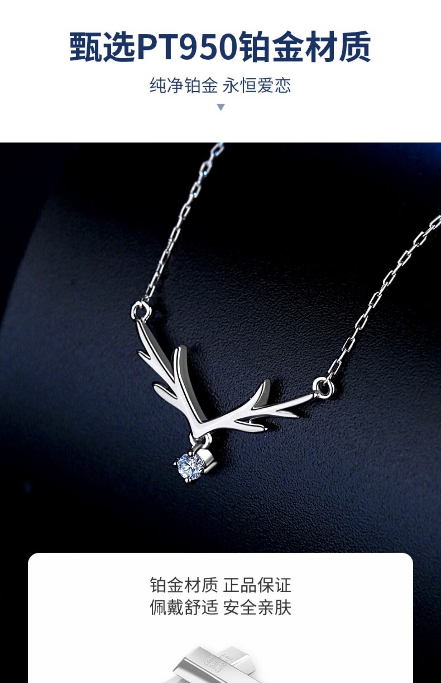 Chow Tai Sang PT950 platinum necklace for women, moissanite diamond necklace, best friend’s Chinese Valentine’s Day gift for girlfriend’s birthday, Yuluyou