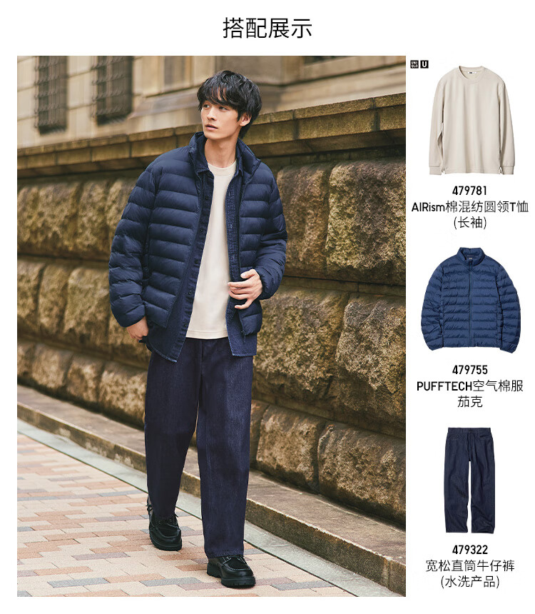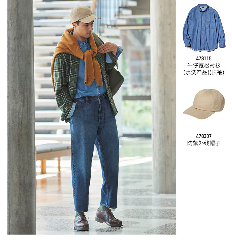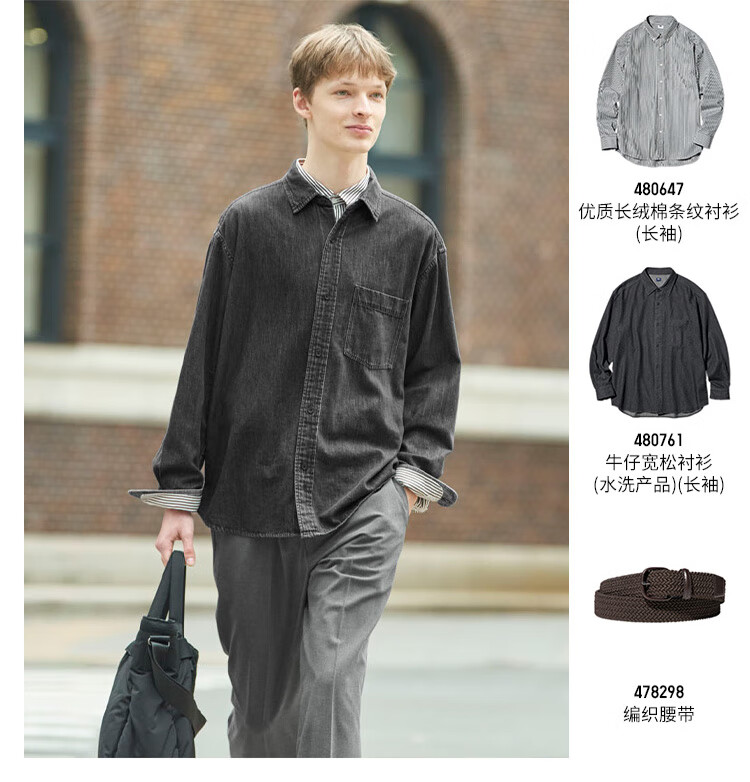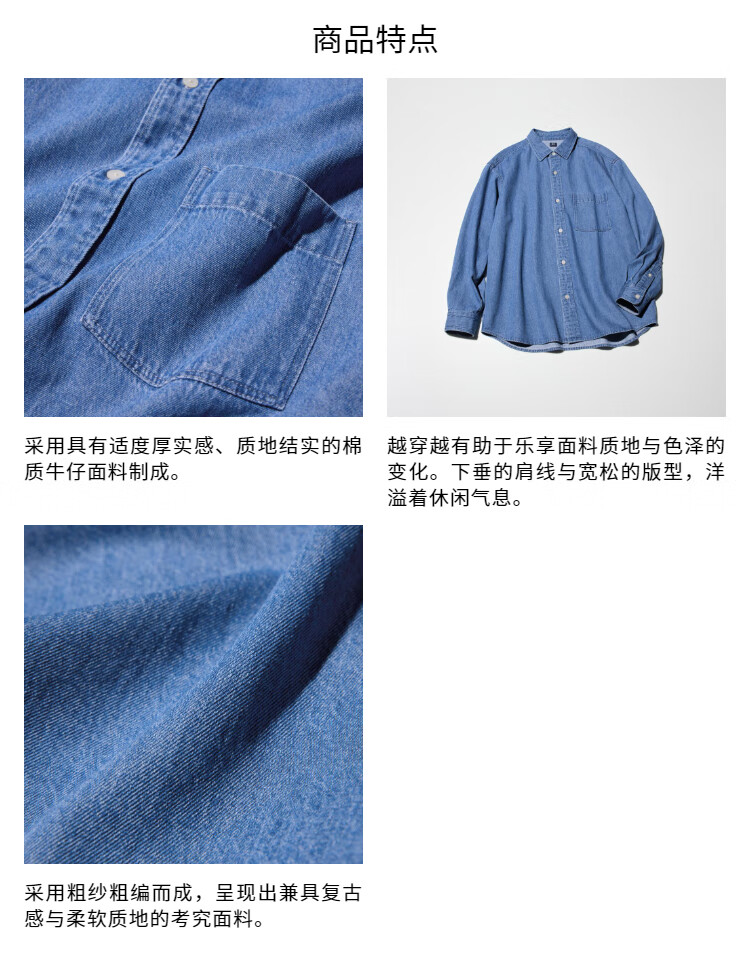 Uniqlo men's and women's denim loose shirt/washed product long-sleeved shirt 478115 480761 478115/65 royal blue L