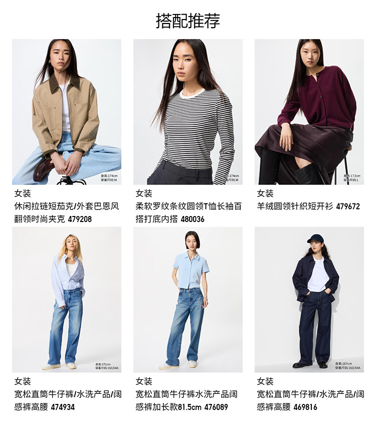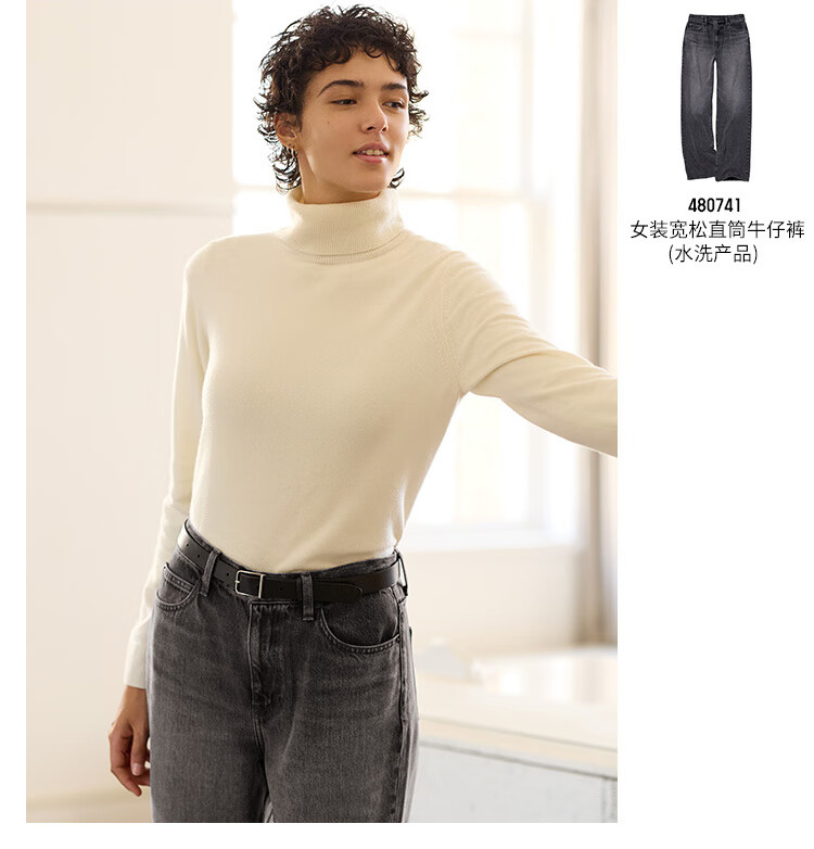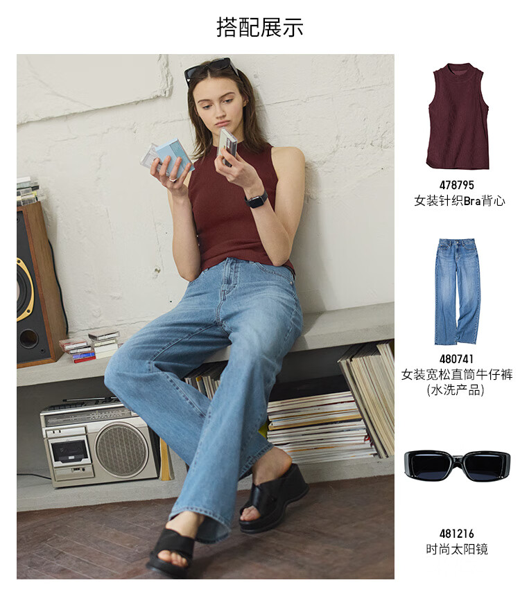 Uniqlo women's loose straight jeans/extended 81.5cm wide-feeling pants 25 autumn and winter new style 480741 07 blue gray 25/160/64A