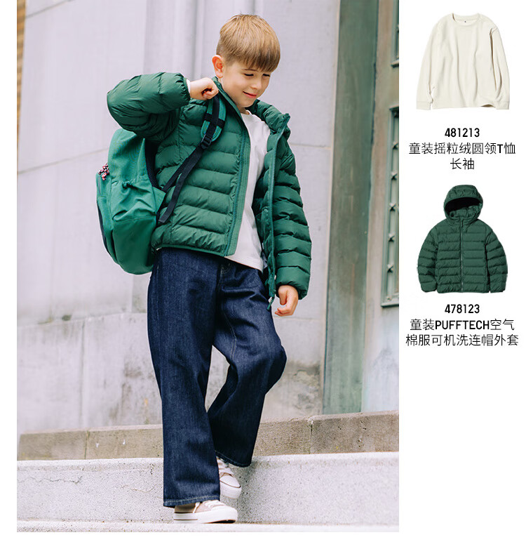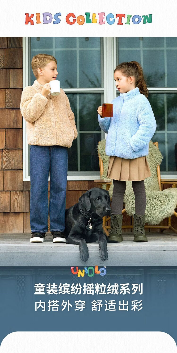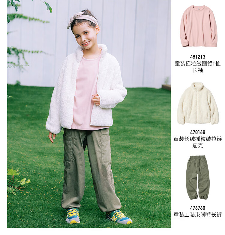 Uniqlo children's clothing boys and girls polar fleece round neck T-shirt long-sleeved fleece 25 autumn and winter new style 481213 01 milky white 160