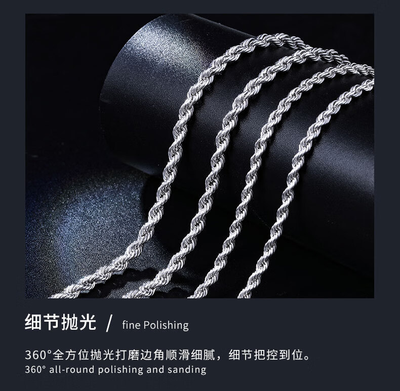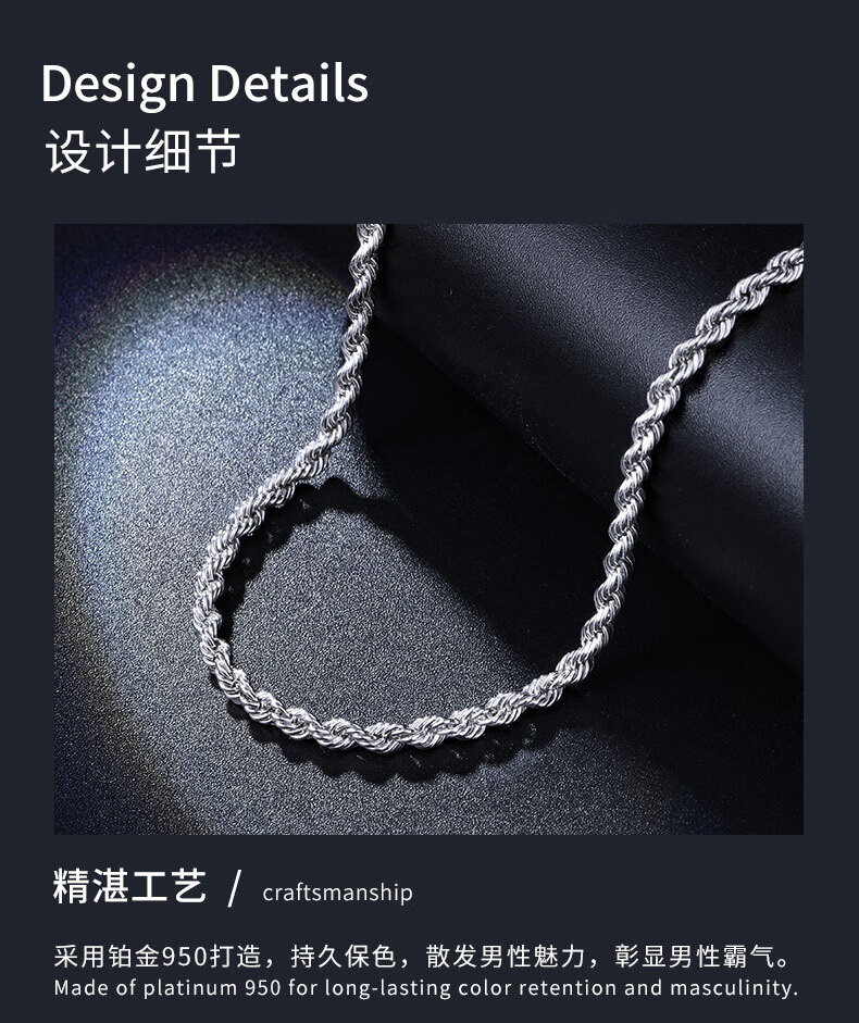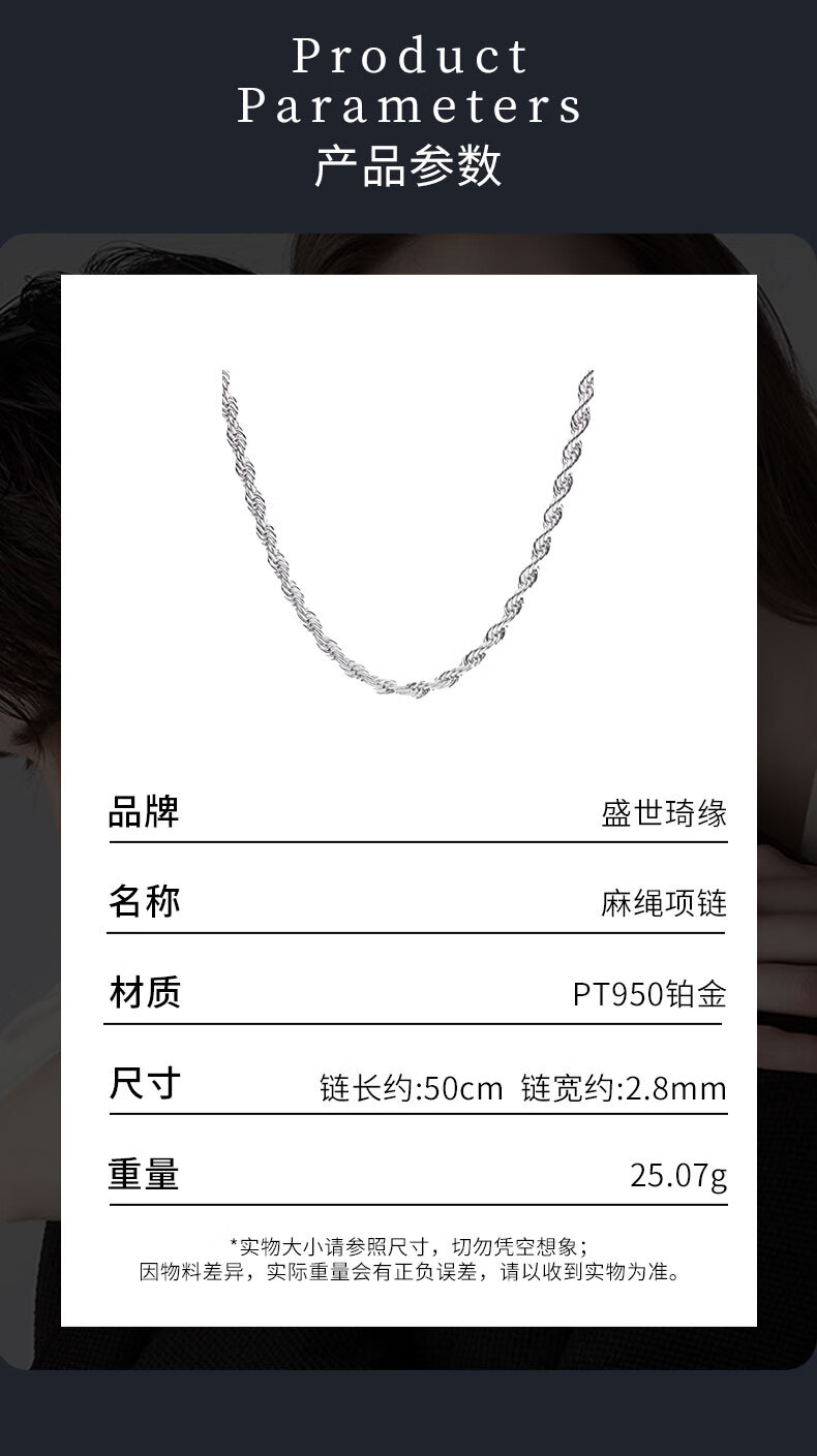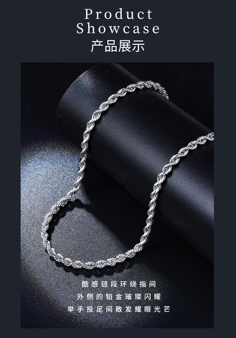 Shengshi Qiyuan platinum necklace men's pt950 platinum necklace men's genuine pure platinum full platinum pt999 hemp rope chain sweater chain 15.67 grams long 46cm platinum 950