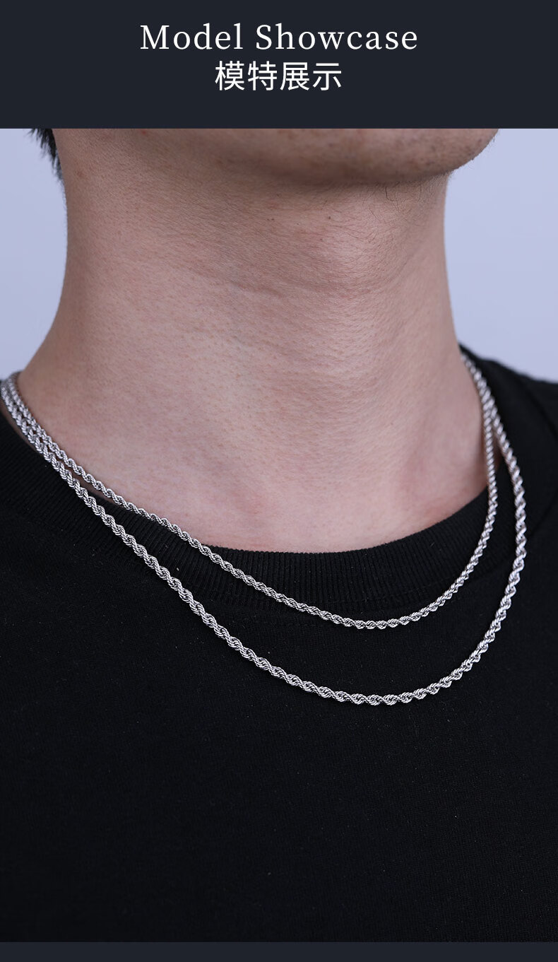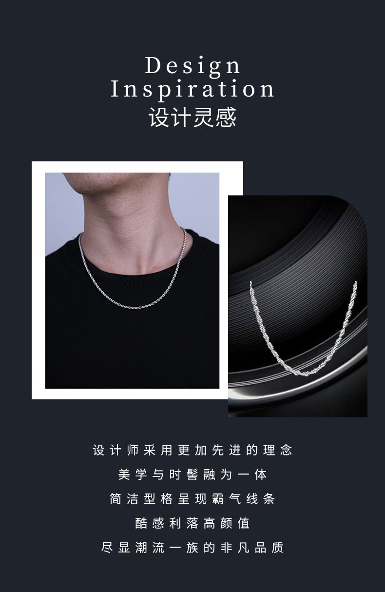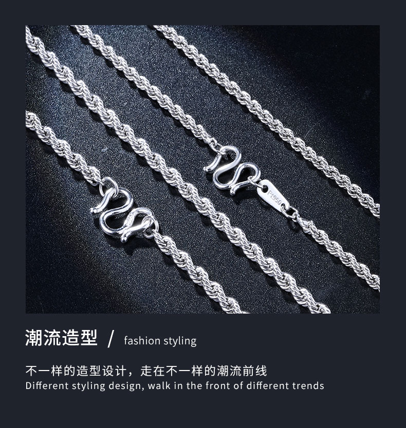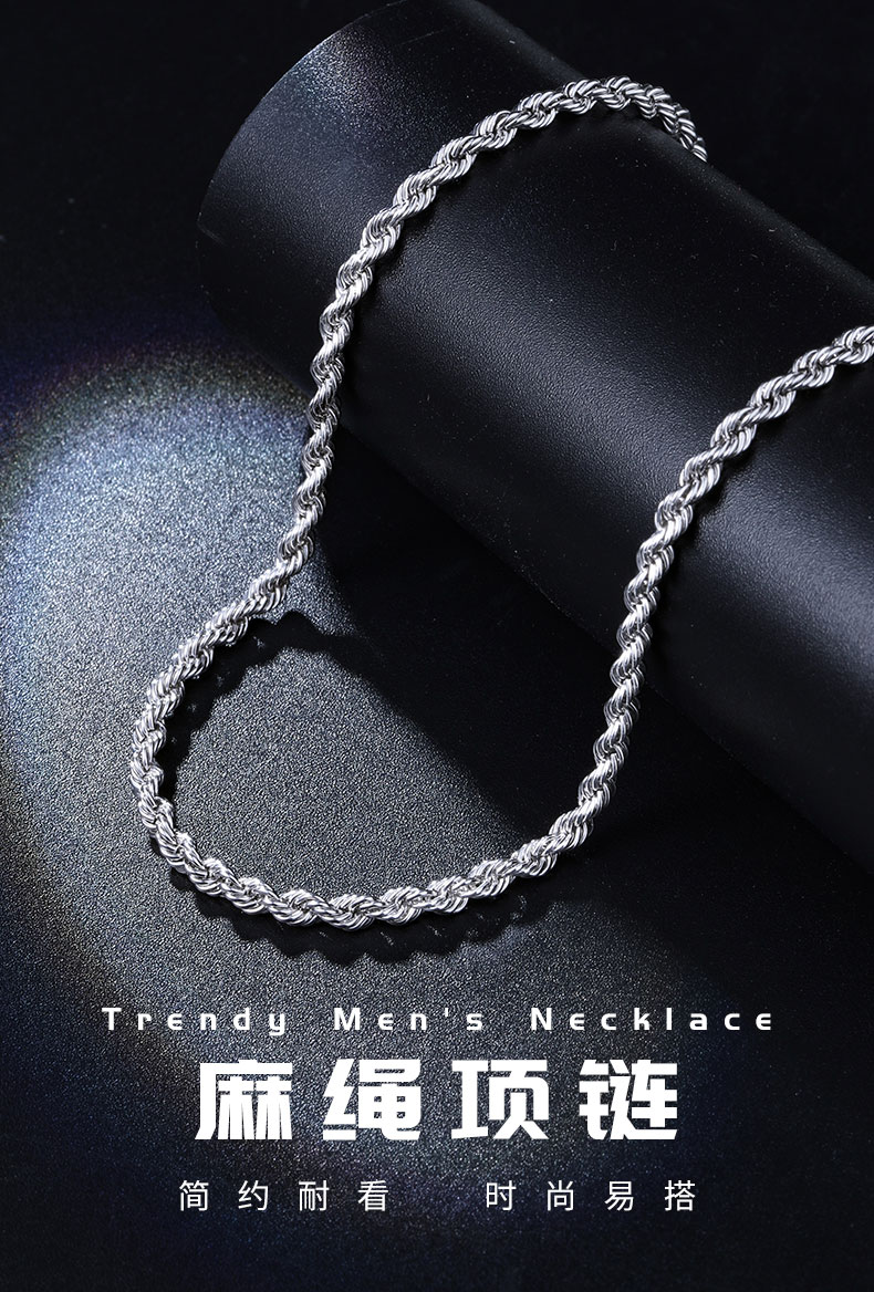 Shengshi Qiyuan platinum necklace men's pt950 platinum necklace men's genuine pure platinum full platinum pt999 hemp rope chain sweater chain 15.67 grams long 46cm platinum 950