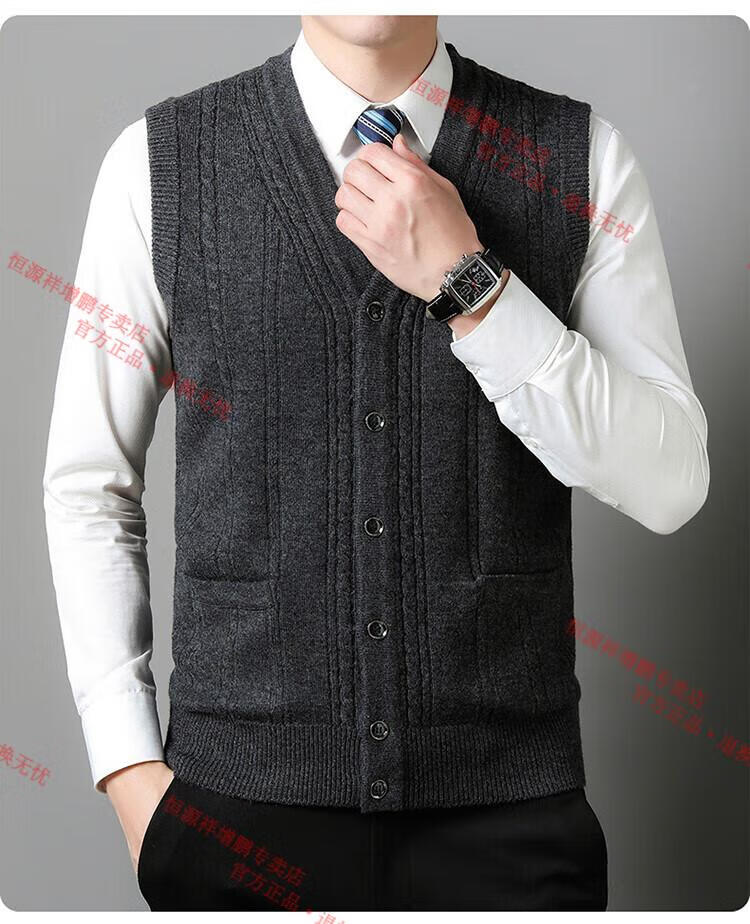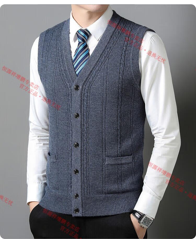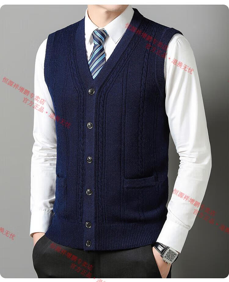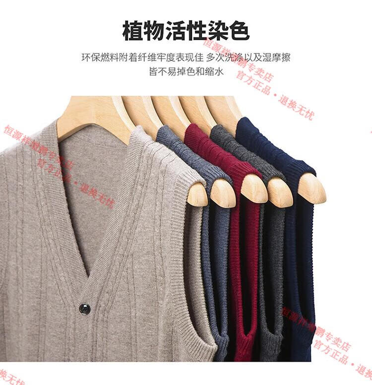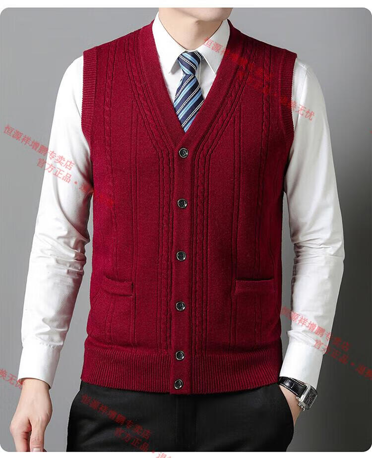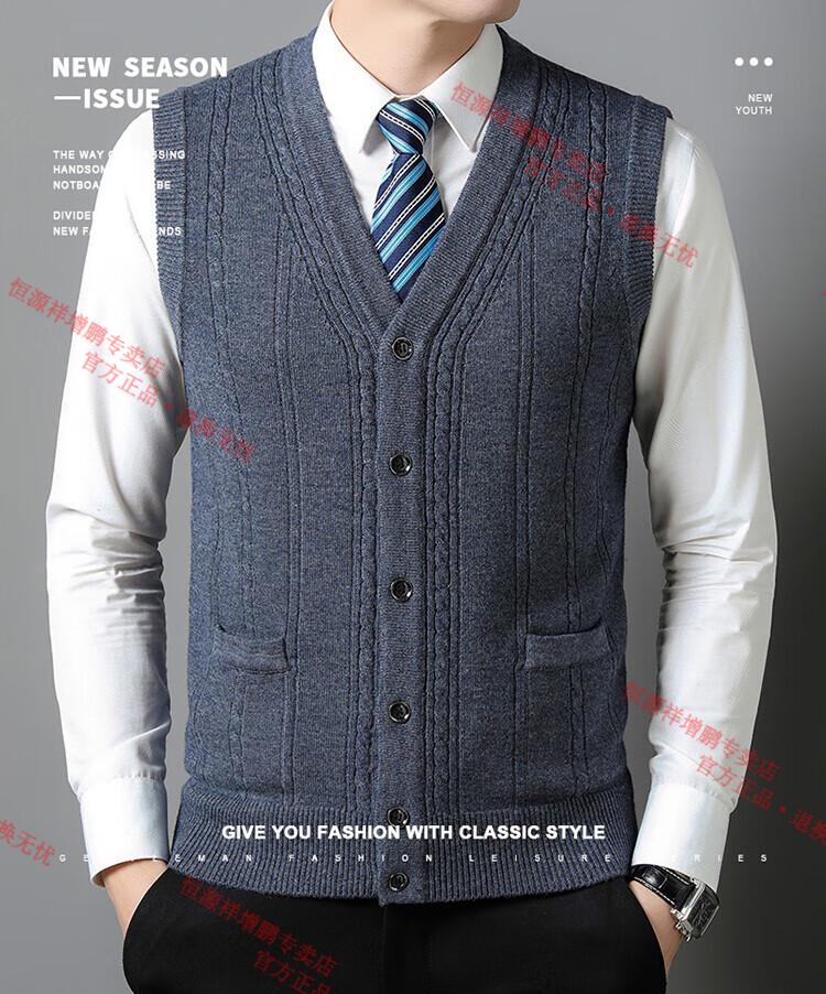 Hengyuanxiang 100% pure wool autumn and winter knitted cardigan vest for men autumn and winter V-neck thickened sleeveless waistcoat sweater Mituo M 165