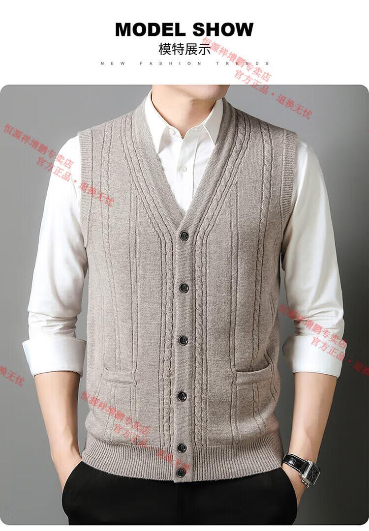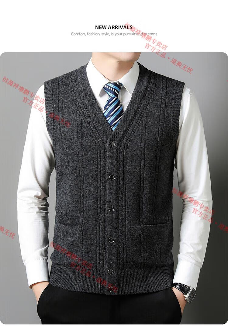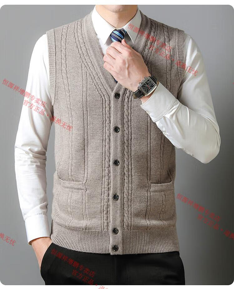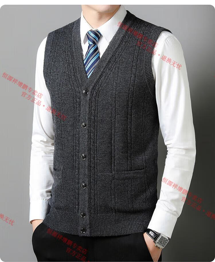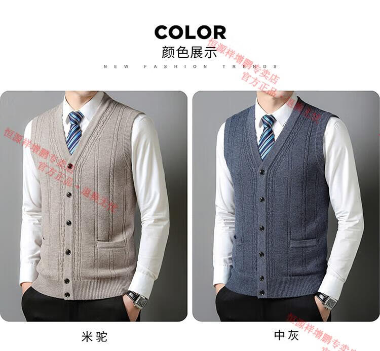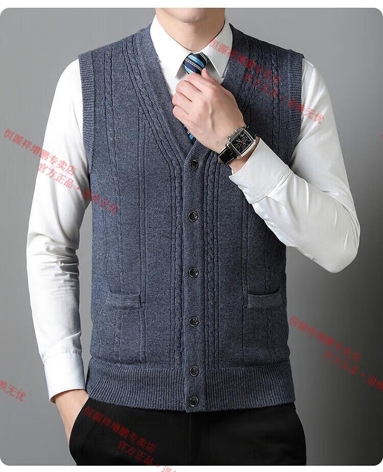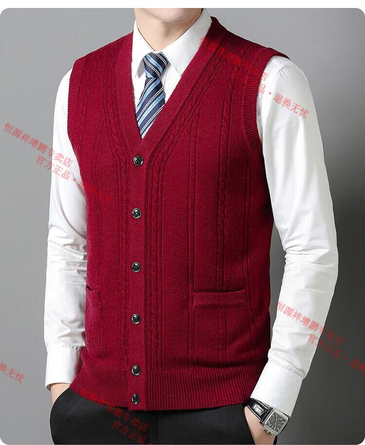 Hengyuanxiang 100% pure wool autumn and winter knitted cardigan vest for men autumn and winter V-neck thickened sleeveless waistcoat sweater Mituo M 165