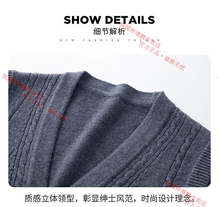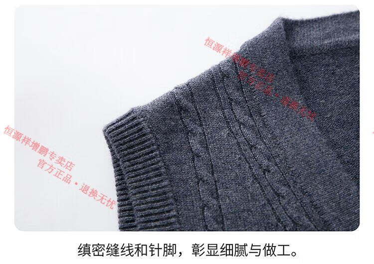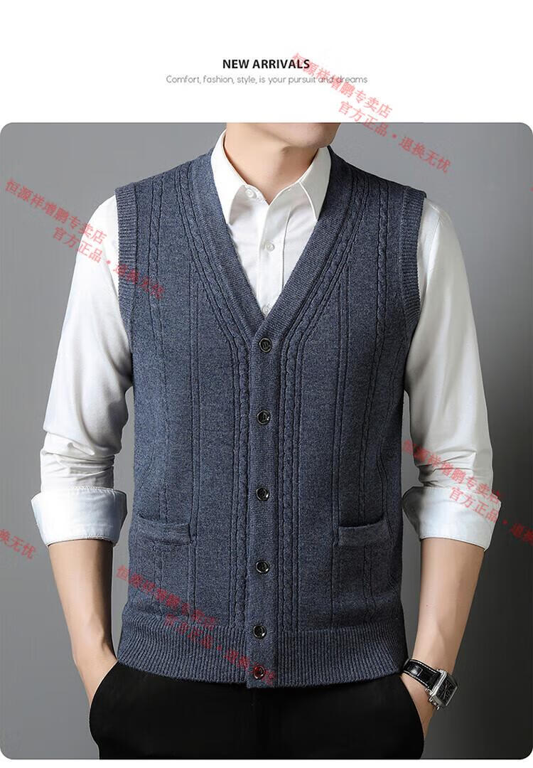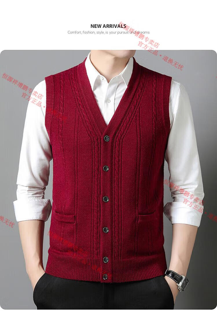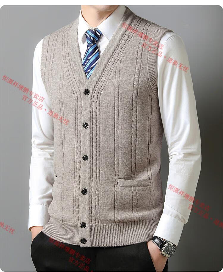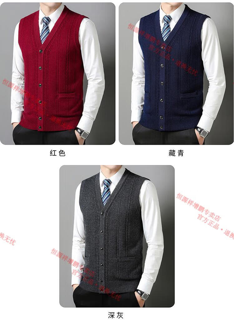 Hengyuanxiang 100% pure wool autumn and winter knitted cardigan vest for men autumn and winter V-neck thickened sleeveless waistcoat sweater Mituo M 165