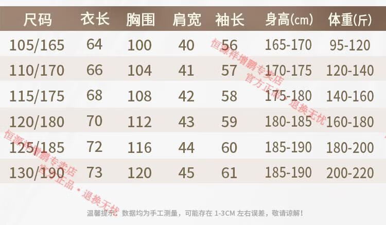 China (cm) 165 / 88-90 170 / 96-98 175 / 108-110 180 / 118-122 185 / 126-130