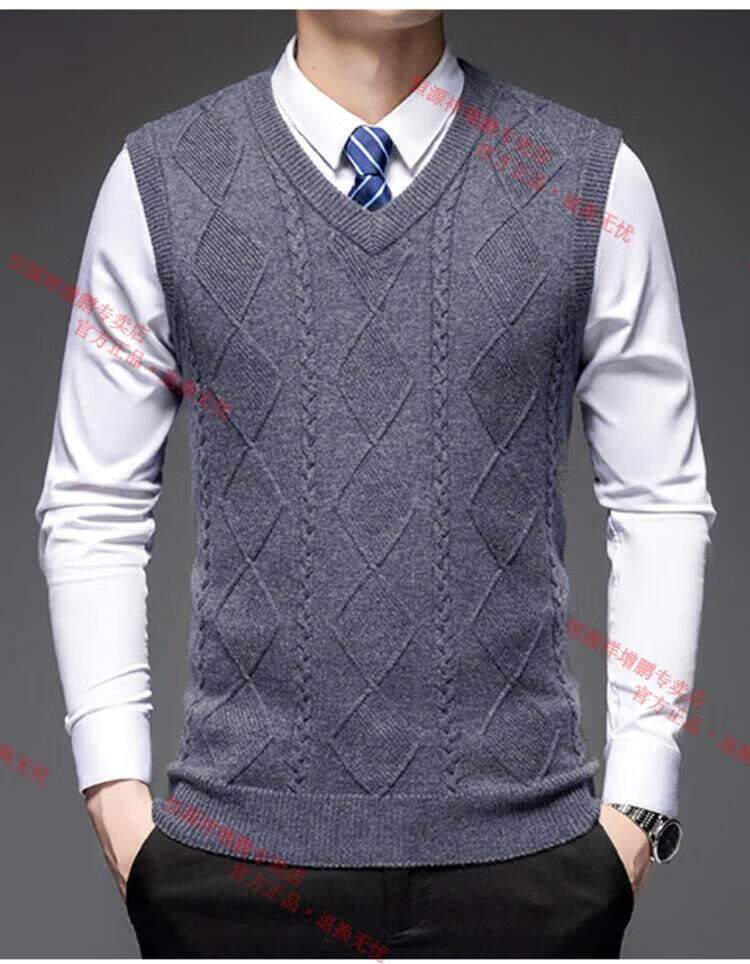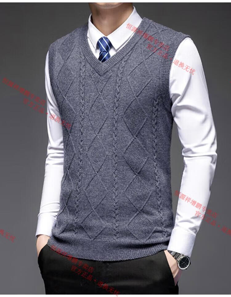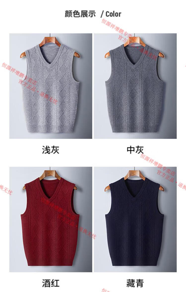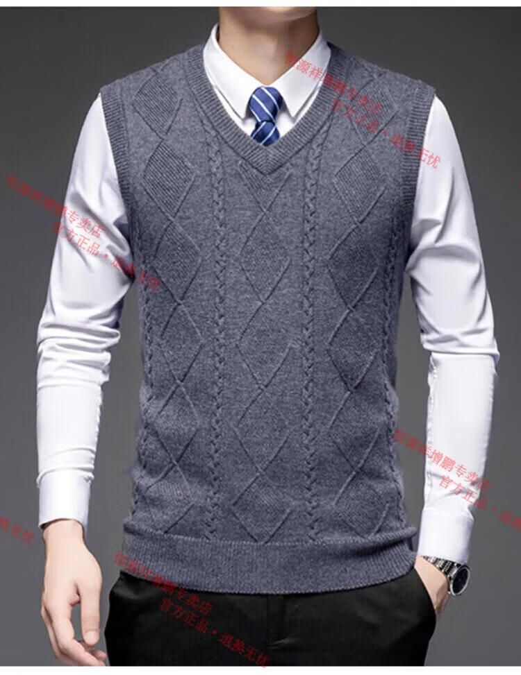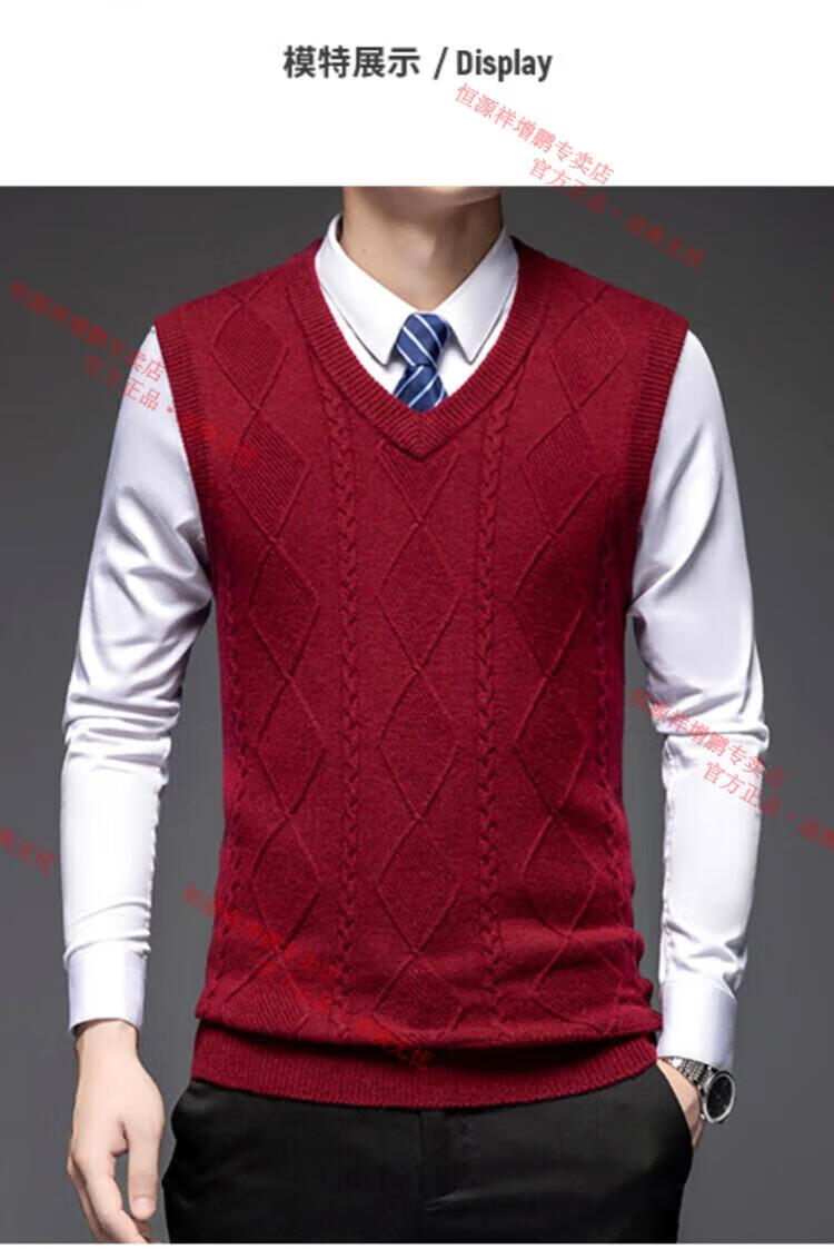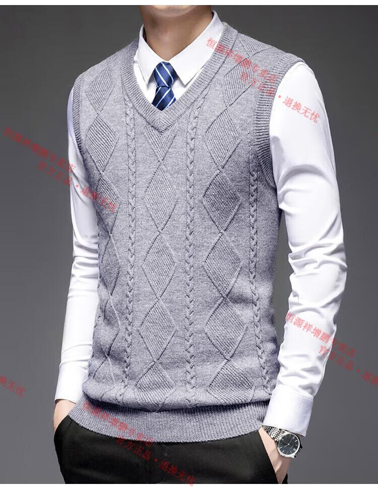 Hengyuanxiang autumn and winter 100% pure wool vest men's pullover V-neck sweater vest thickened middle-aged and elderly waistcoat knitted bottoming shirt light gray M 105