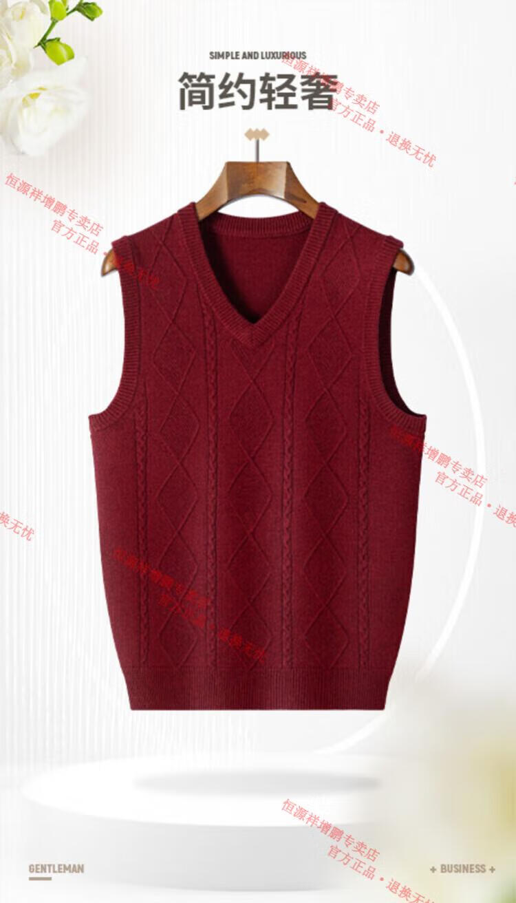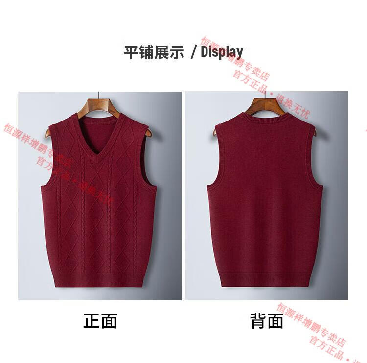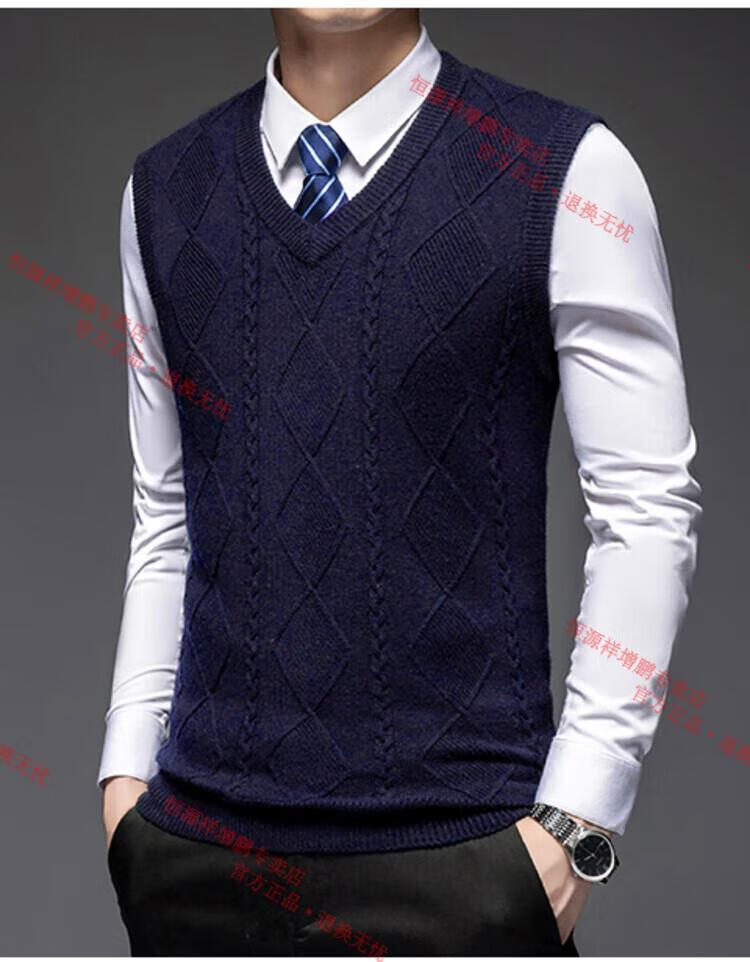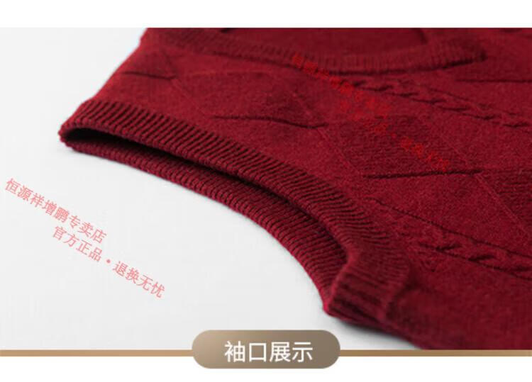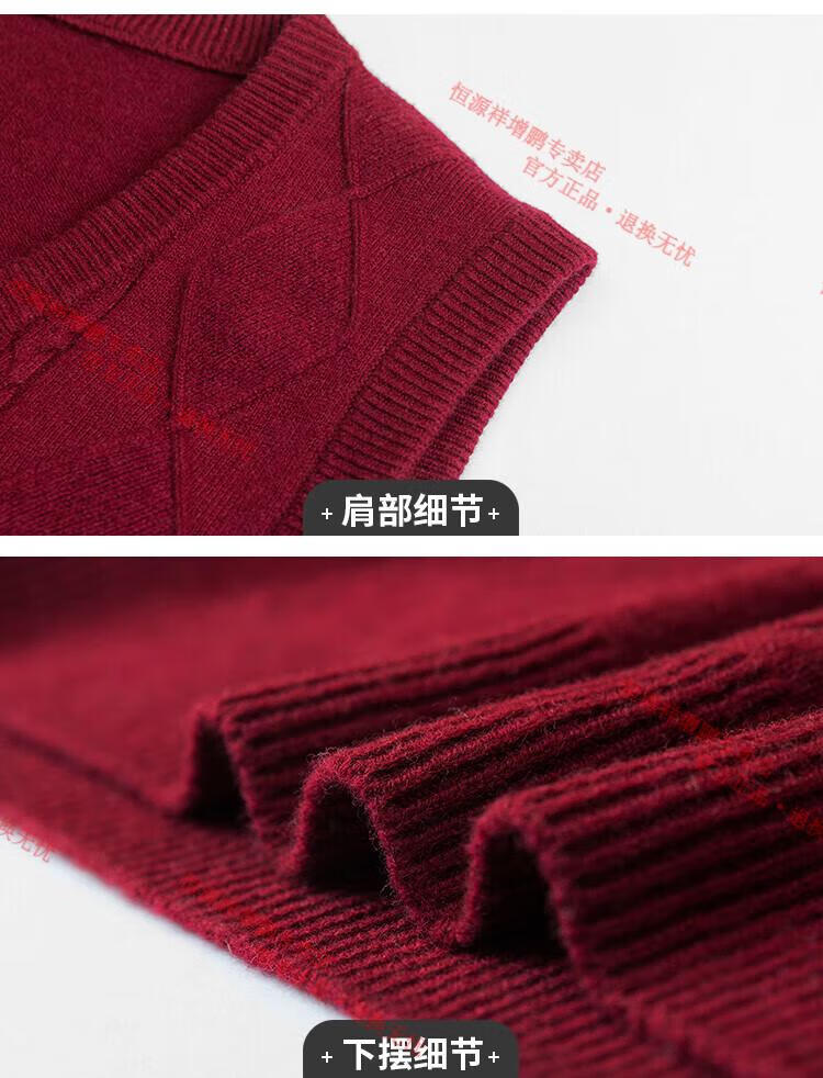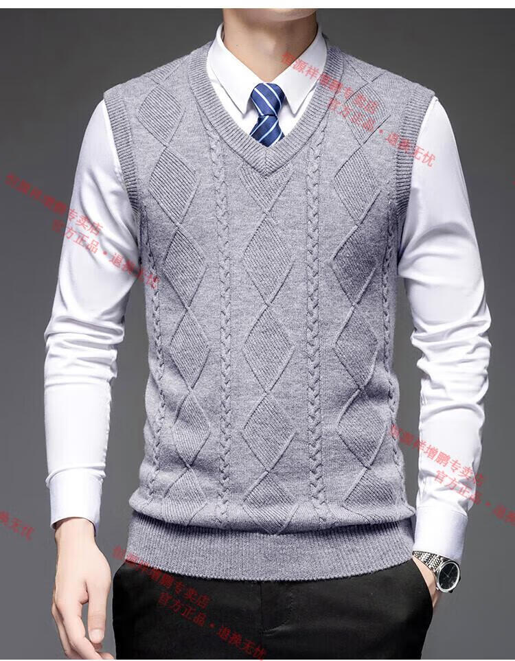 Hengyuanxiang autumn and winter 100% pure wool vest men's pullover V-neck sweater vest thickened middle-aged and elderly waistcoat knitted bottoming shirt light gray M 105