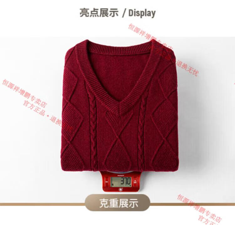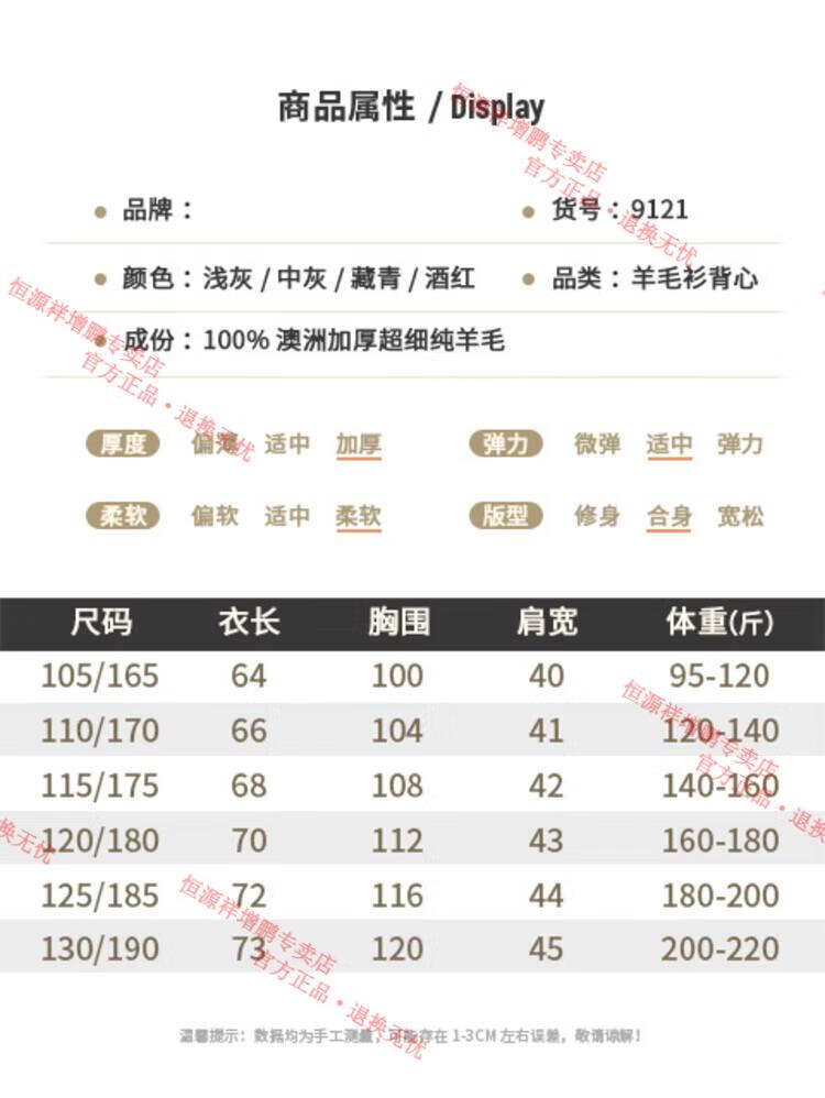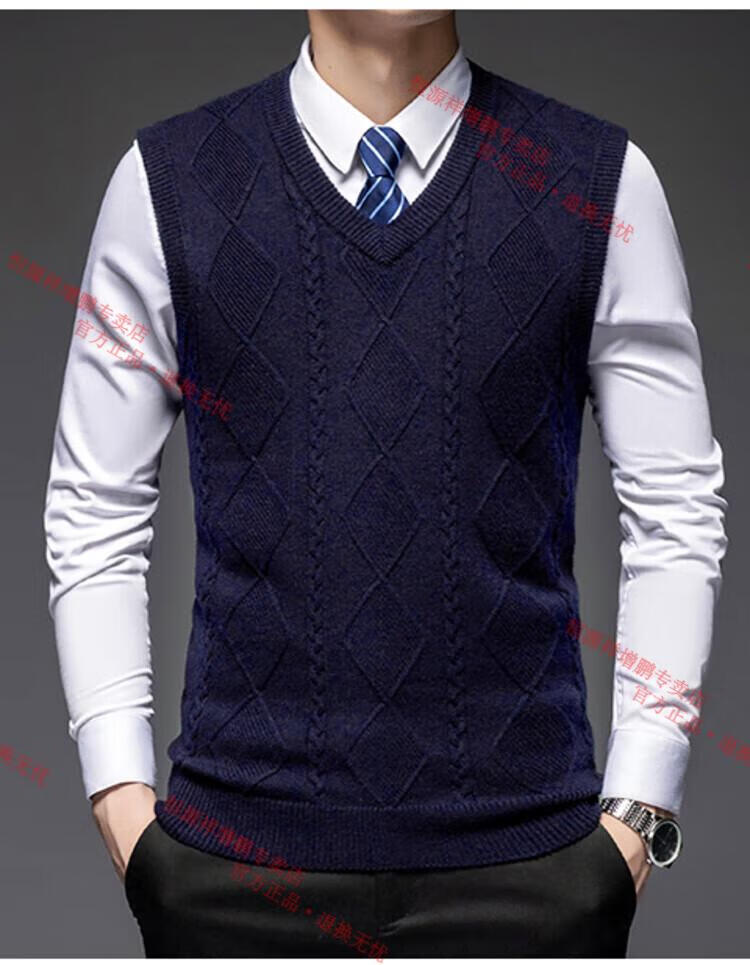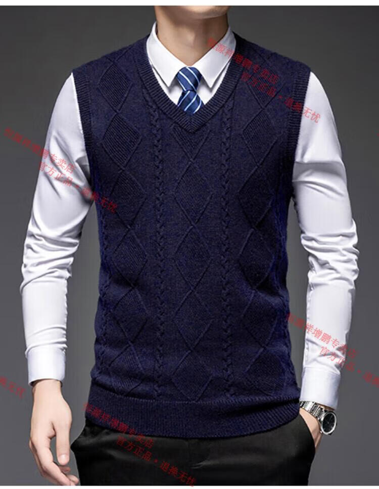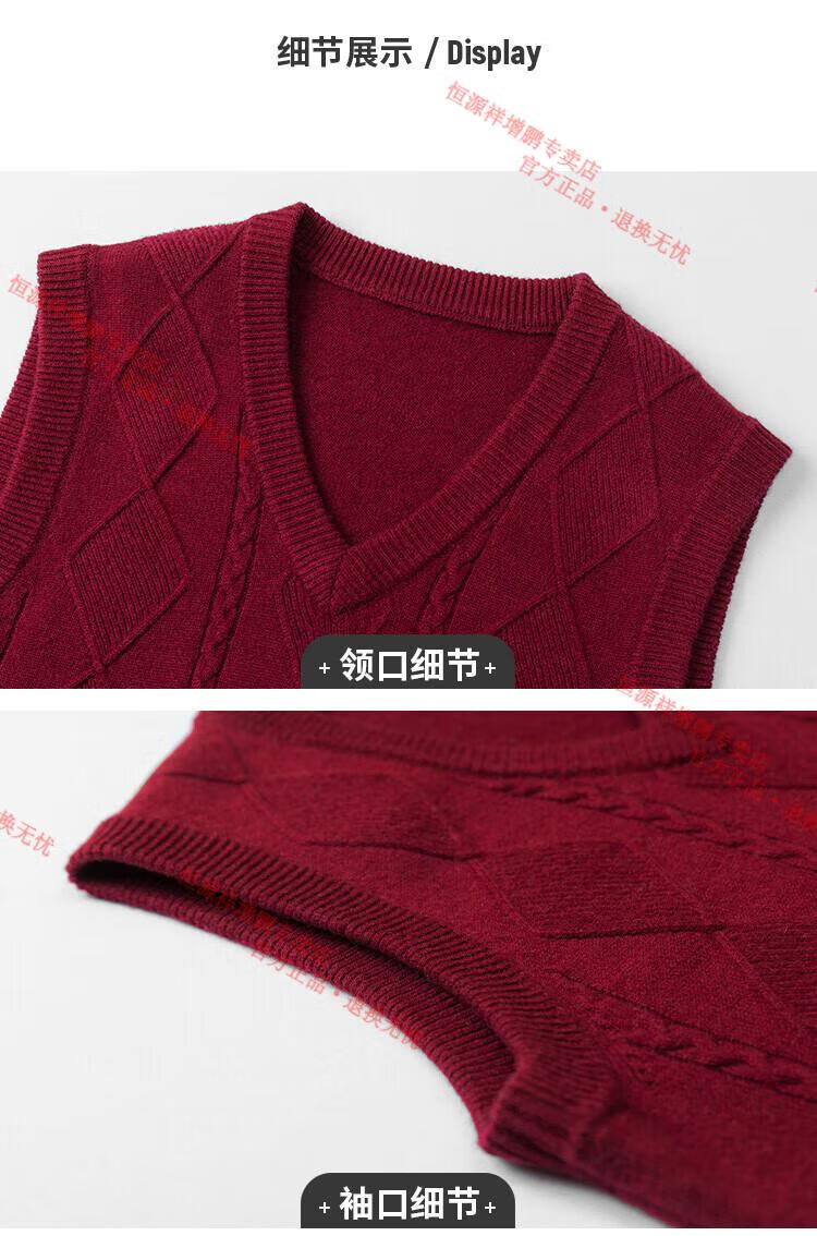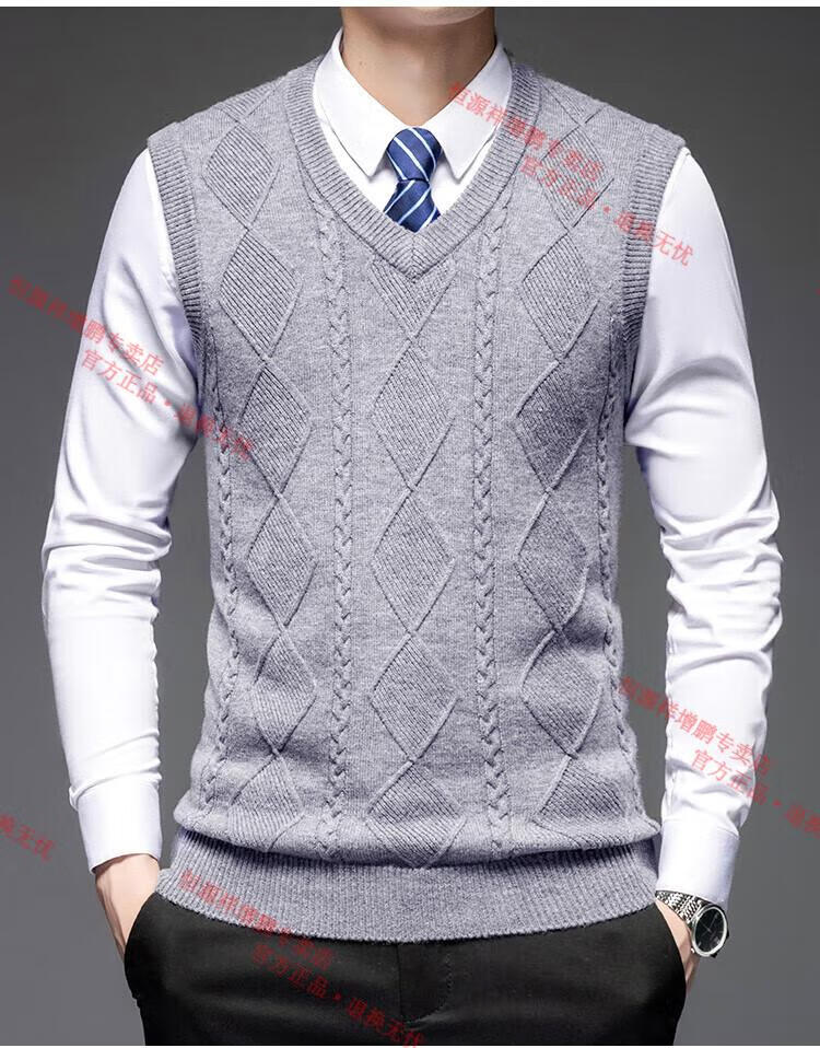 Hengyuanxiang autumn and winter 100% pure wool vest men's pullover V-neck sweater vest thickened middle-aged and elderly waistcoat knitted bottoming shirt light gray M 105