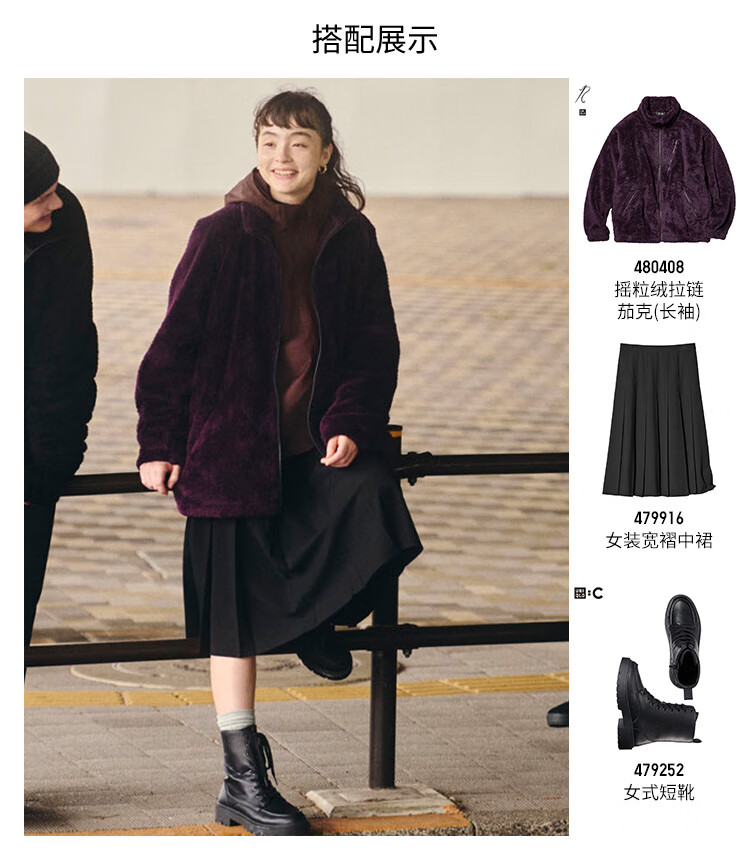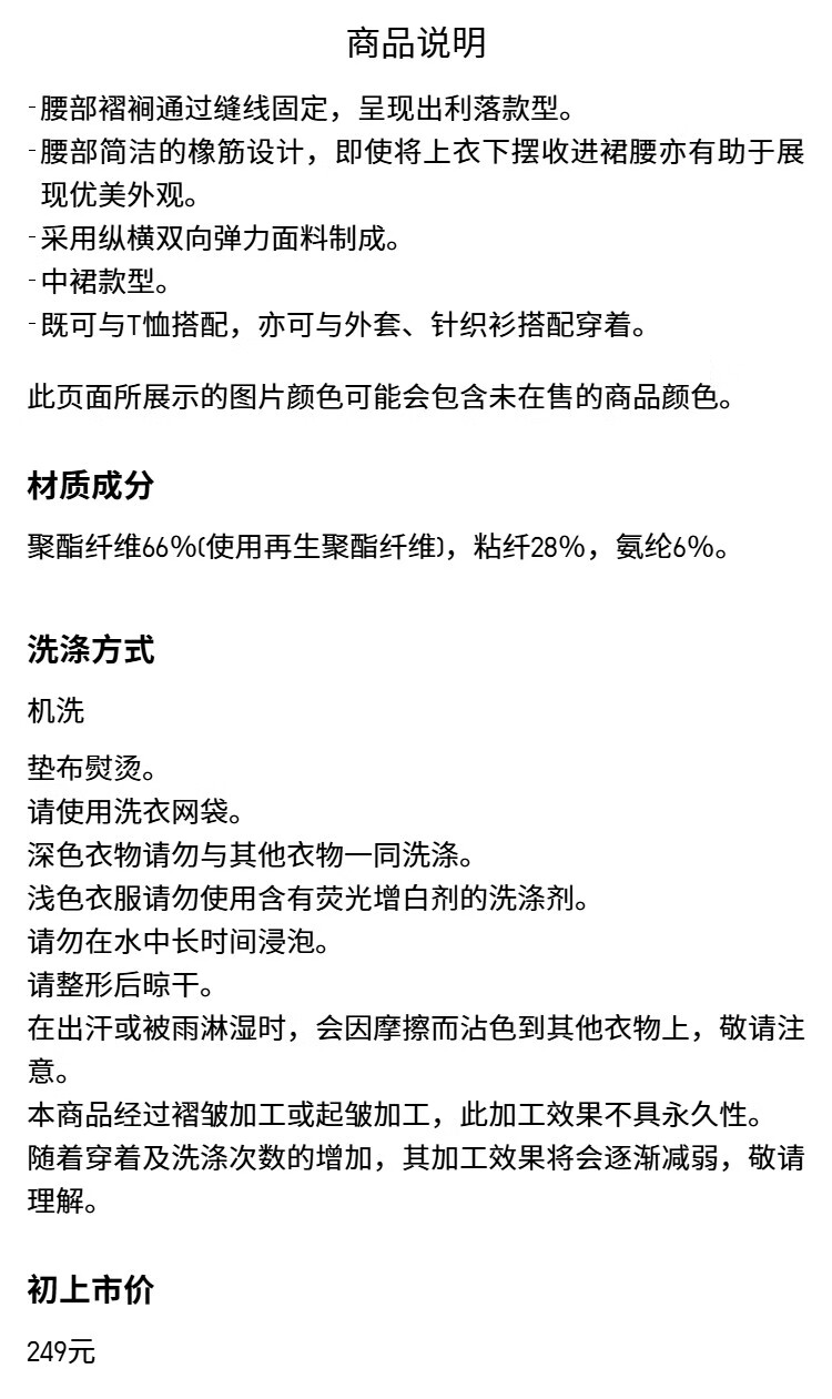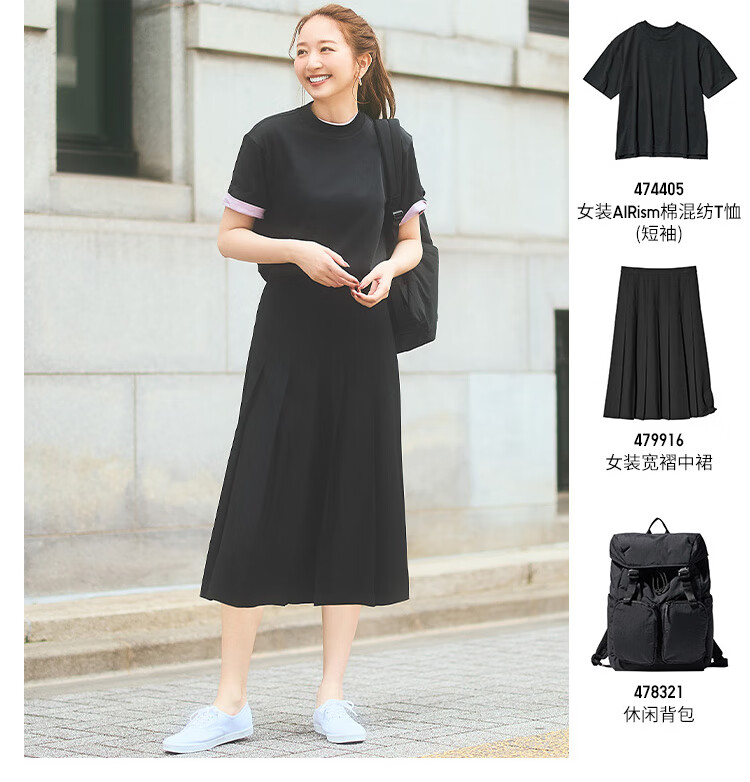 Uniqlo women's wide pleated midi skirt/skirt 25 autumn and winter new style 479916 09 black S /155/64A