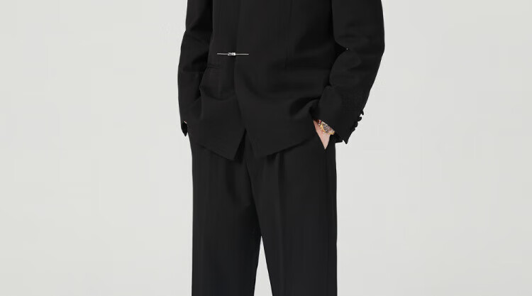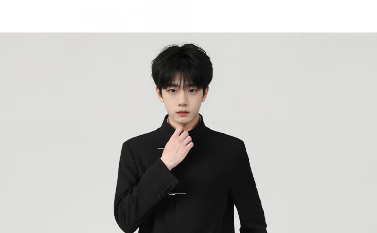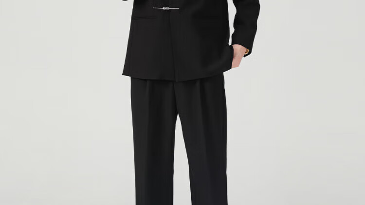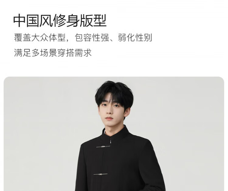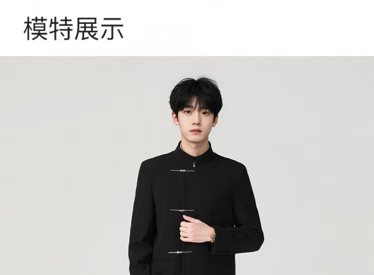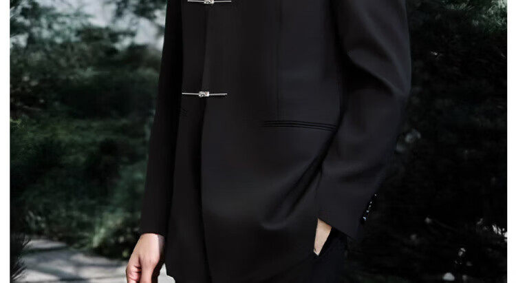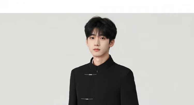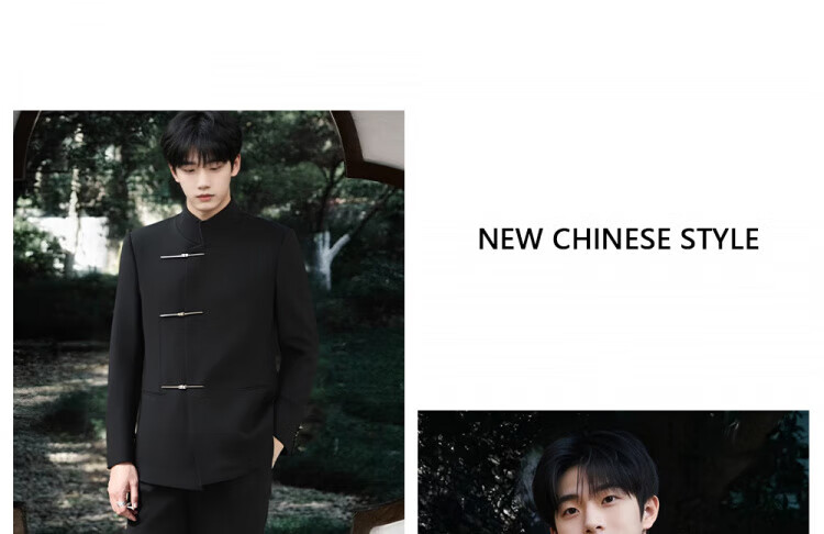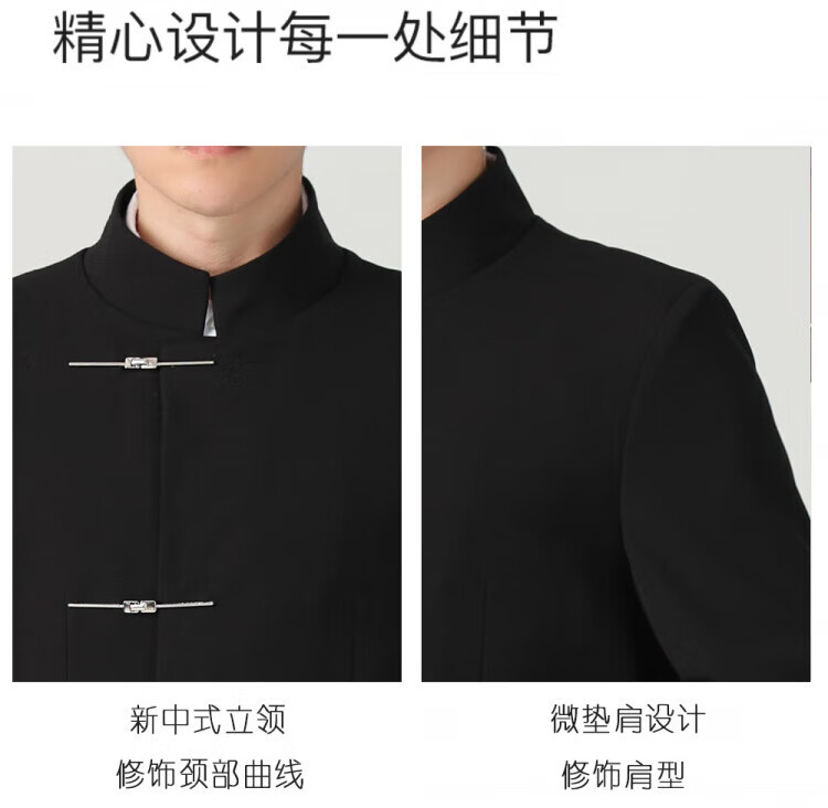 ROMON Chinese Style Stand Collar Youth Suit Men's Airplane Button Groom Wedding Chinese Suit High-Level Mao Suit Black Jacket + Pants + Stand Collar Shirt XS (Recommended 90-110 Jin Jin equals 0.5 kg)