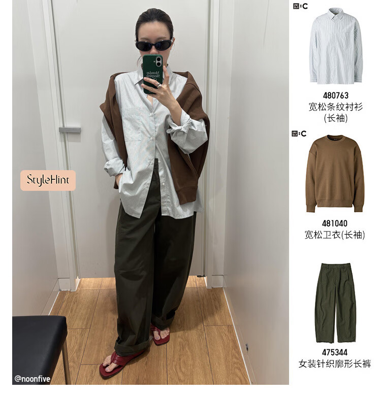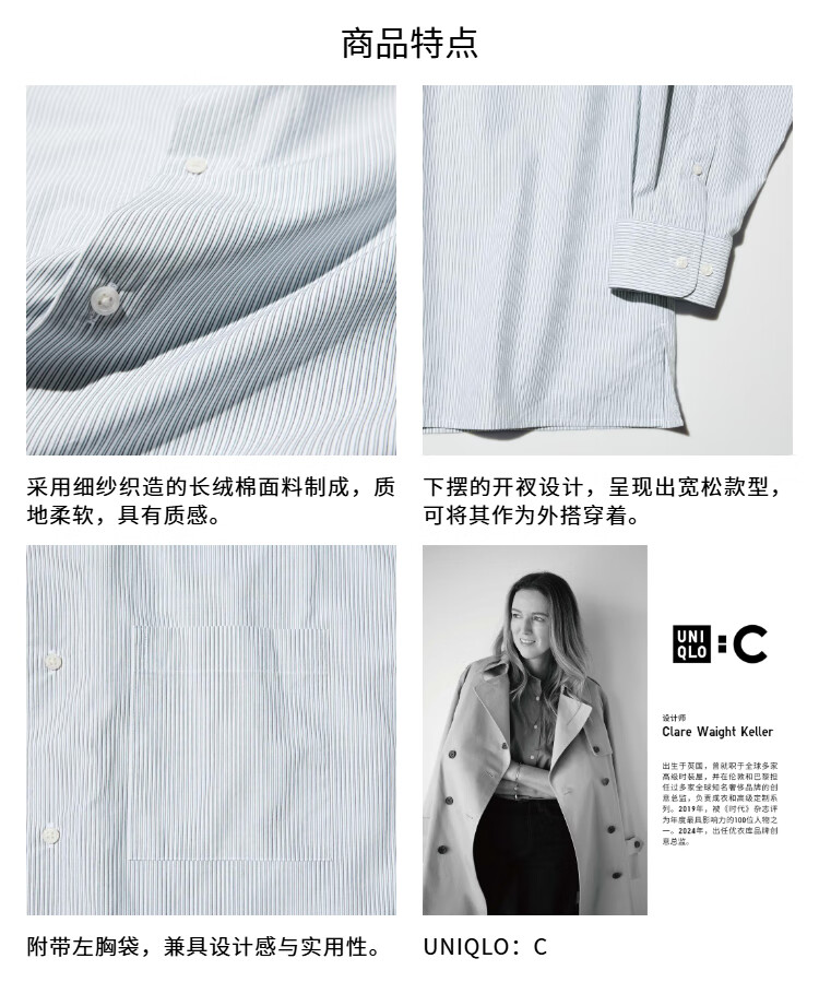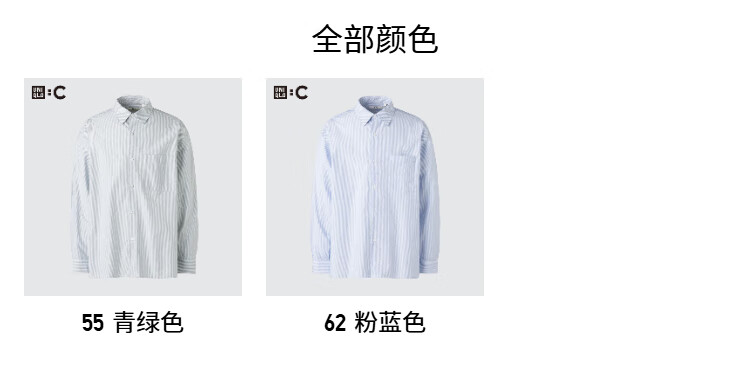 UNIQLO cooperation model/men's and women's loose striped shirt/long-sleeved shirt casual 25 autumn and winter new style 480763 55 turquoise M /170/92A