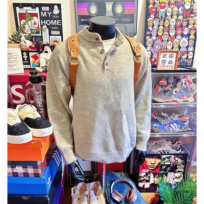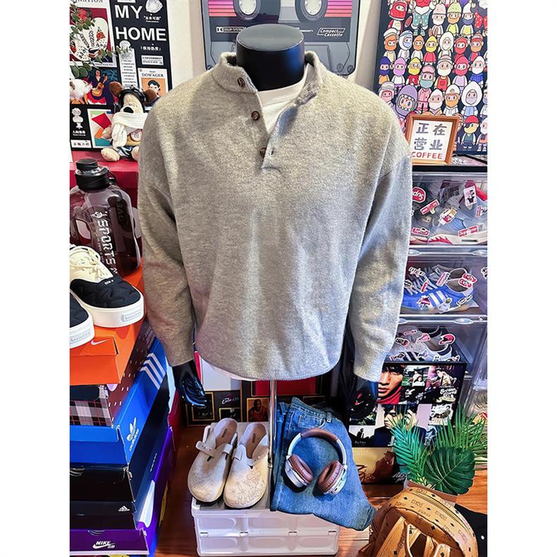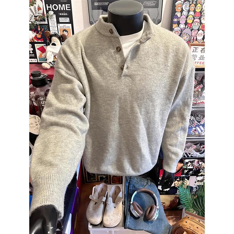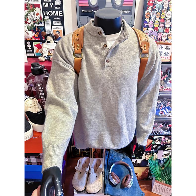 Jufeng cleanfit henley collar sweater men's winter American lazy style inner sweater high-end base coat gray upgraded model XL