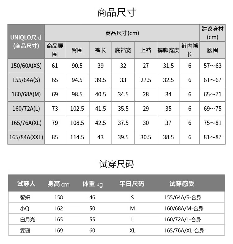 China (cm) 160-165/84-86 165-170 / 88-90 167-172 / 92-96 168-173 / 98-102 170-176 / 106-110