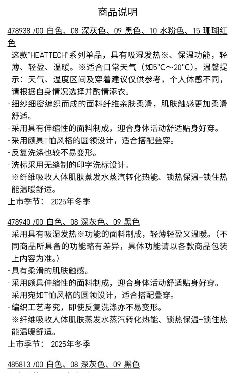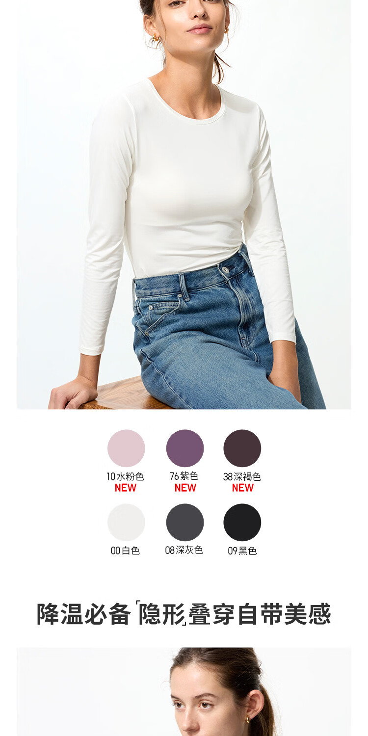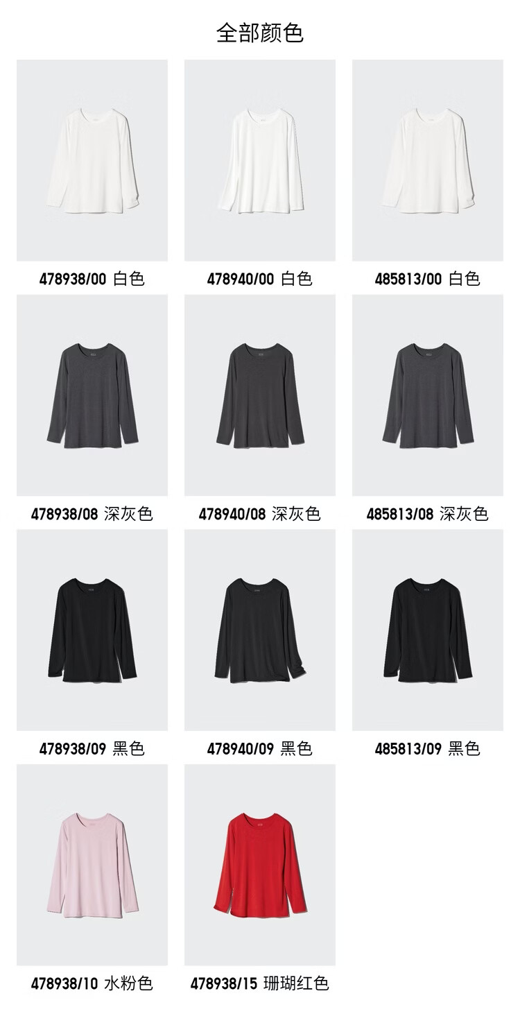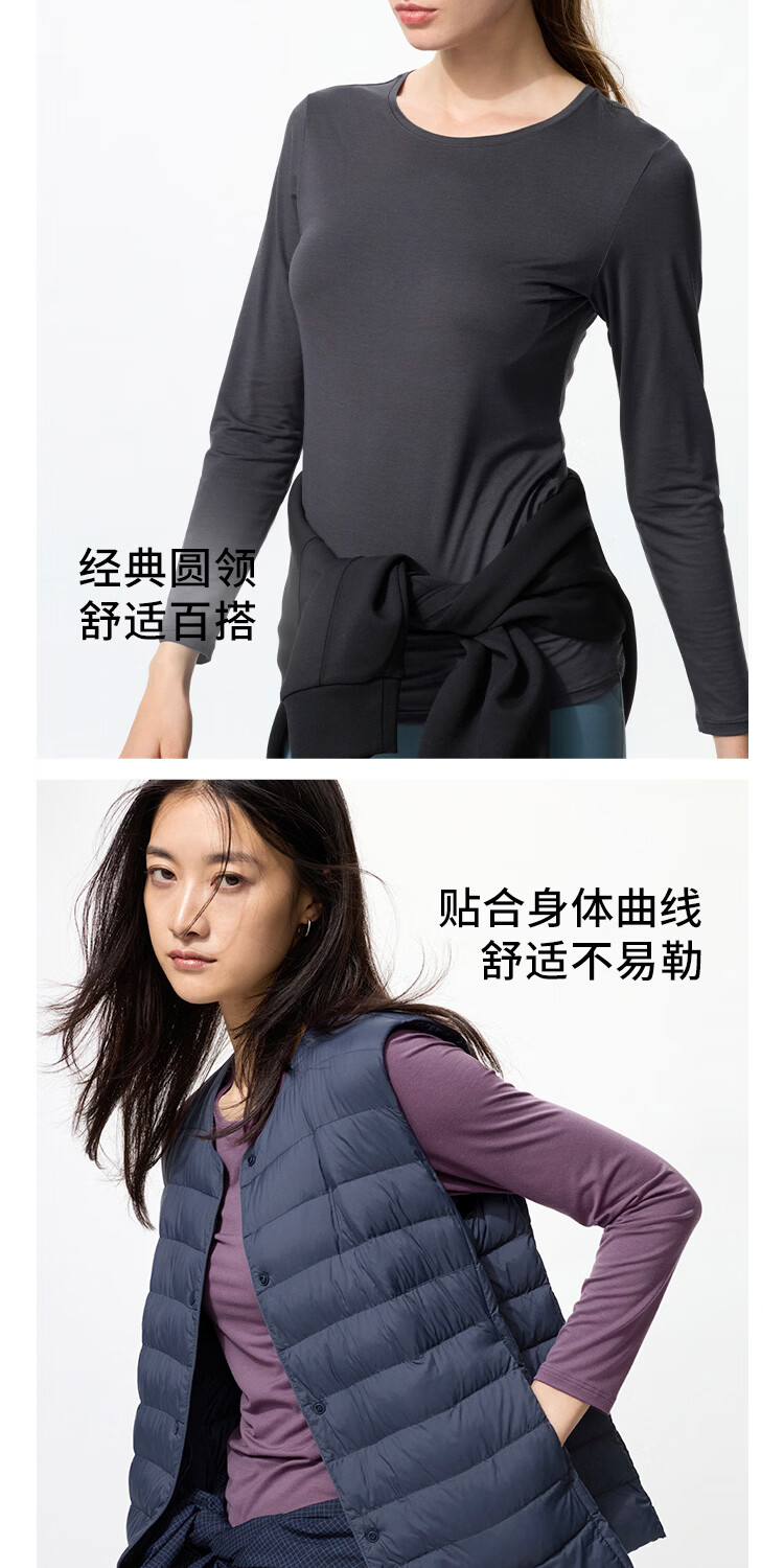 Uniqlo Women's HEATTECH Round Neck T-Shirt/Long Sleeve Warm Jacket 478938 485813 478938/00 White M