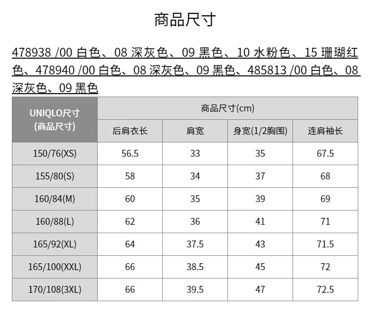 China (cm) 160-165/84-86 165-170 / 88-90 167-172 / 92-96 168-173 / 98-102 170-176 / 106-110