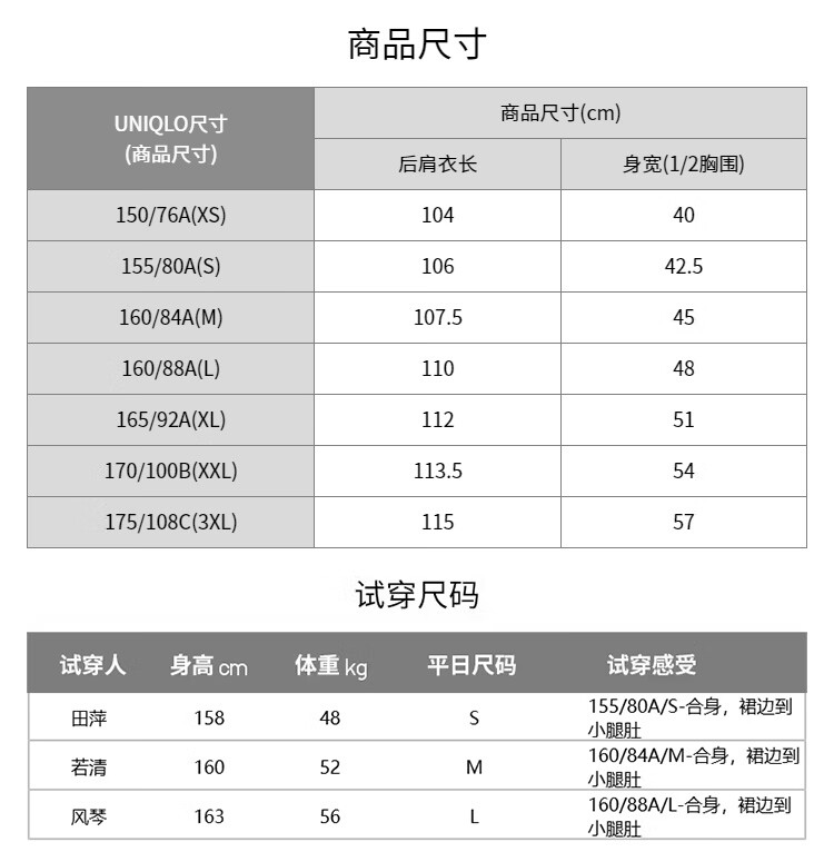 China (cm) 160-165/84-86 165-170 / 88-90 167-172 / 92-96 168-173 / 98-102 170-176 / 106-110
