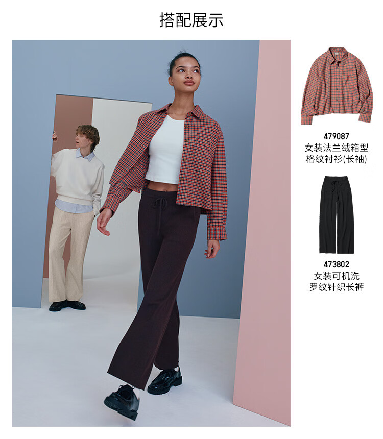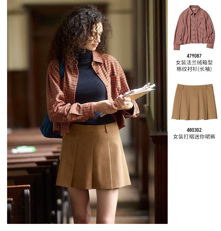 Uniqlo Women's Flannel Box Shirt/Platform American Retro 479087 13 Rose Red S /155/80A