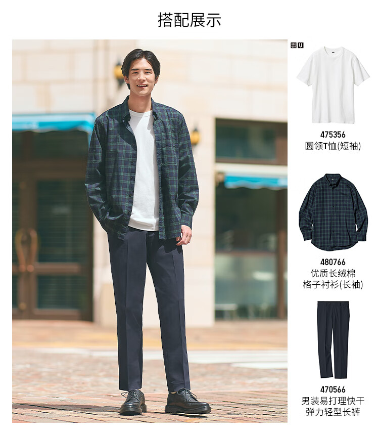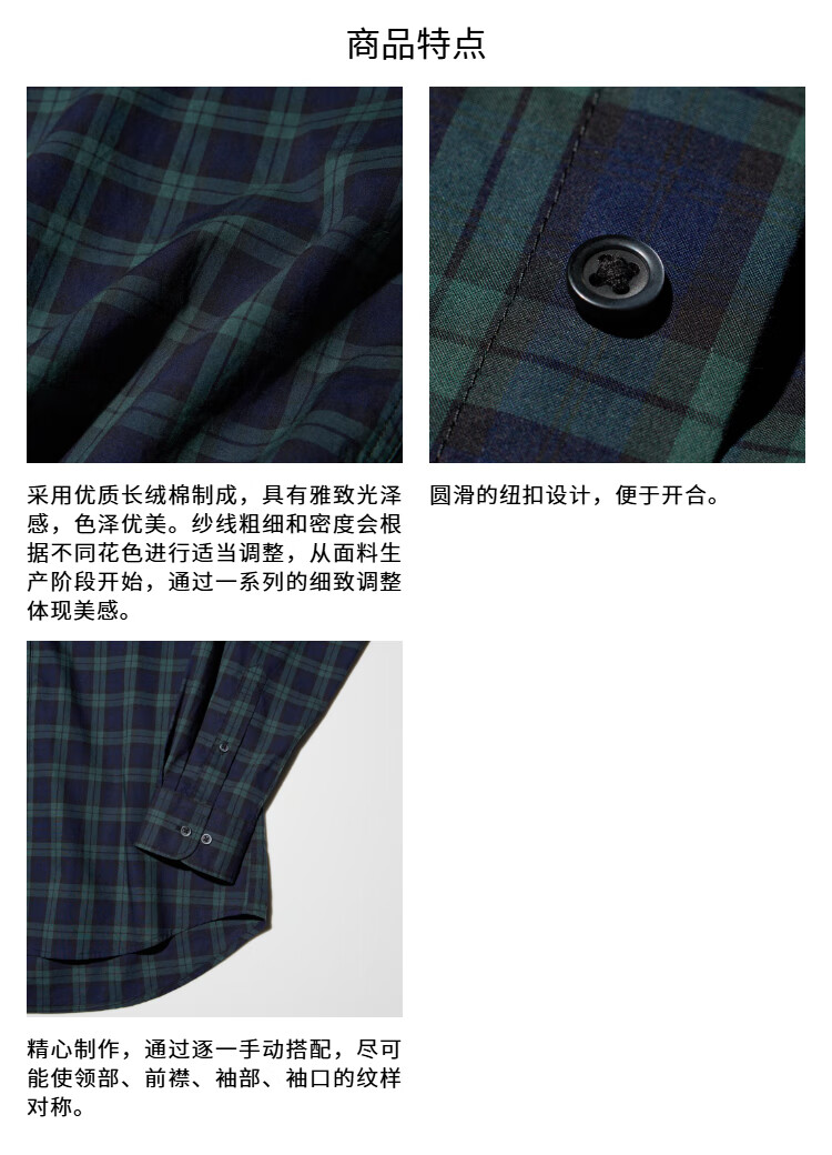 Uniqlo men's and women's high-quality long-staple cotton plaid shirt long-sleeved shirt casual cotton 25 autumn and winter 480766 59 dark green L /175/100A