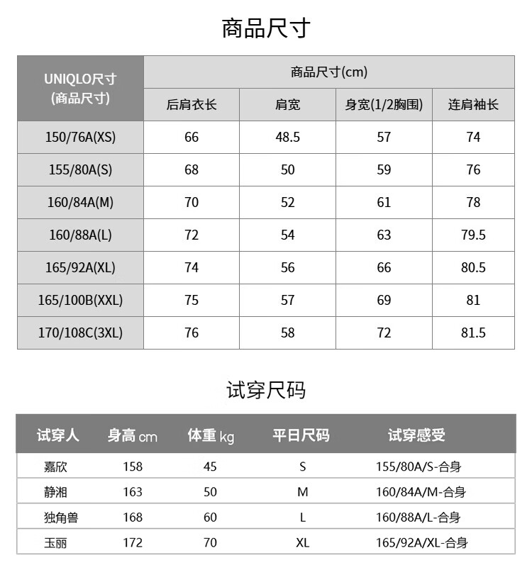 China (cm) 160-165/84-86 165-170 / 88-90 167-172 / 92-96 168-173 / 98-102 170-176 / 106-110