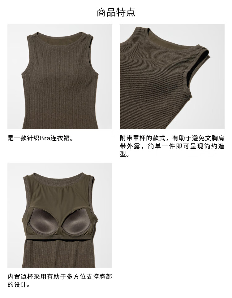 Uniqlo Women's Knitted Bra Dress Sleeveless Skirt Temperament Waist 480636 09 Black 3XL /170/108