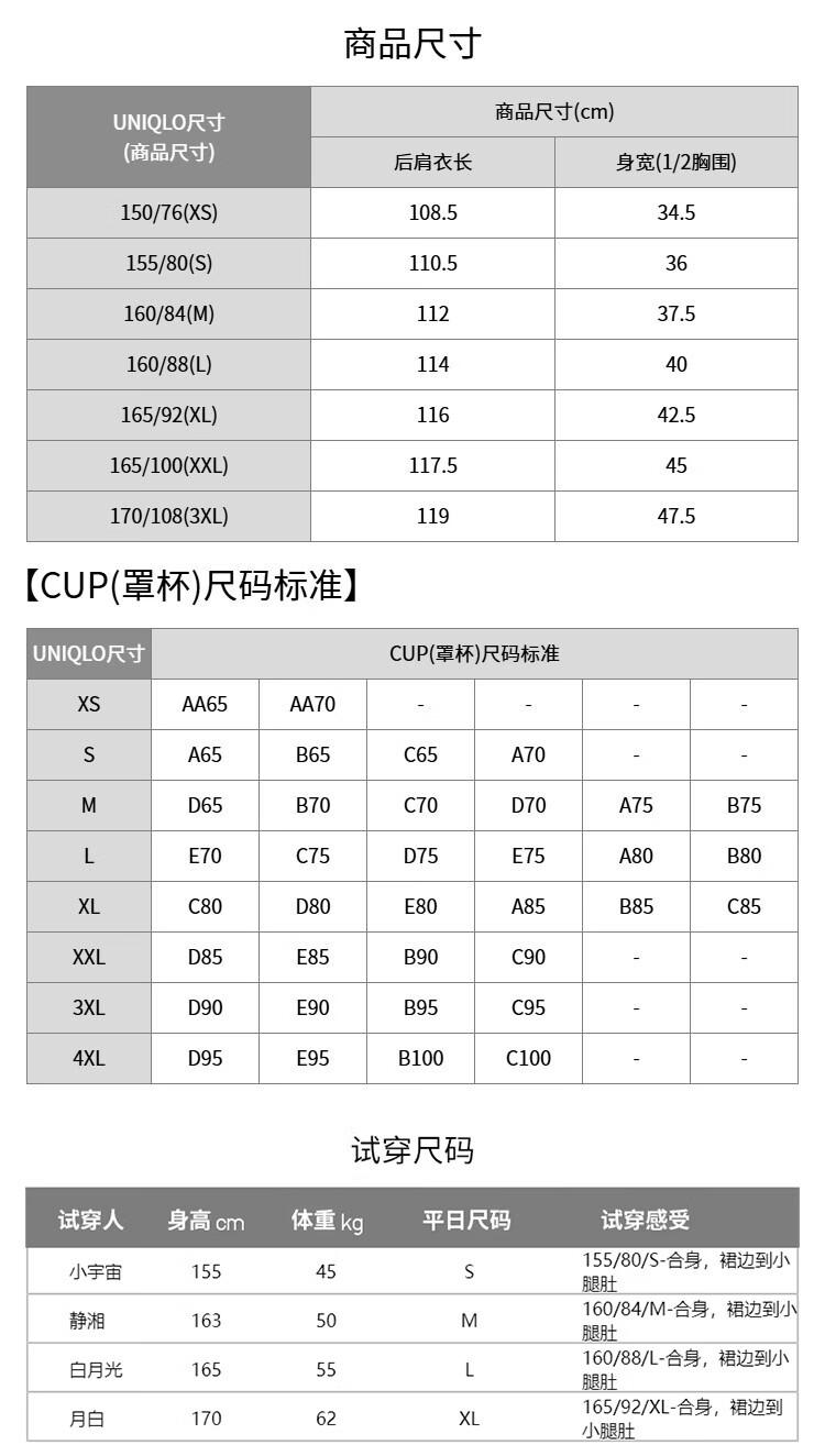 China (cm) 160-165/84-86 165-170 / 88-90 167-172 / 92-96 168-173 / 98-102 170-176 / 106-110