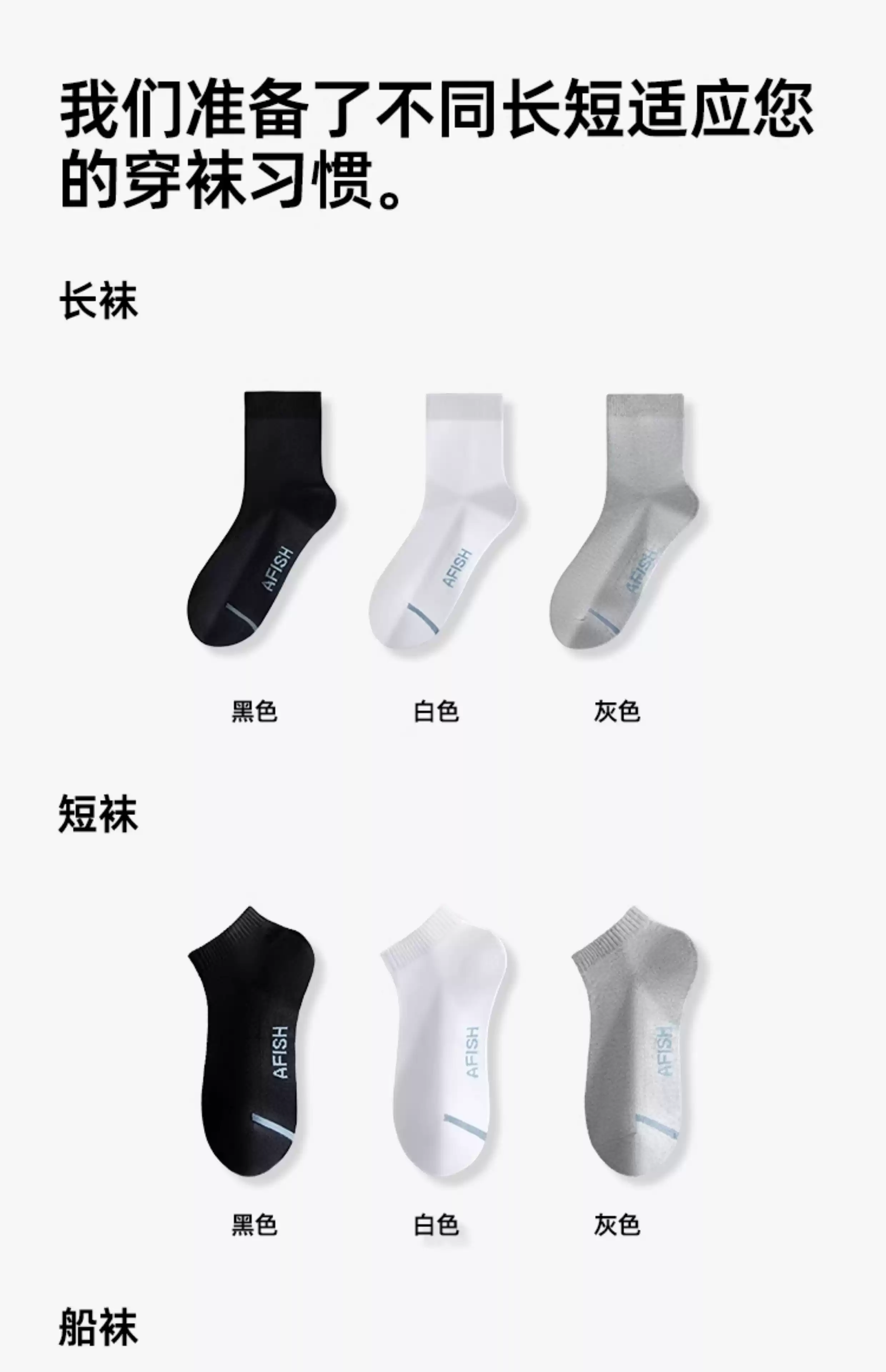 AFISH antibacterial and deodorant cotton socks, deodorant and anti-athlete's foot, same style for men and women, spring and autumn thin socks, boxed T-length socks, one size fits all