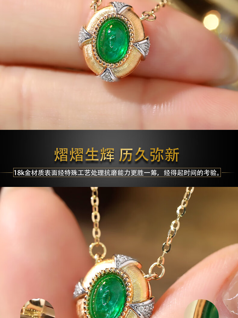 18K gold emerald necklace with brushed craftsmanship and natural diamonds for your girlfriend and elders
