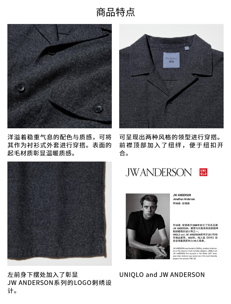 UNIQLO collaboration men's and women's soft cotton open collar loose shirt long-sleeved shirt 479997 04 smoke gray M