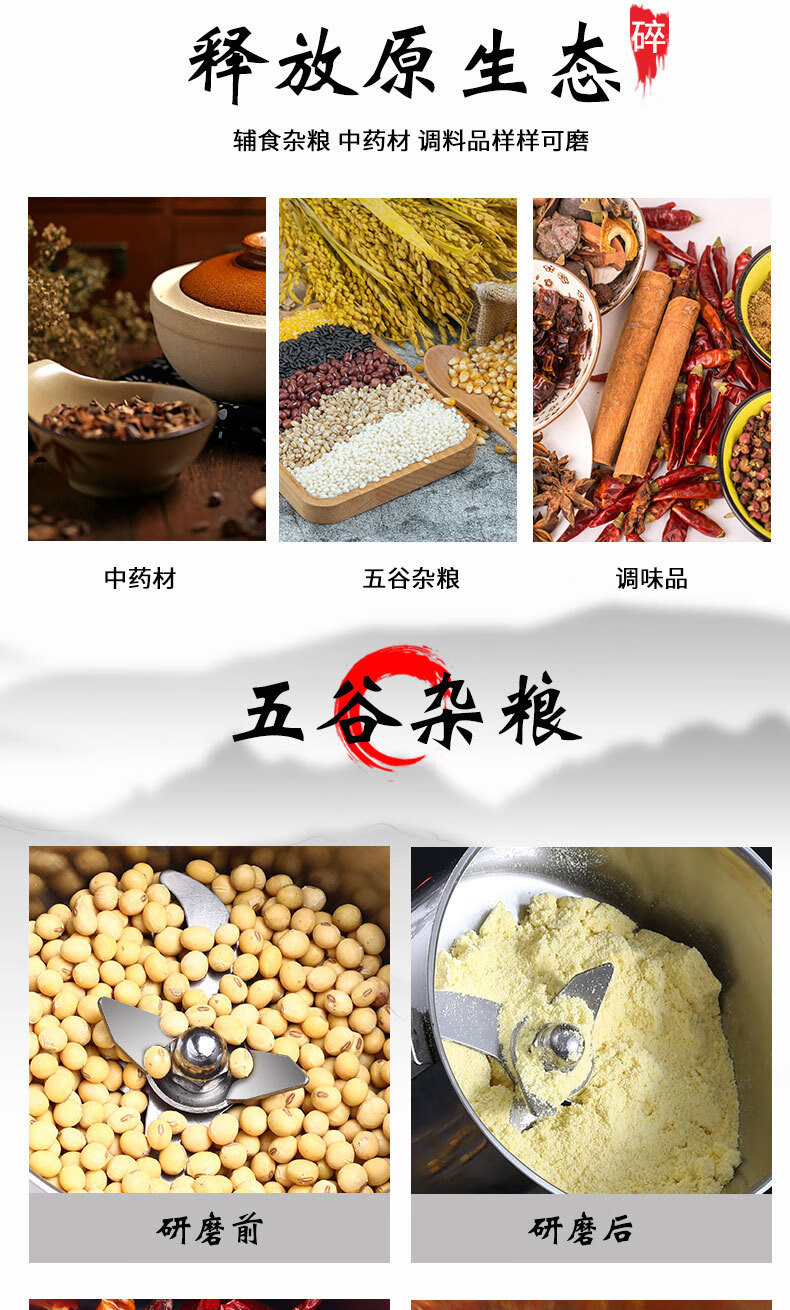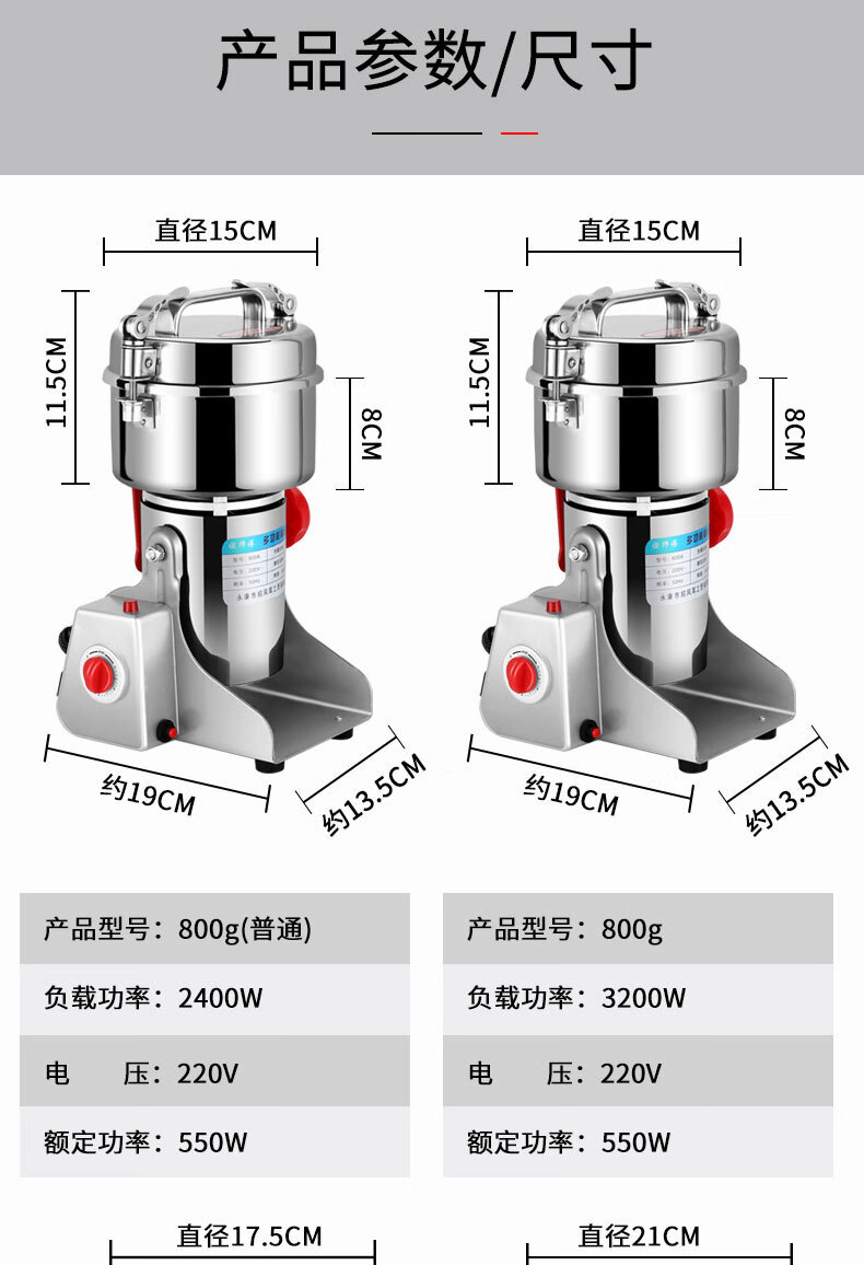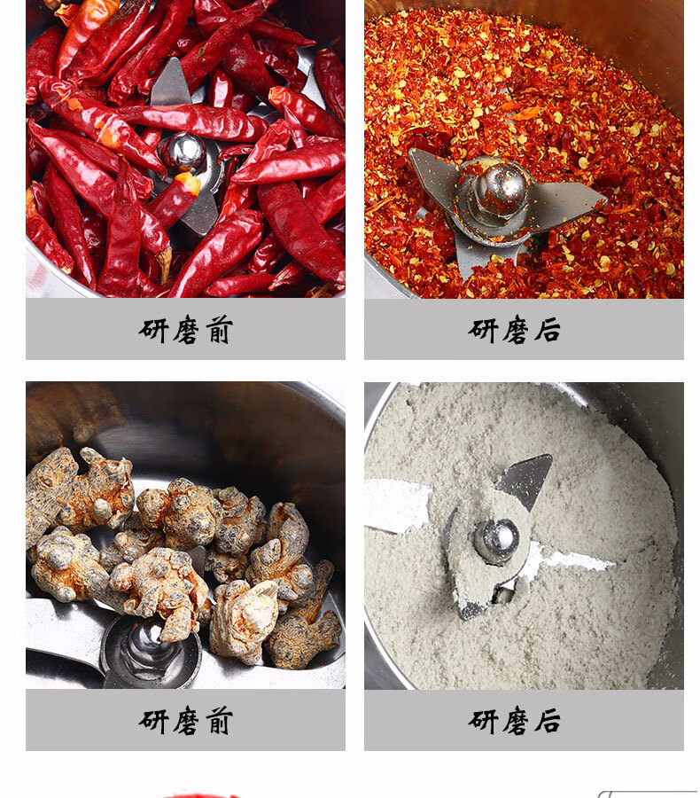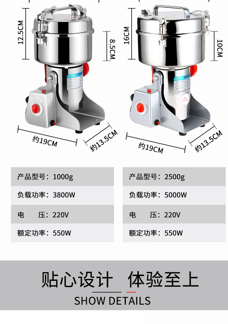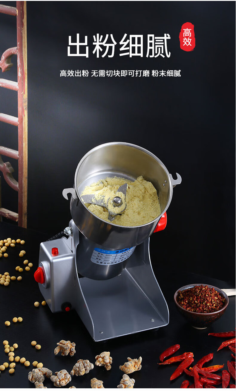 BIBK German grinder stainless steel commercial grinder household grinder Panax notoginseng ultra-fine Chinese herbal medicine powder machine grinding grinding 1000g 3400 watt pure copper motor