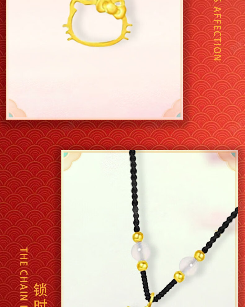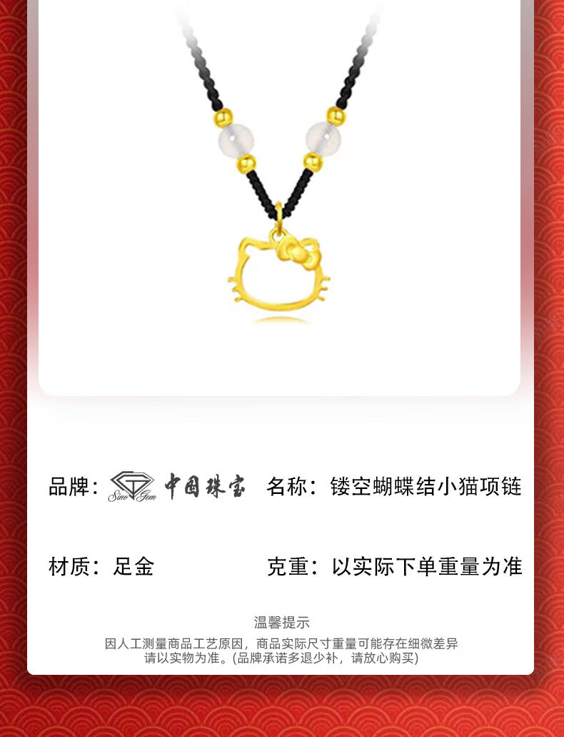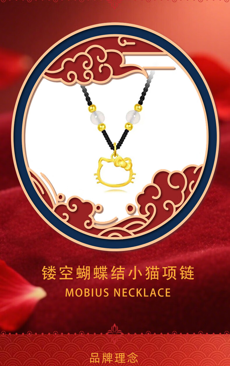 Chinese jewelry cute cat gold necklace for women KT cat pure gold pendant pendant birthday double 11 gift for girlfriend and wife about 0.46g pure gold cute cat pendant-gold beads black rope