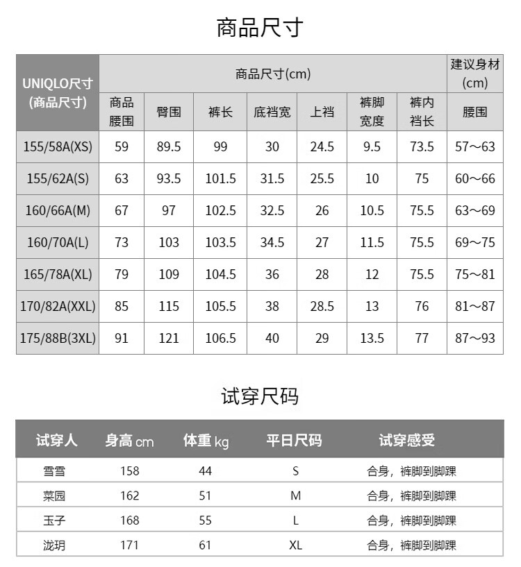 China (cm) 160-165/84-86 165-170 / 88-90 167-172 / 92-96 168-173 / 98-102 170-176 / 106-110