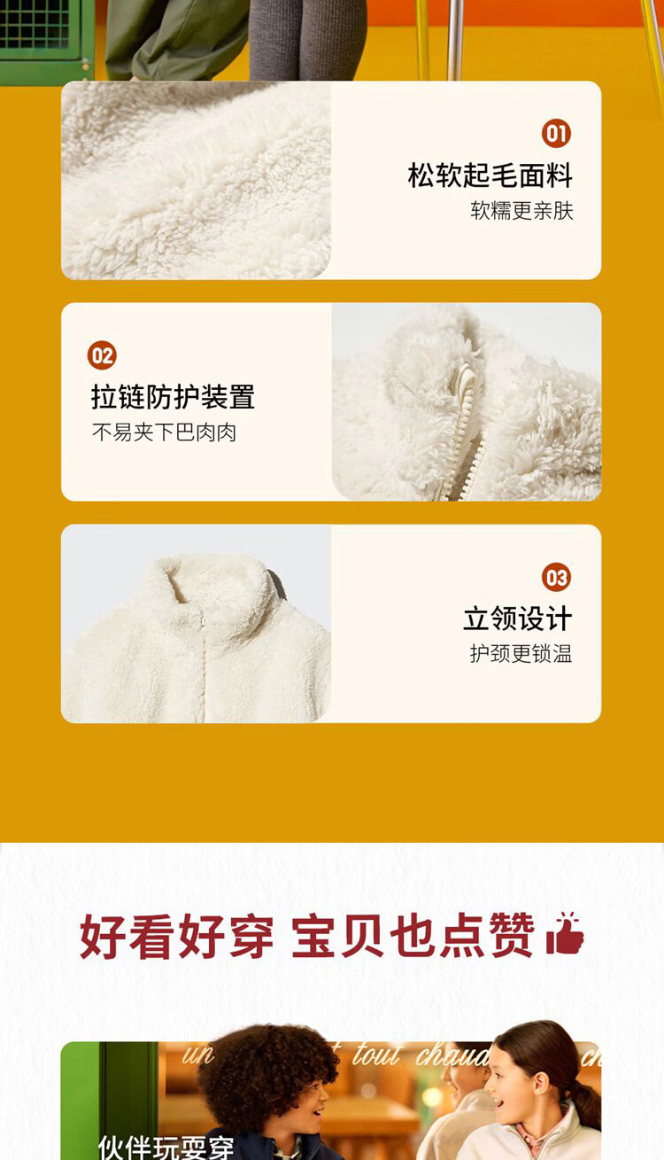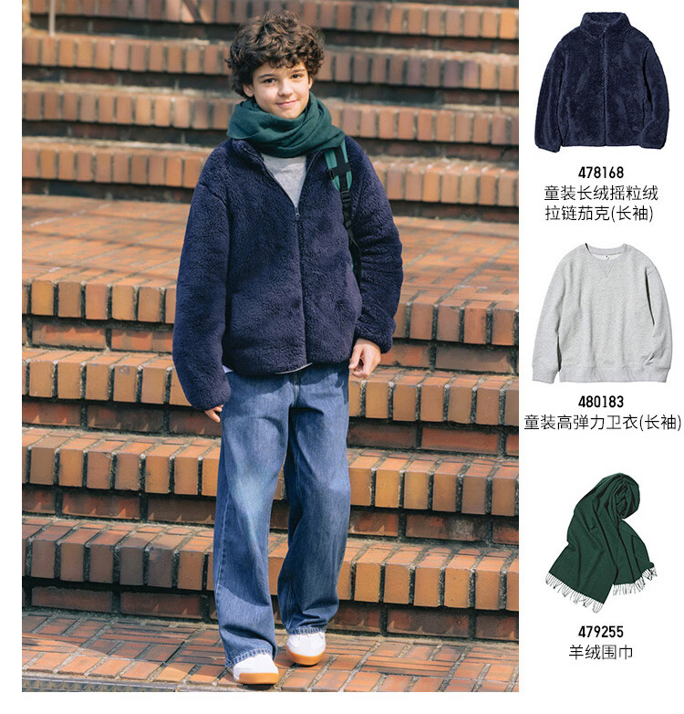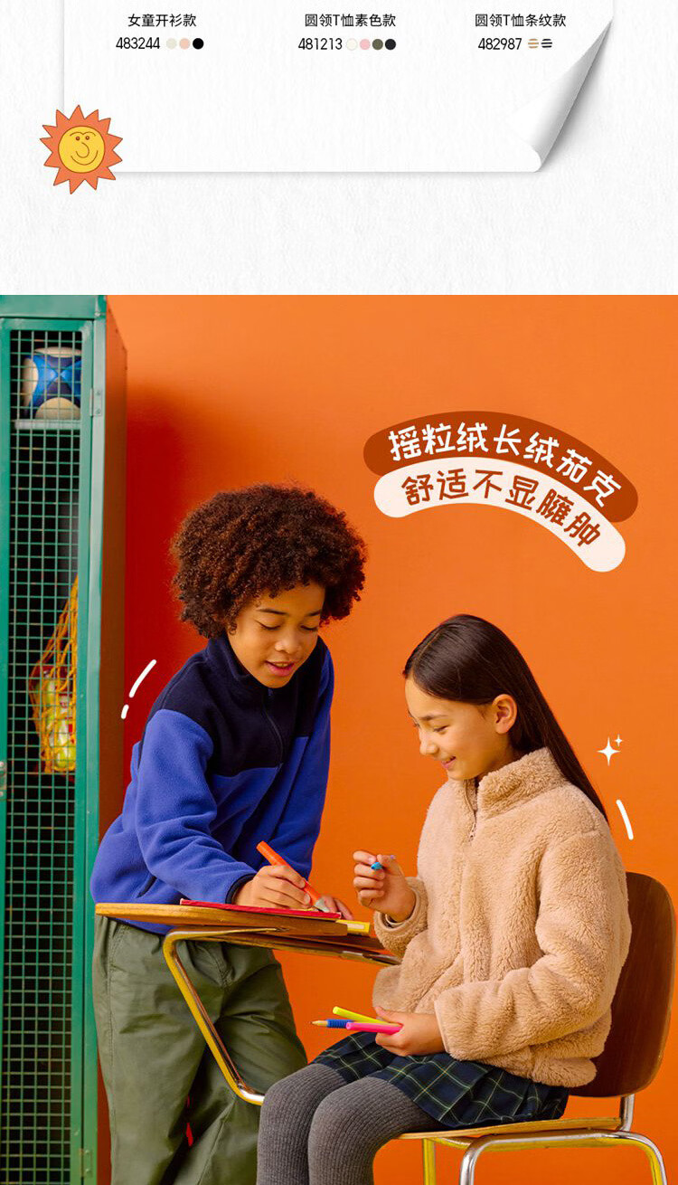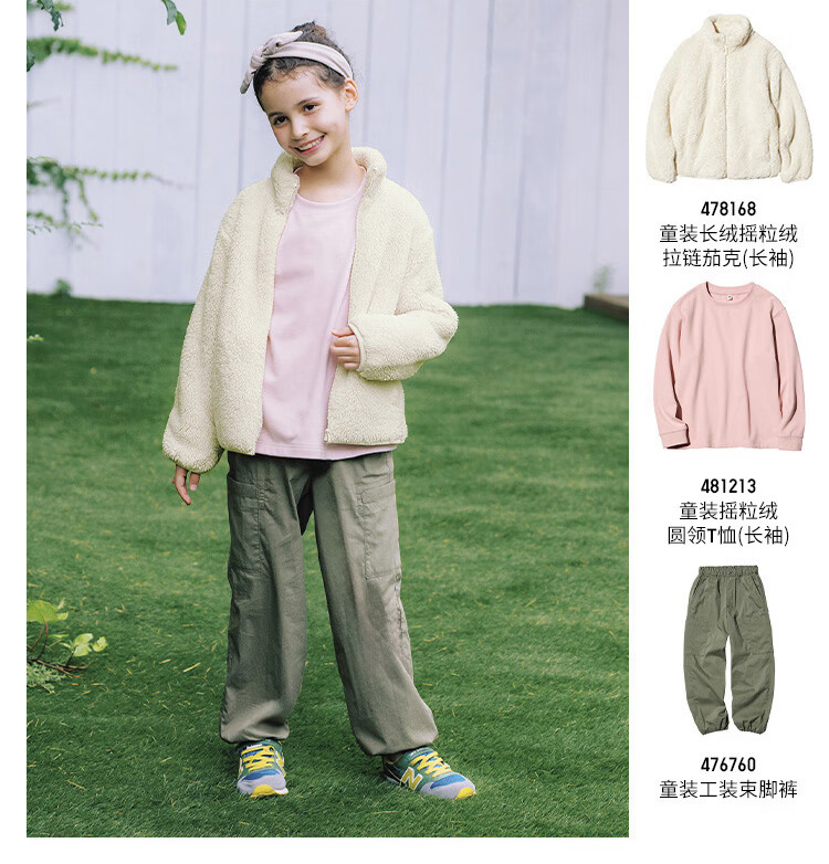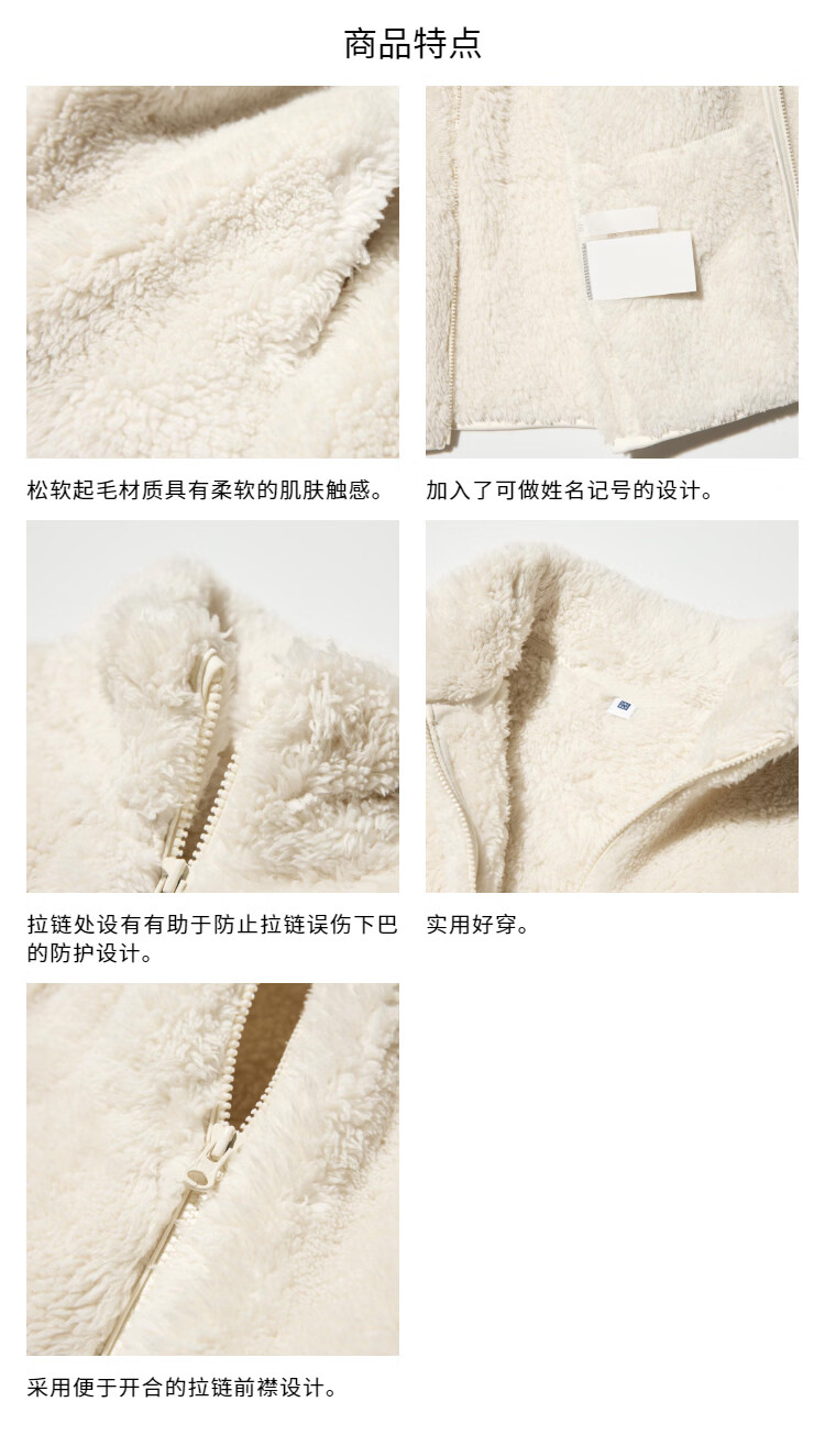Uniqlo children's clothing boys and girls long velvet polar fleece zipper jacket long-sleeved jacket 478168 478168/01 milky white 150