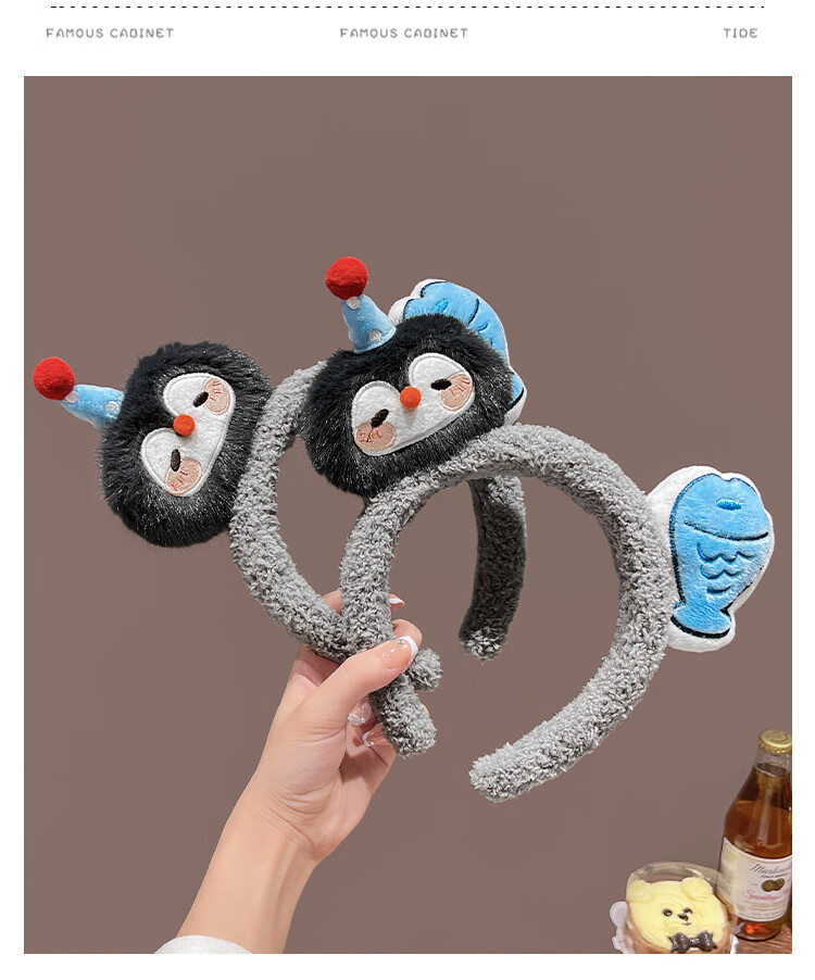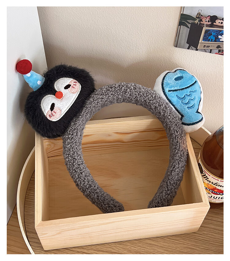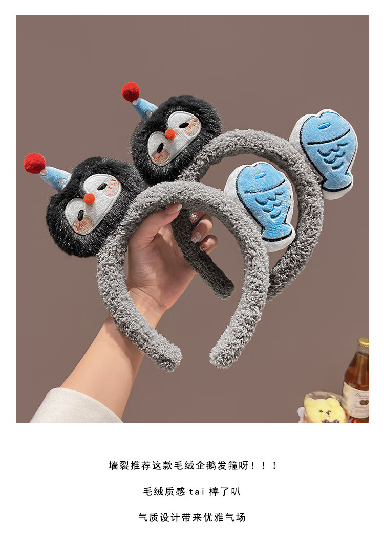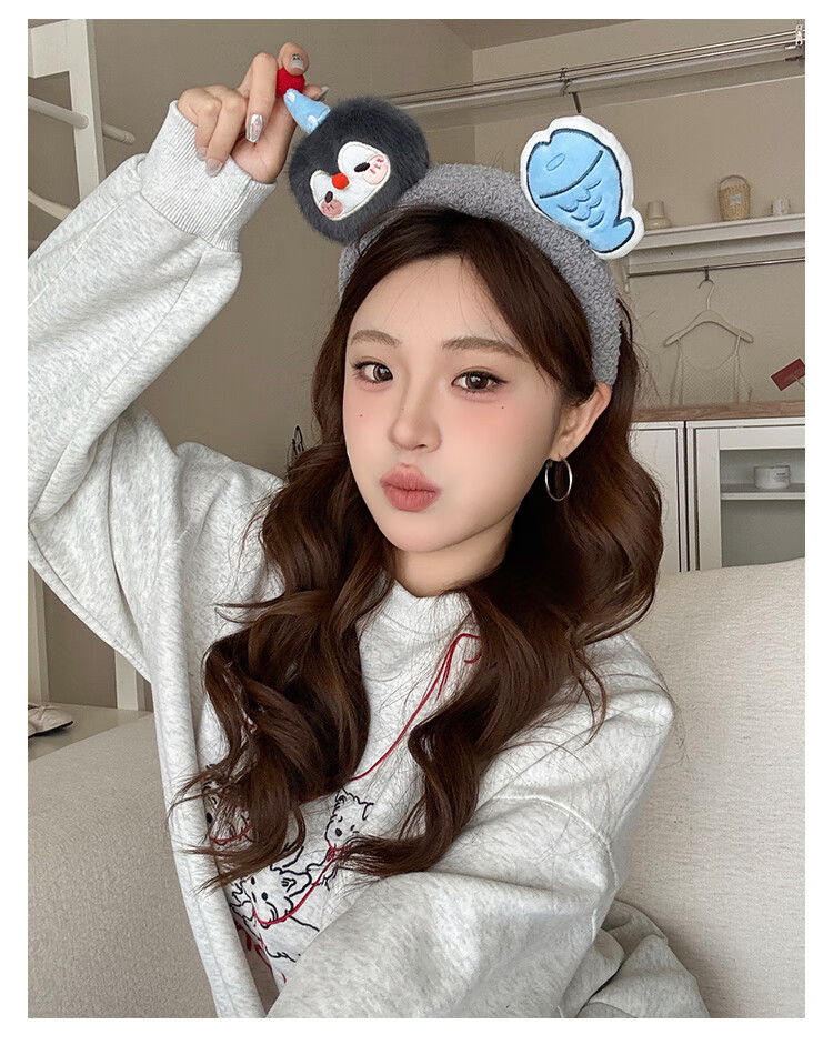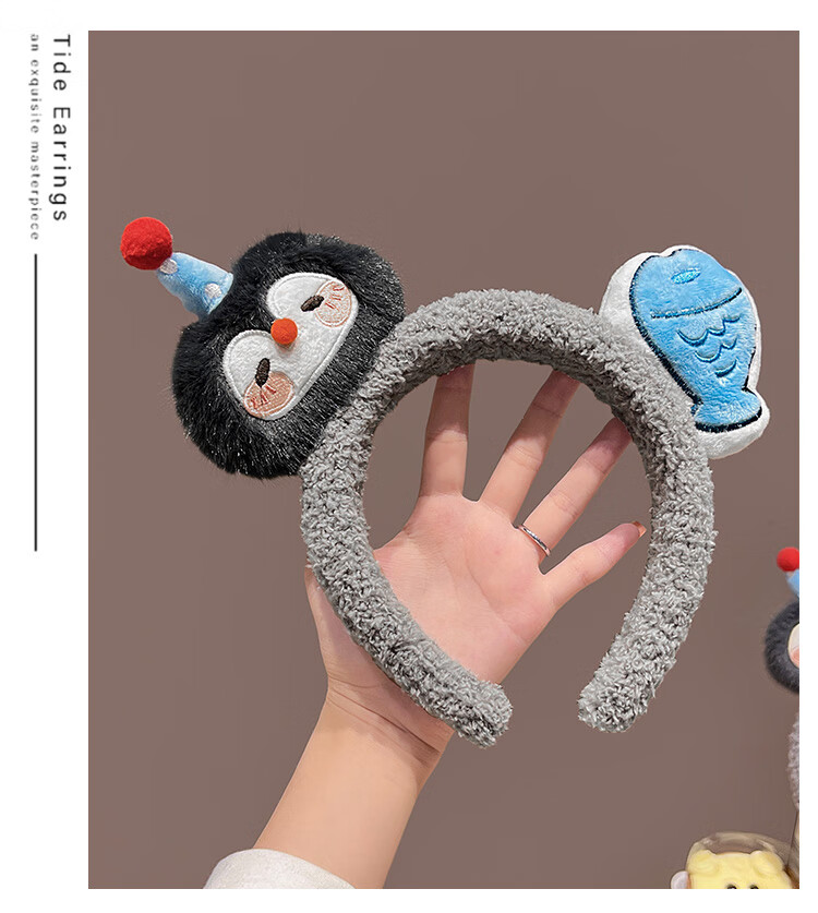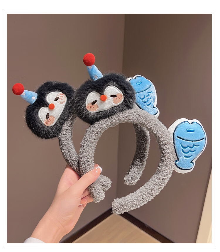 Danqin Cute Cartoon Plush Little Penguin Headband Cute Girly Heart Headband Washing Face, Pressing Hair, Taking Photos, Hairpin Creative Headband Penguin Fish Headband