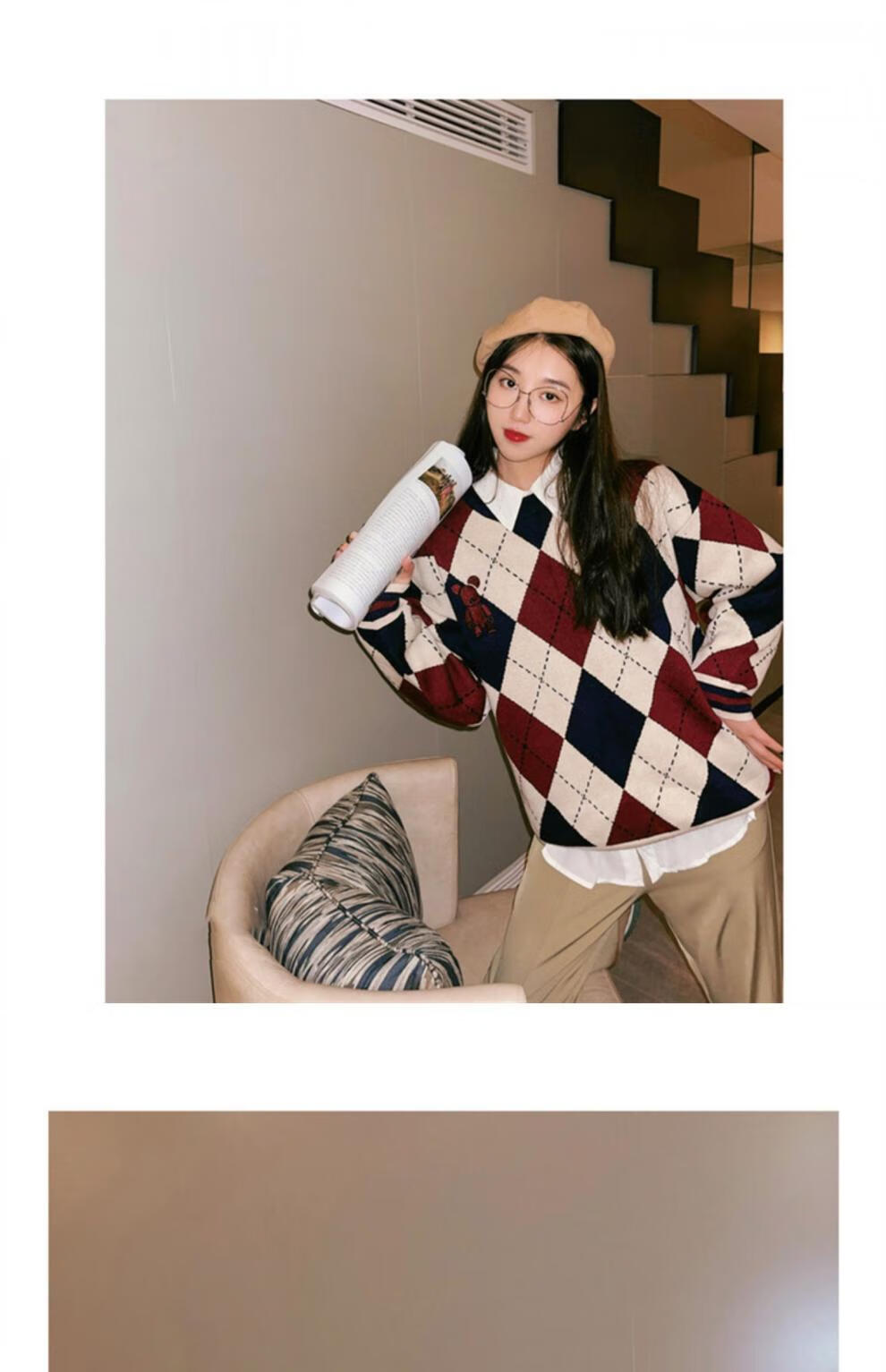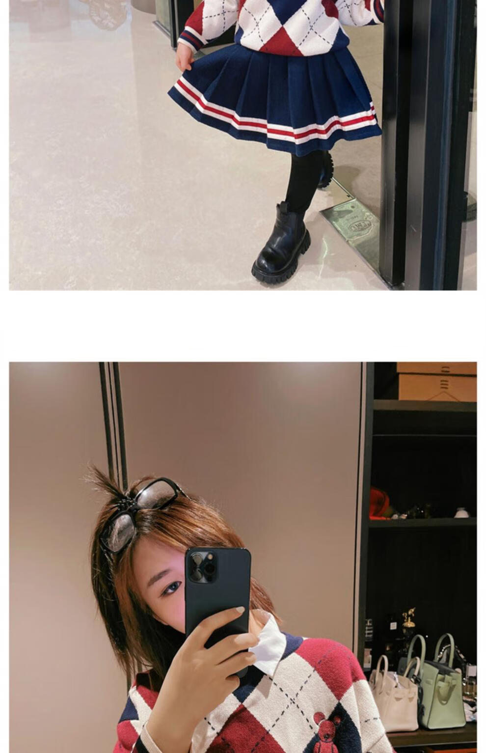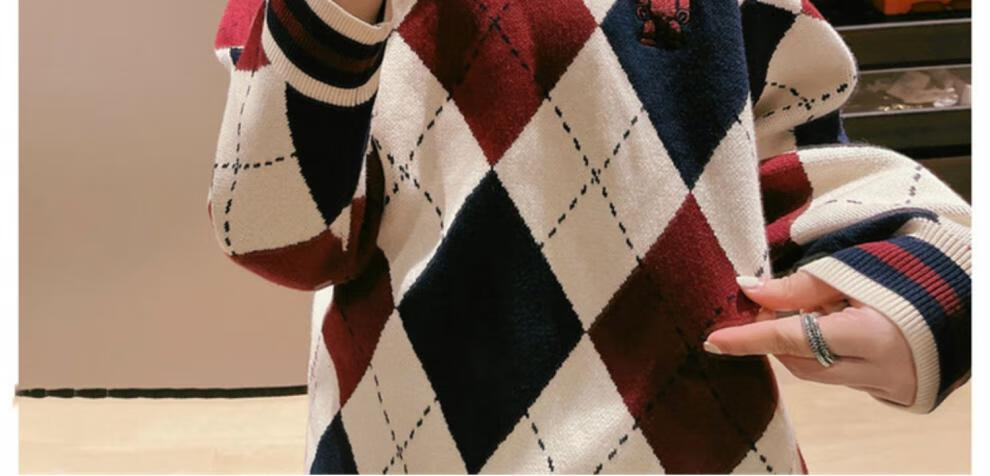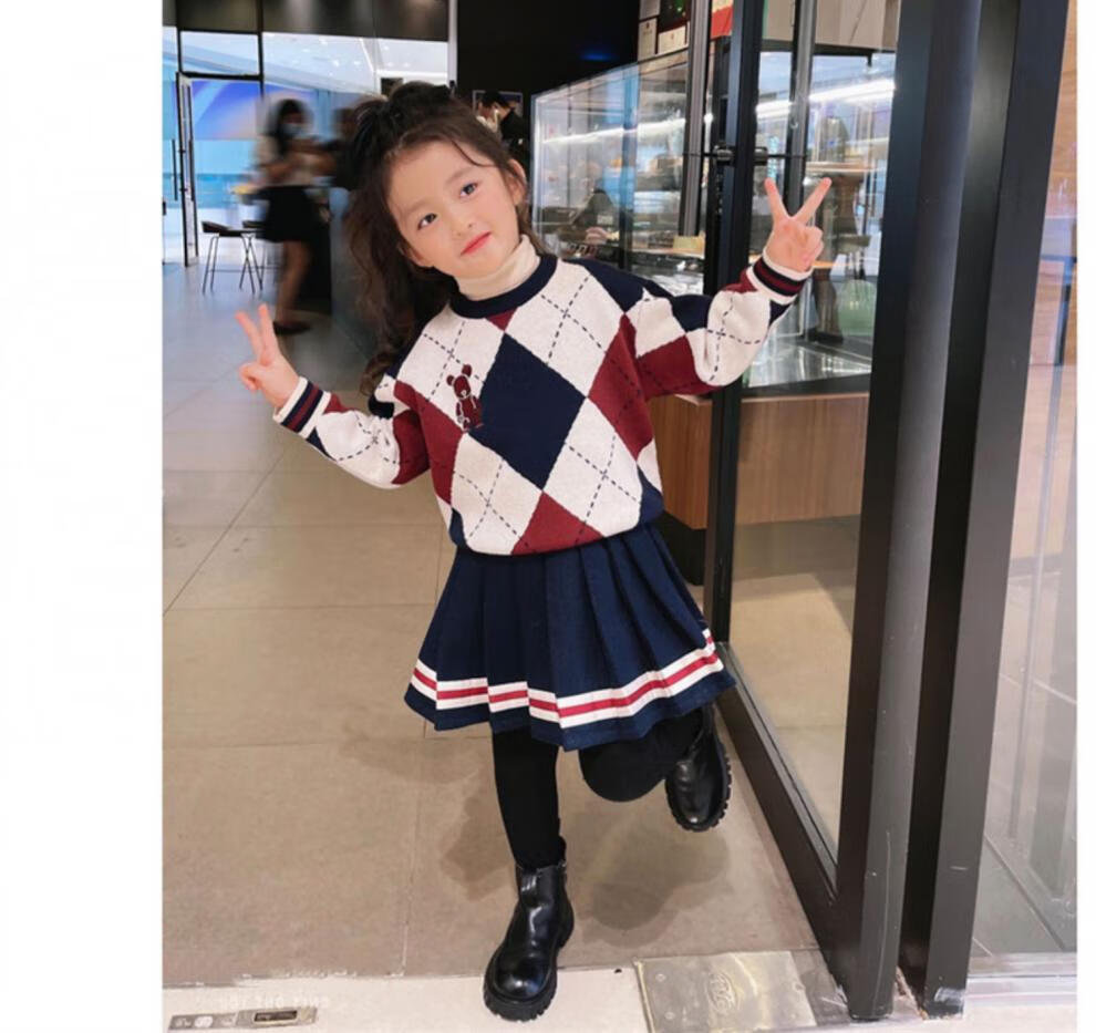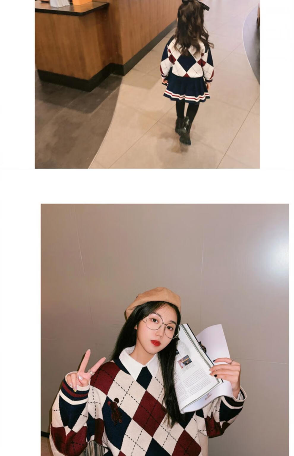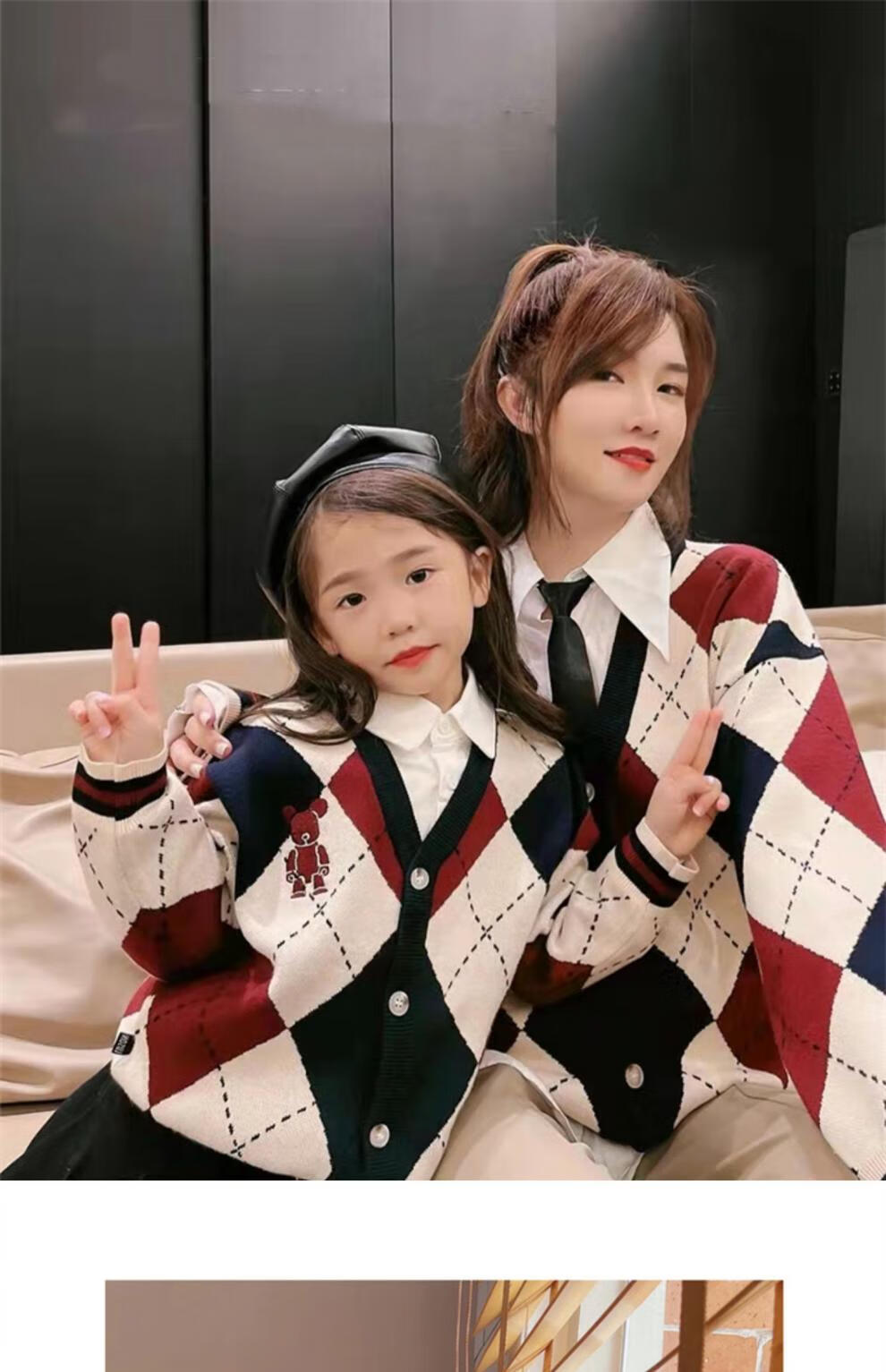 G.duck bombs the street parent-child outfits for a family of three in autumn and winter, mother-daughter outfits, mother-child outfits, Western-style knitted cardigans, Chinese New Year outfits, trendy sweaters, patchwork color cardigans and sweaters, 80 children's tops