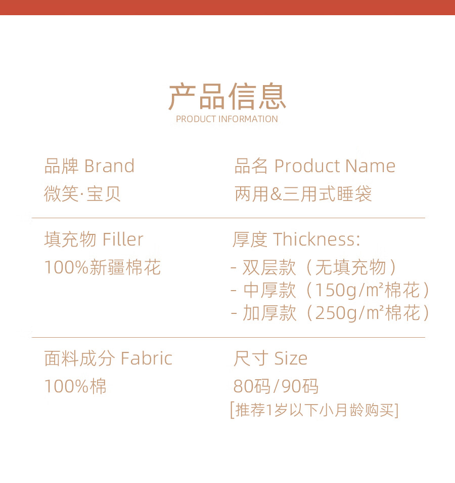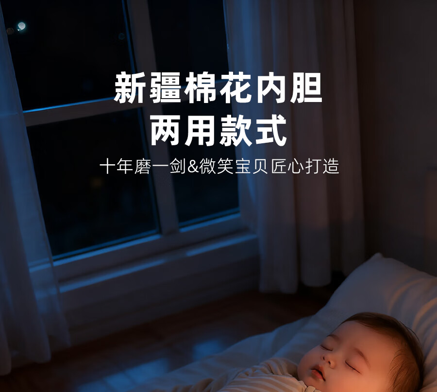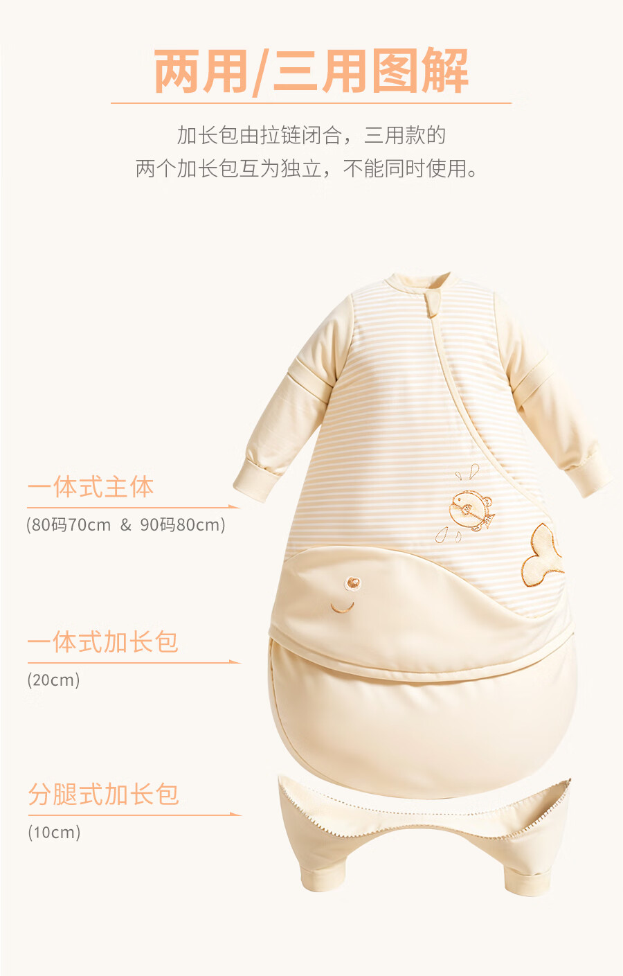Smile Baby Baby Sleeping Bag Autumn and Winter Style Thickened Cotton Liner Small Month-old Pure Cotton Children's Anti-Kick Quilt Baby Sleeping Bag Spring and Autumn Style Dual-Purpose Thickened Style 100% Cotton Liner Net Length 90cm (You can buy it if you are about 80cm tall, and the extension bag can be used up to 3-5 years old)