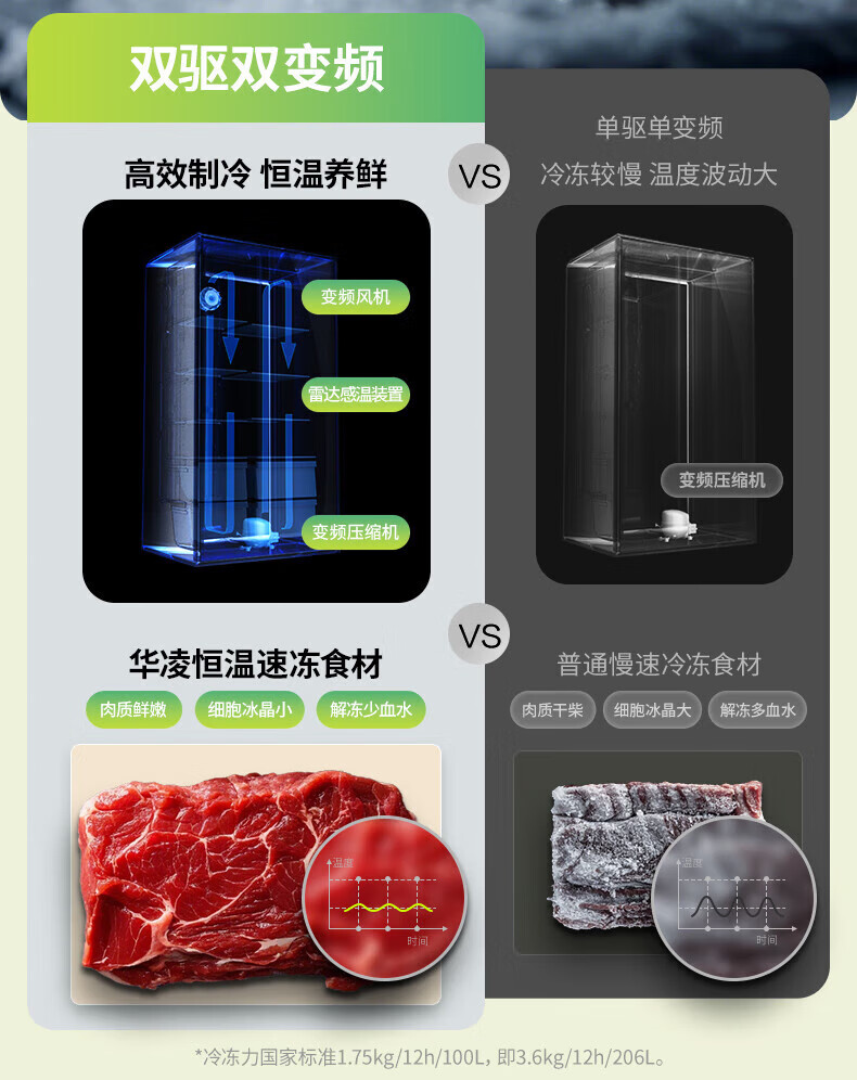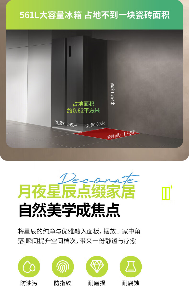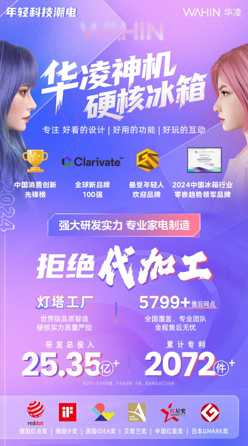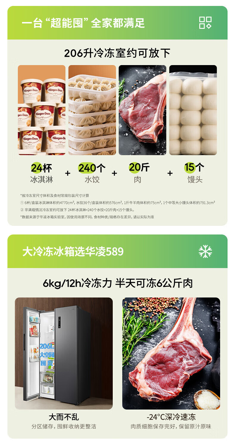 Hualing Refrigerator 589 double-door double-door large-capacity first-class energy-efficiency double frequency conversion circulation system PT clean smell ultra-thin air-cooled frost-free energy-saving household refrigerator HR-589WKP produced by Midea