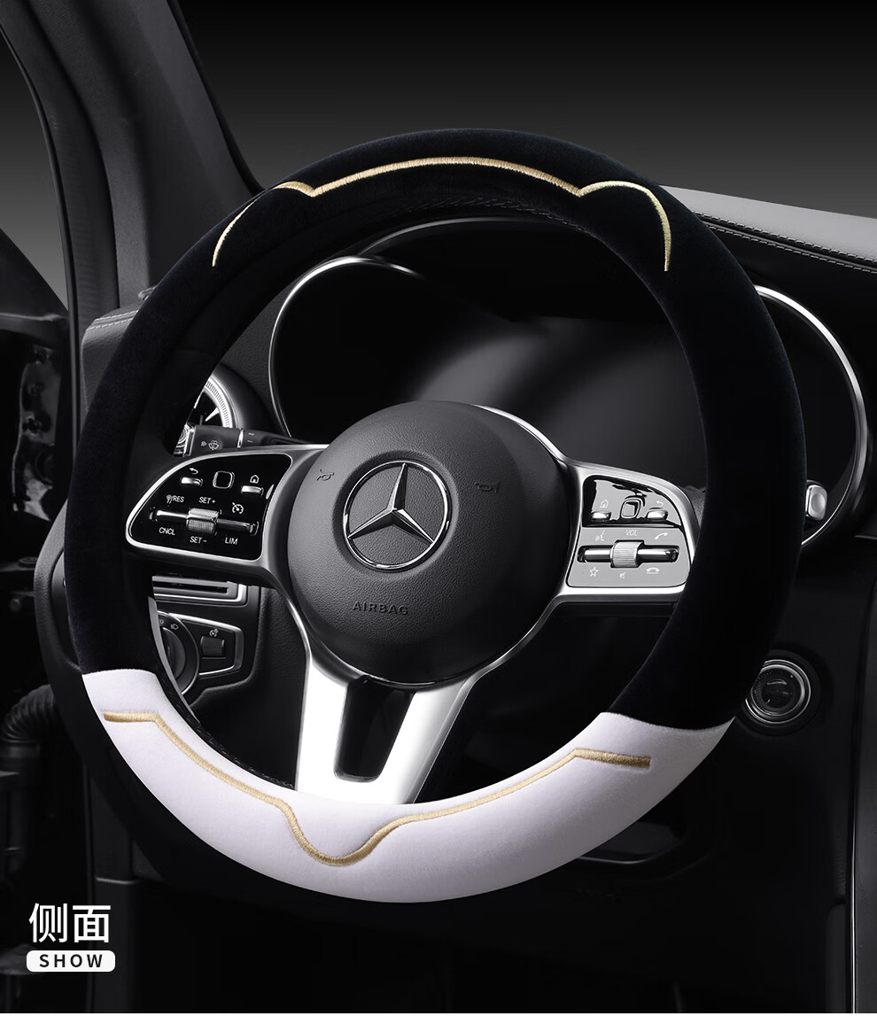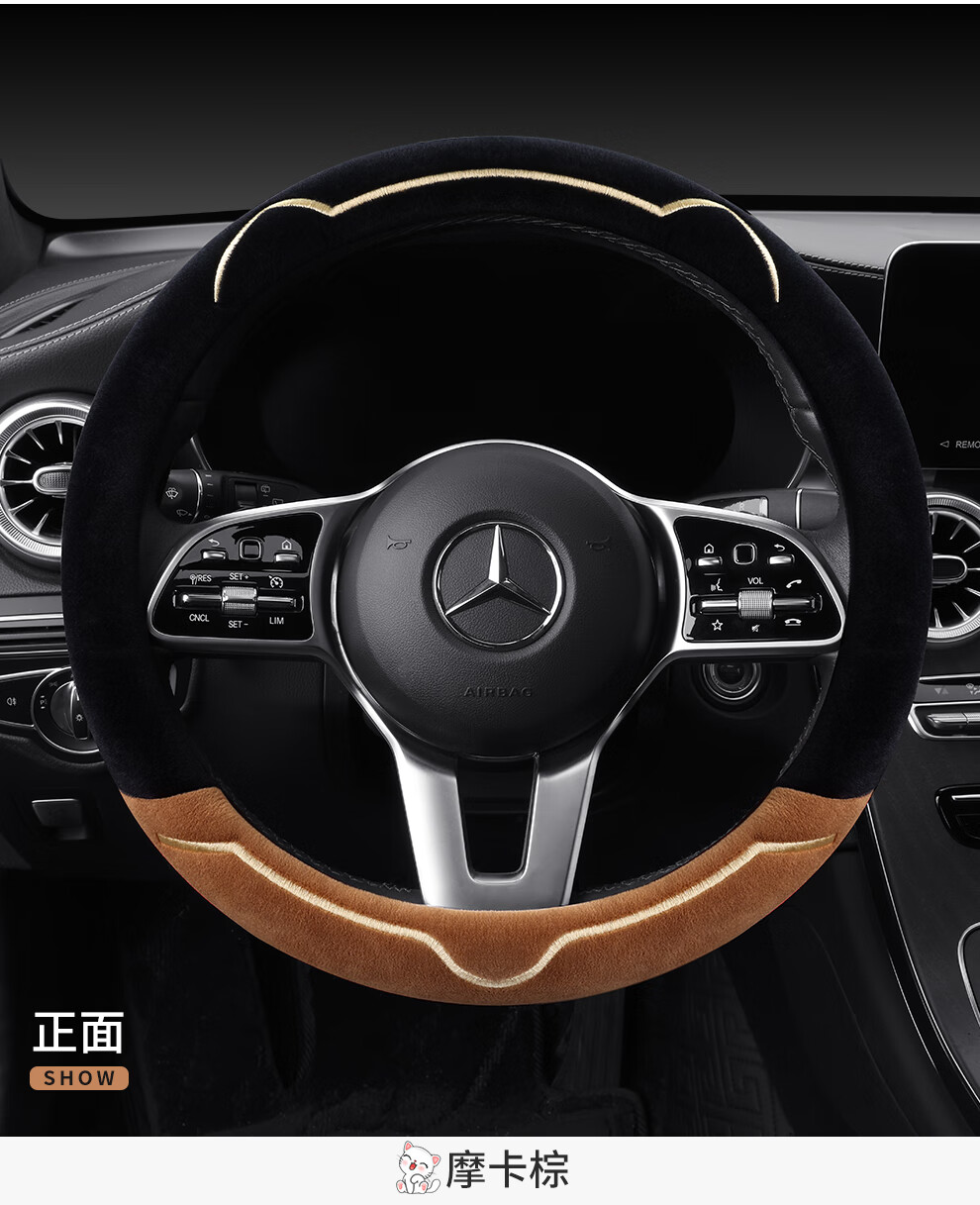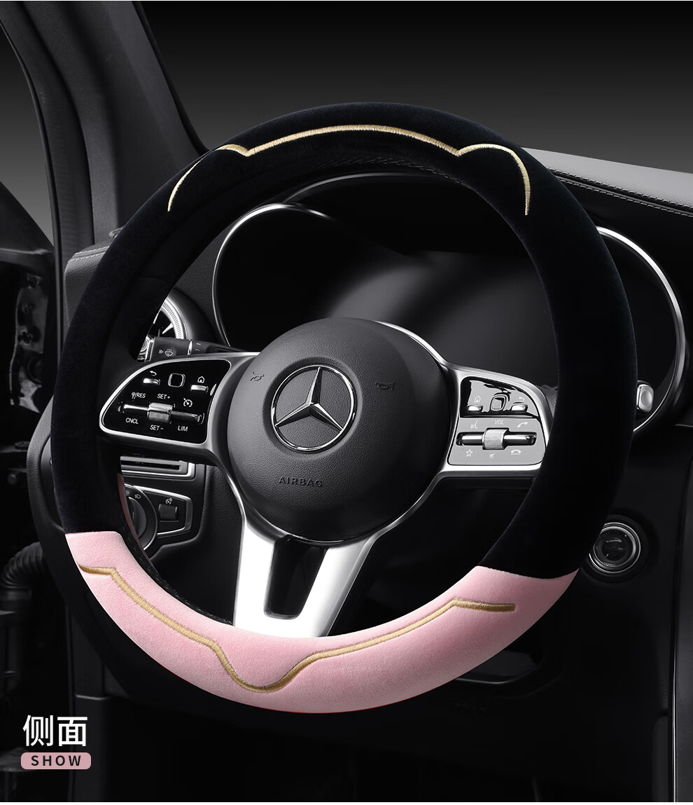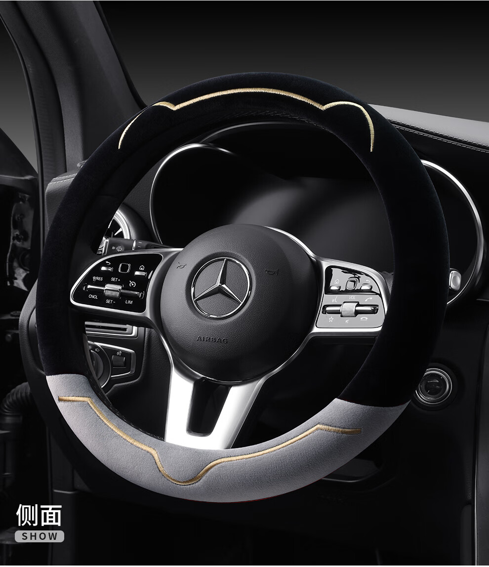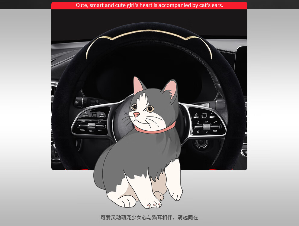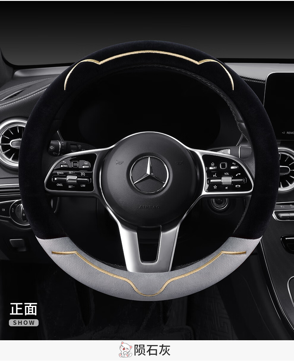 Car steering wheel cover new cat ear series plush, comfortable winter grip, wear-resistant, scratch-resistant, cute and warm, meteorite gray D type