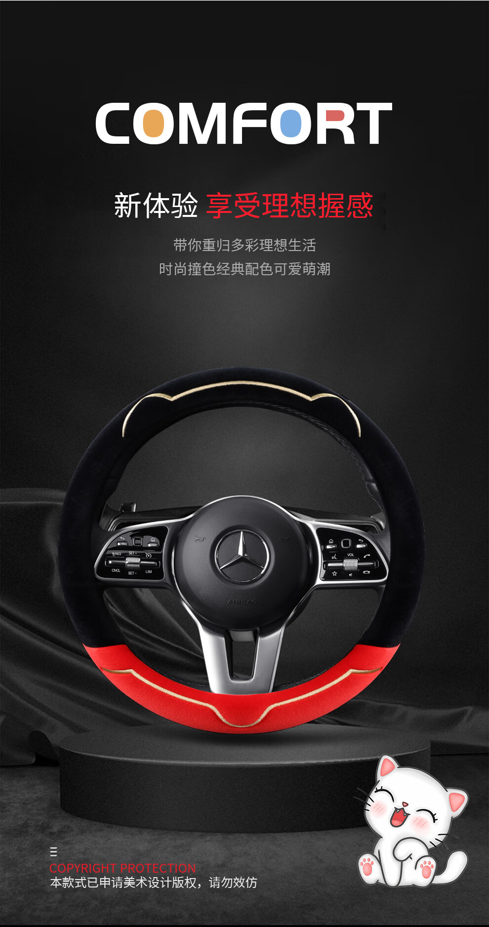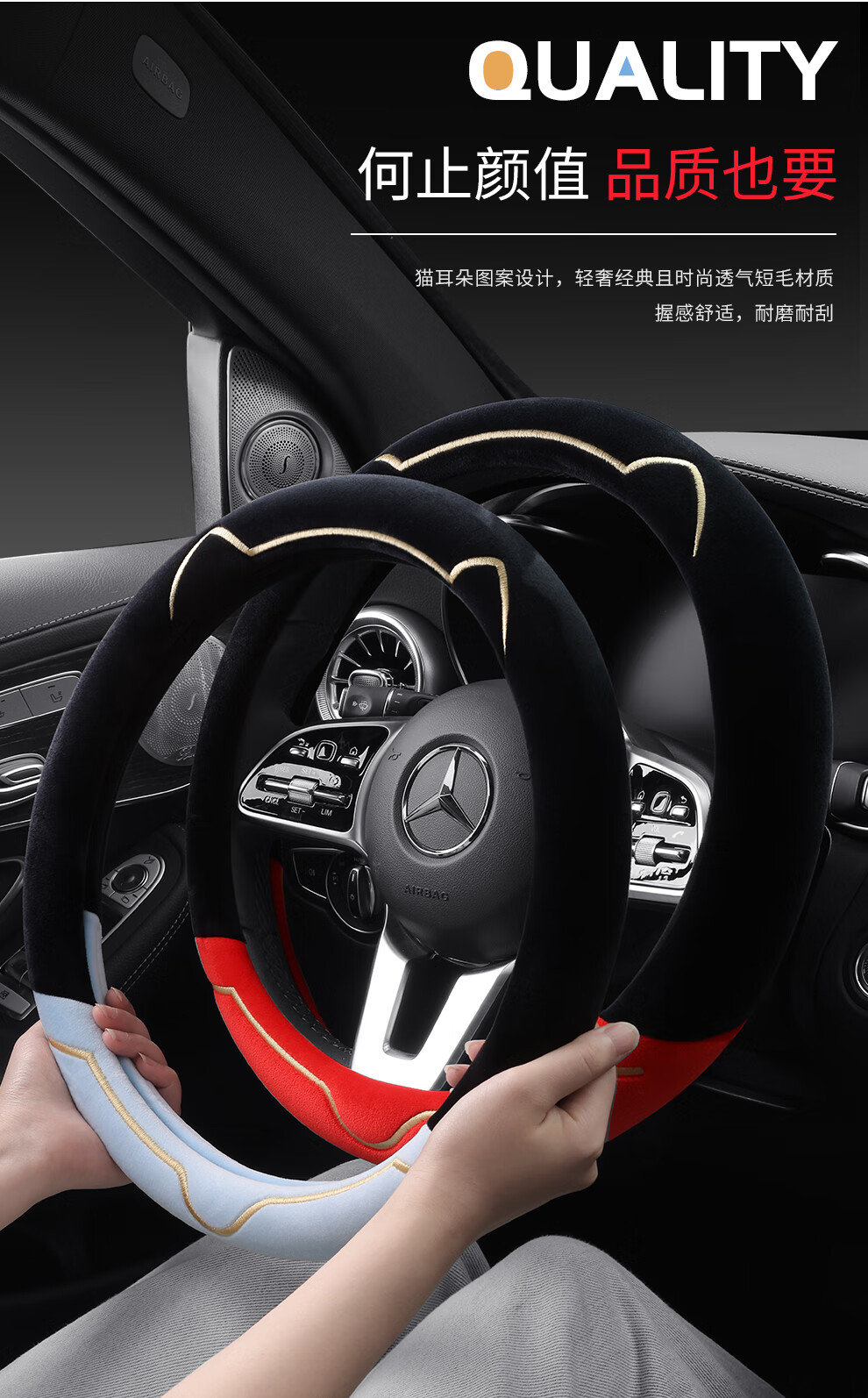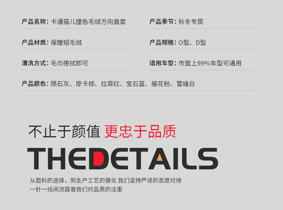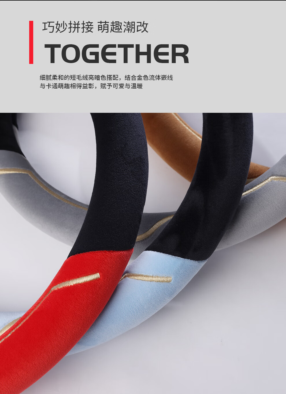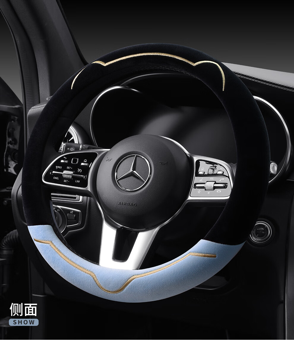 Car steering wheel cover new cat ear series plush, comfortable winter grip, wear-resistant, scratch-resistant, cute and warm, meteorite gray D type