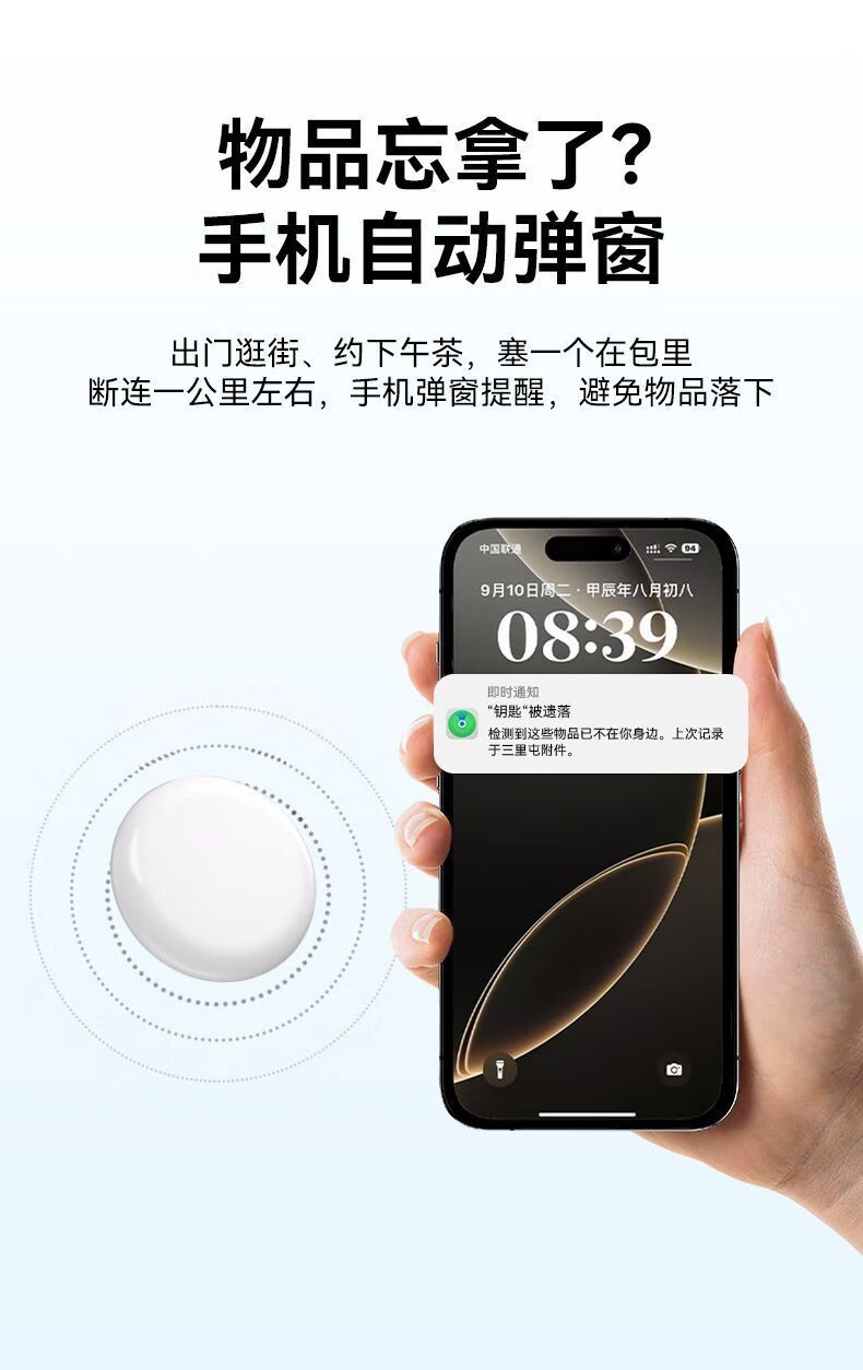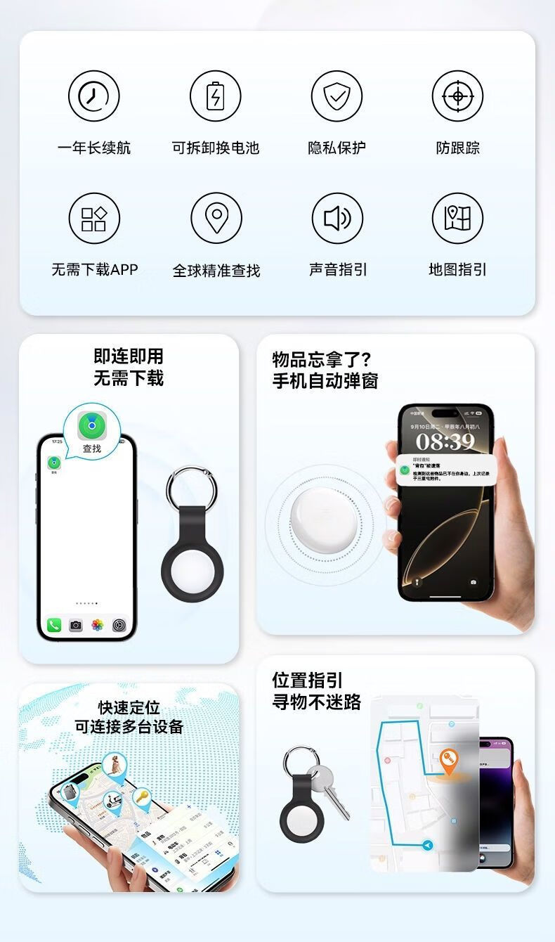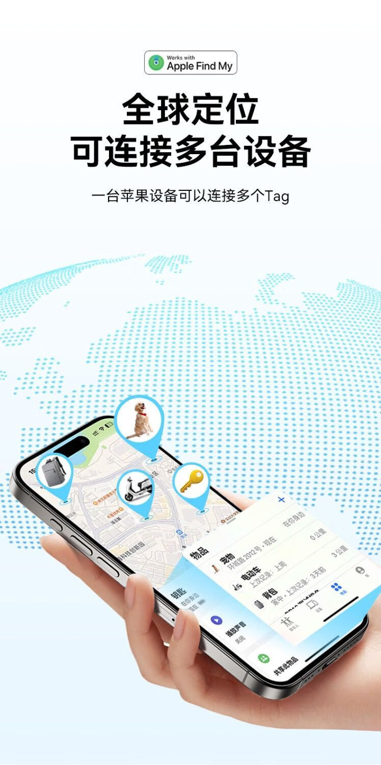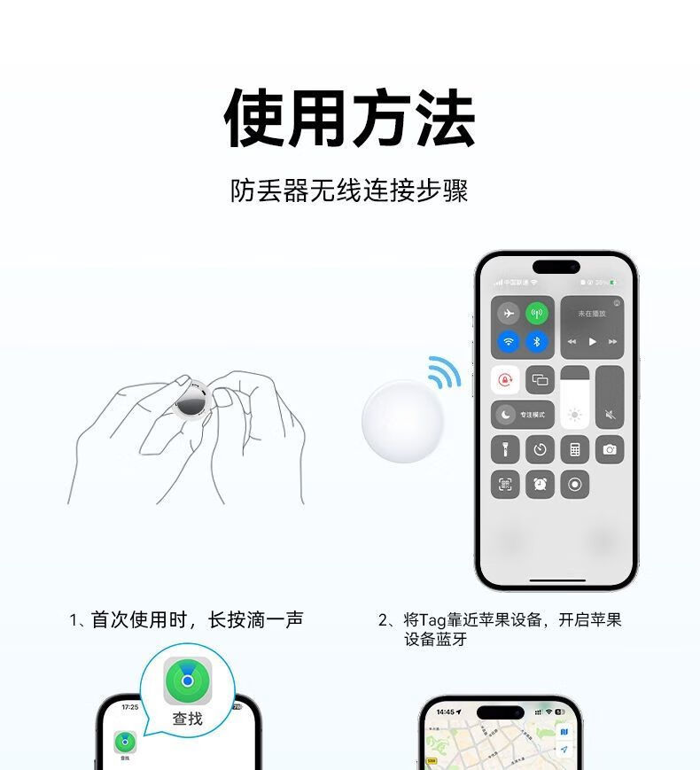 Locator GPS anti-lost device airtag replacement suitable for Apple pets, the elderly, car keys, schoolbags, mobile phone anti-lost, smart reminder, lost search and positioning T-01 black locator, one pack, meter-level positioning | super long battery life