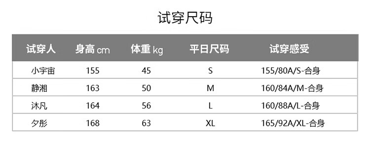 China (cm) 160-165/84-86 165-170 / 88-90 167-172 / 92-96 168-173 / 98-102 170-176 / 106-110