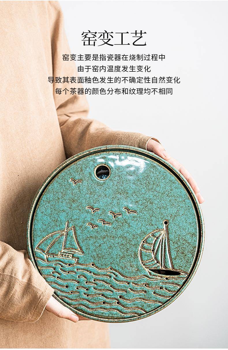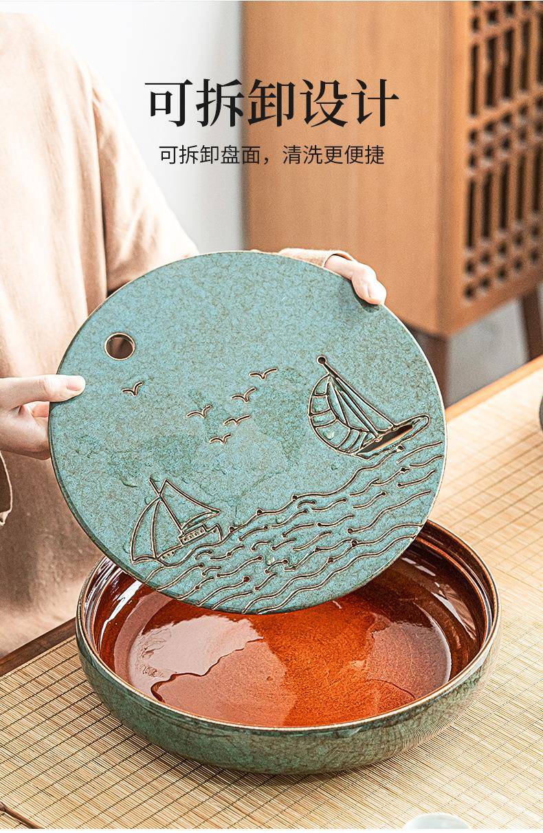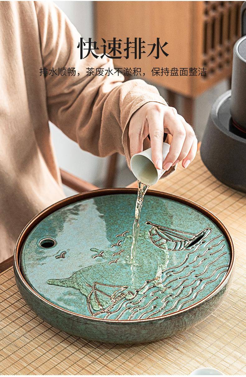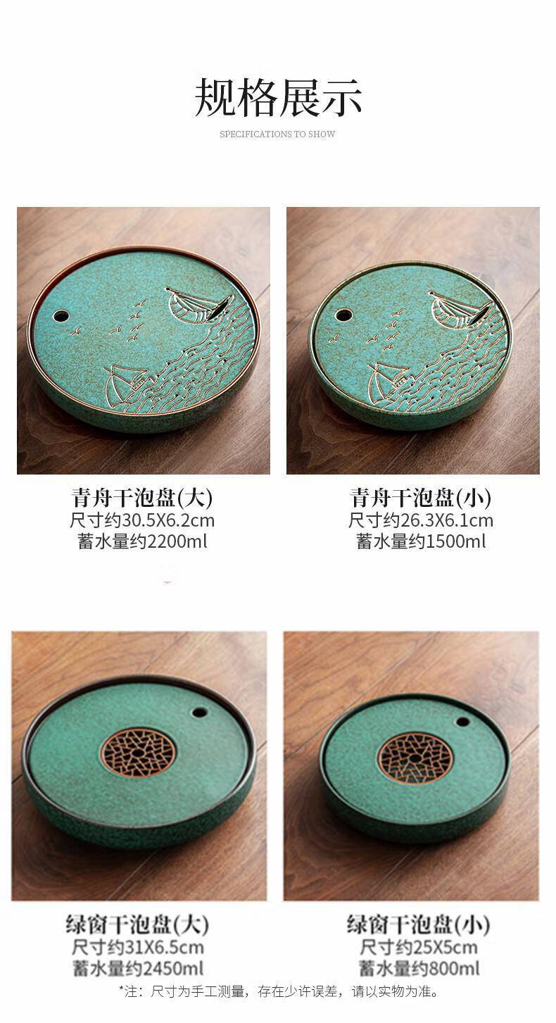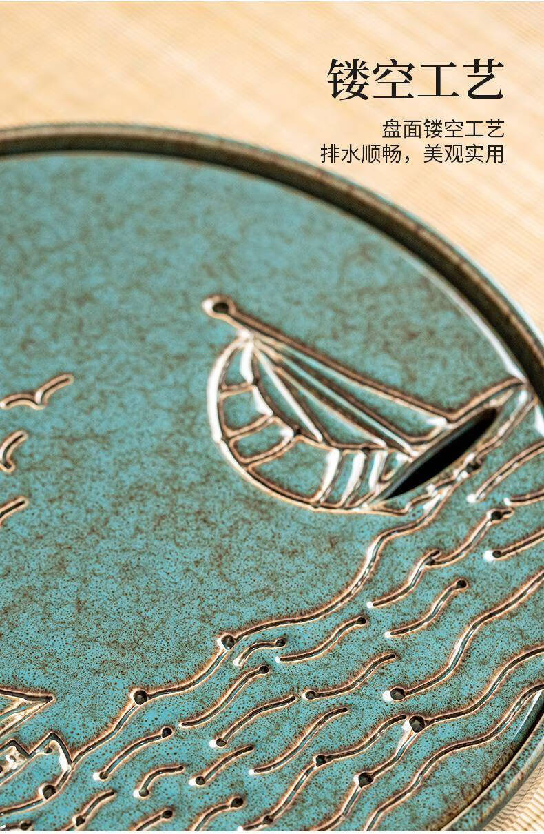 Ceramic dry tea tray for home living room Japanese-style water storage tea tray small creative tea table round Kung Fu tea sea Qingzhou ceramic tea tray *30.5*30.5cm large size