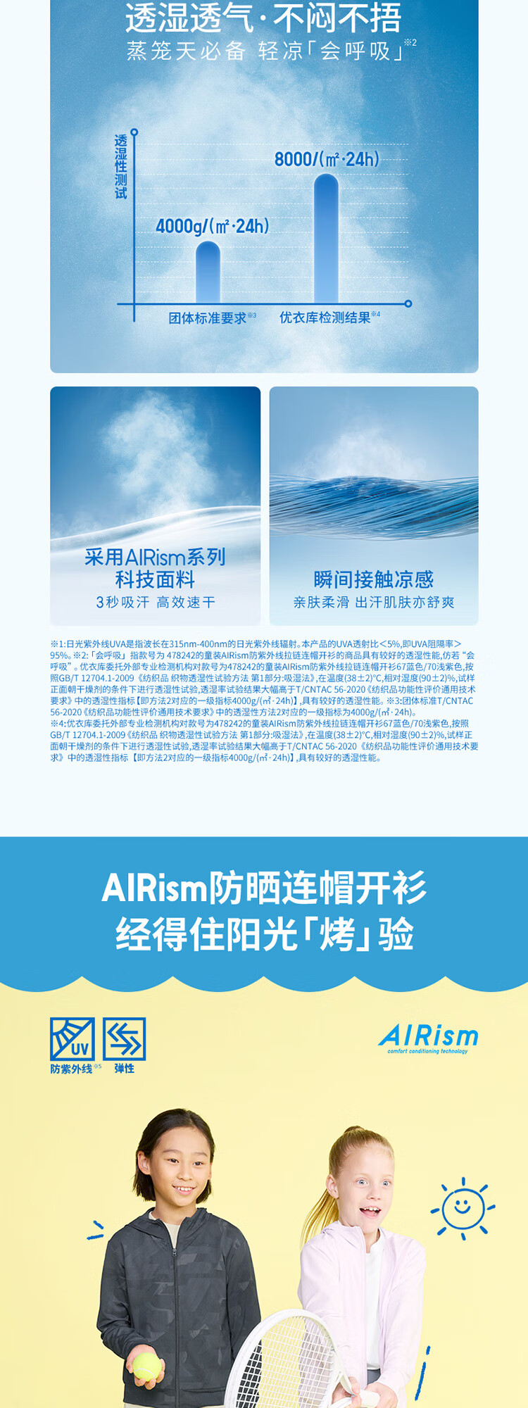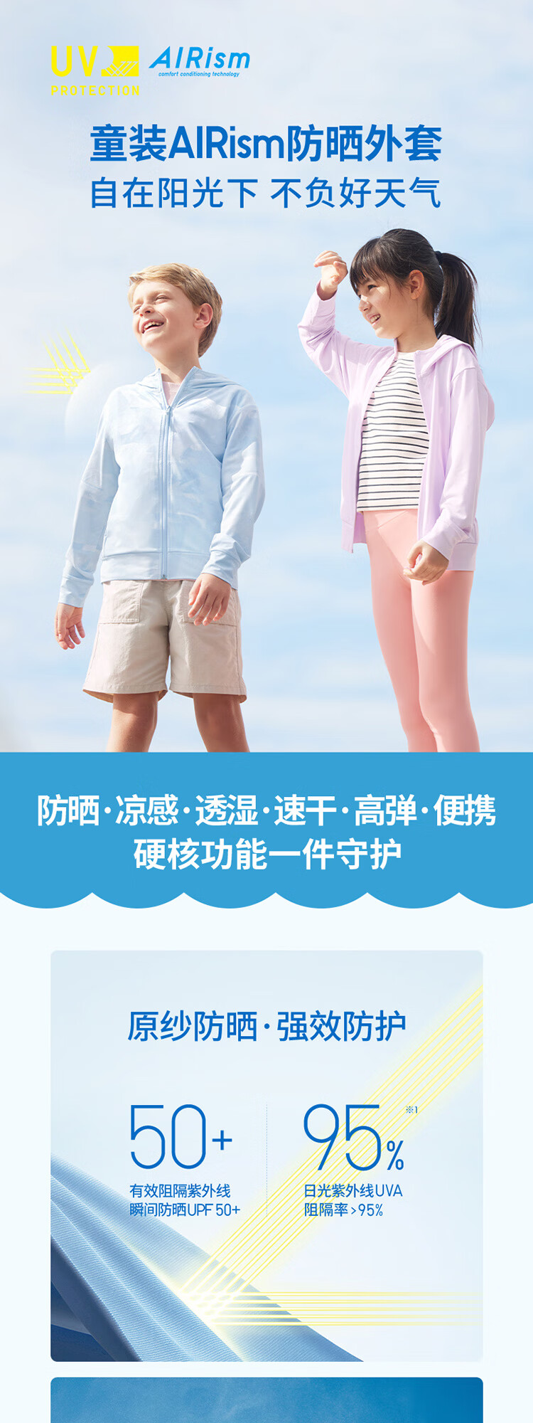 Uniqlo children's clothing for boys and girls AIRism anti-UV zipper hooded cardigan sun protection clothes breathable 478242 00 white 120
