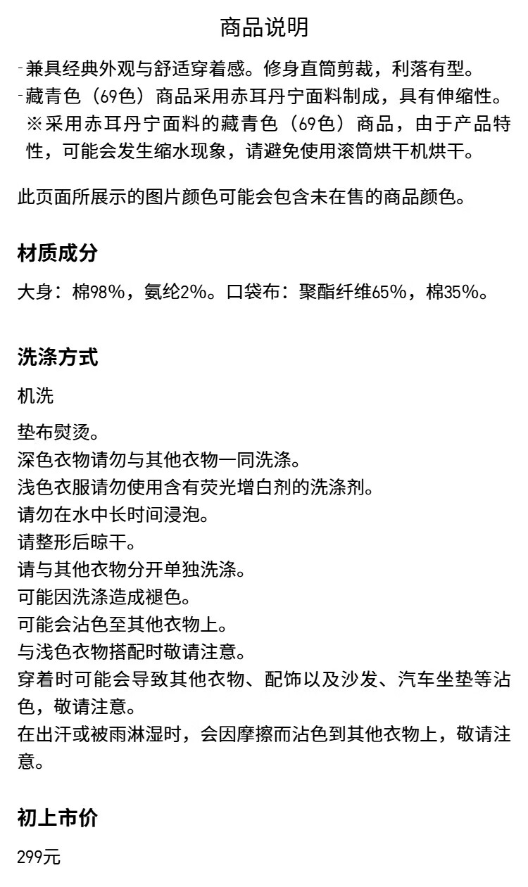 Outseam (cm) 99 cm 101.5 cm 104 cm 106.5 cm 109 cm