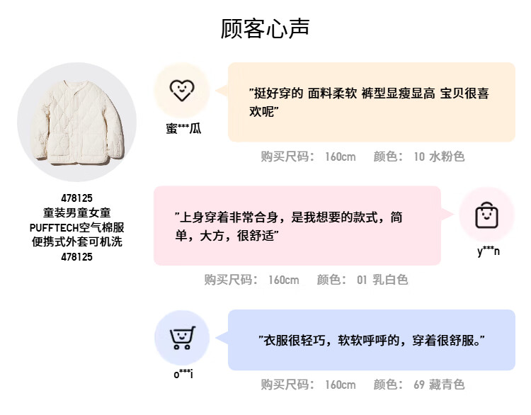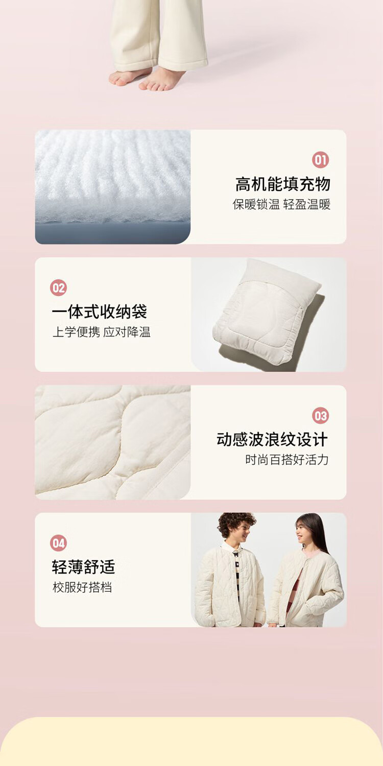Uniqlo children's clothing boys and girls PUFFTECH air cotton portable jacket machine washable 478125 69 navy blue 160