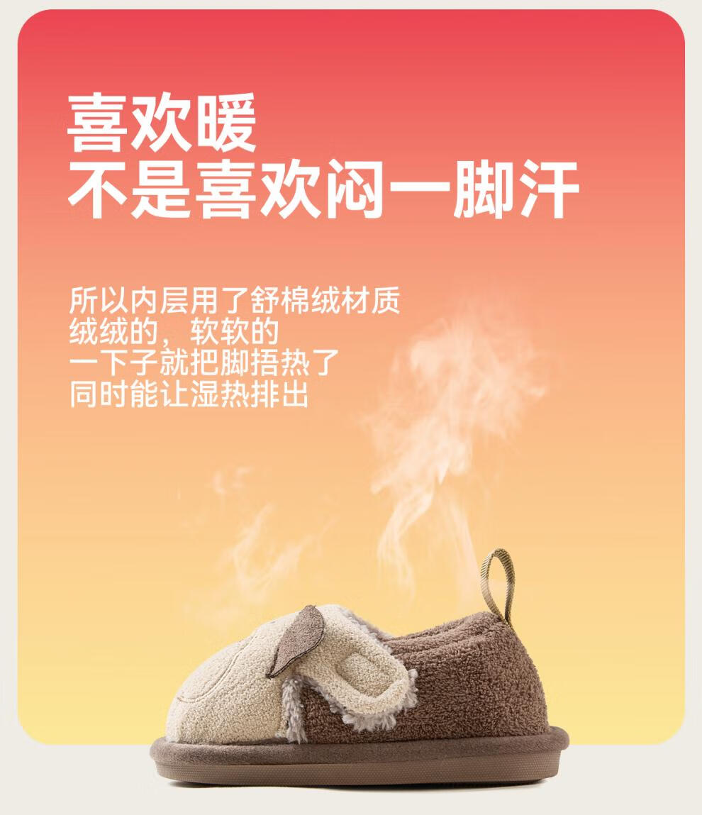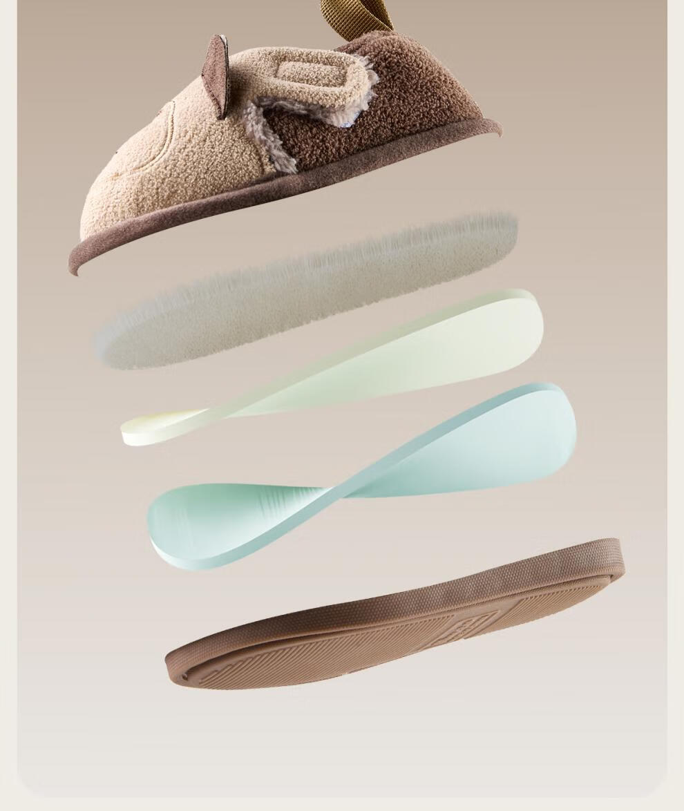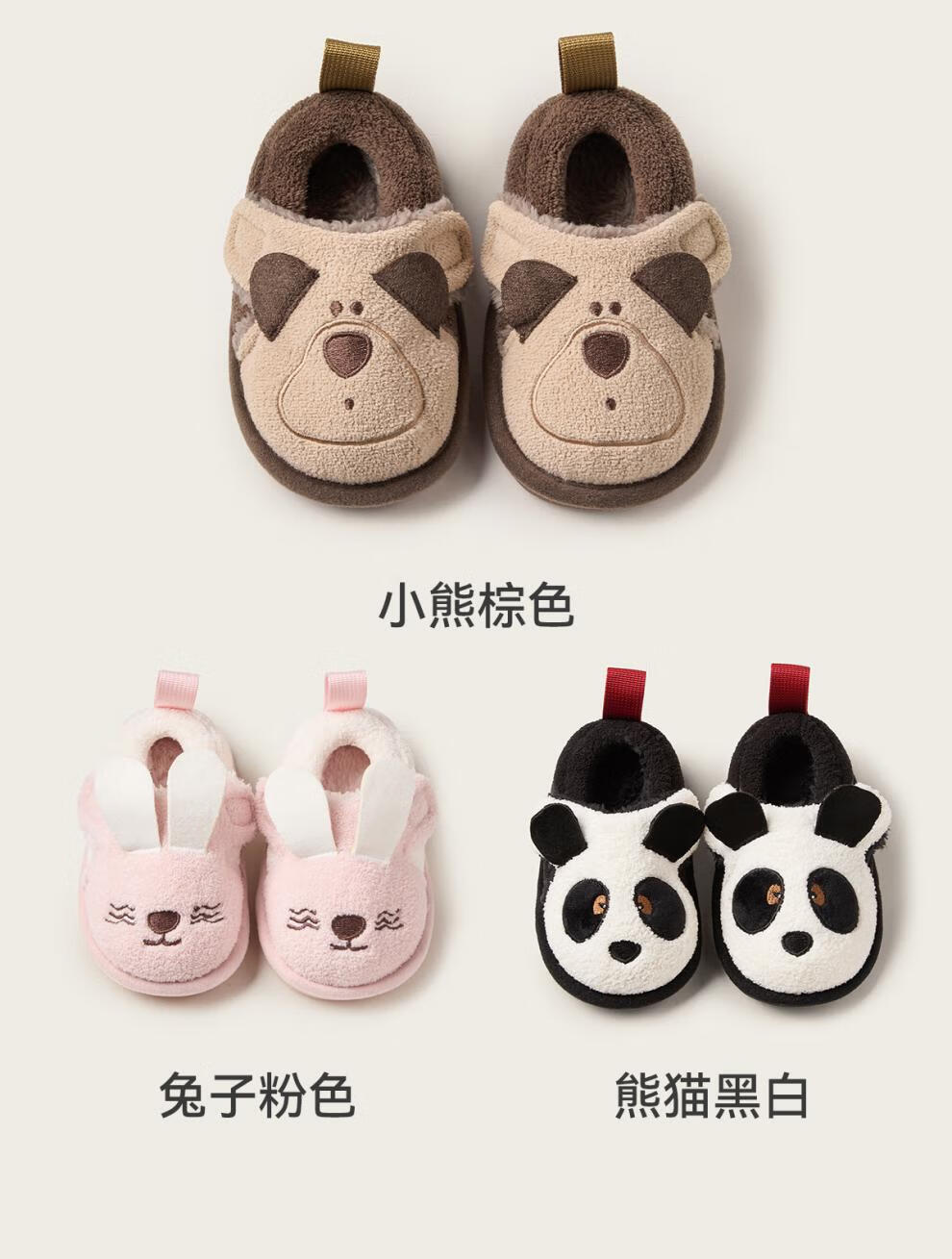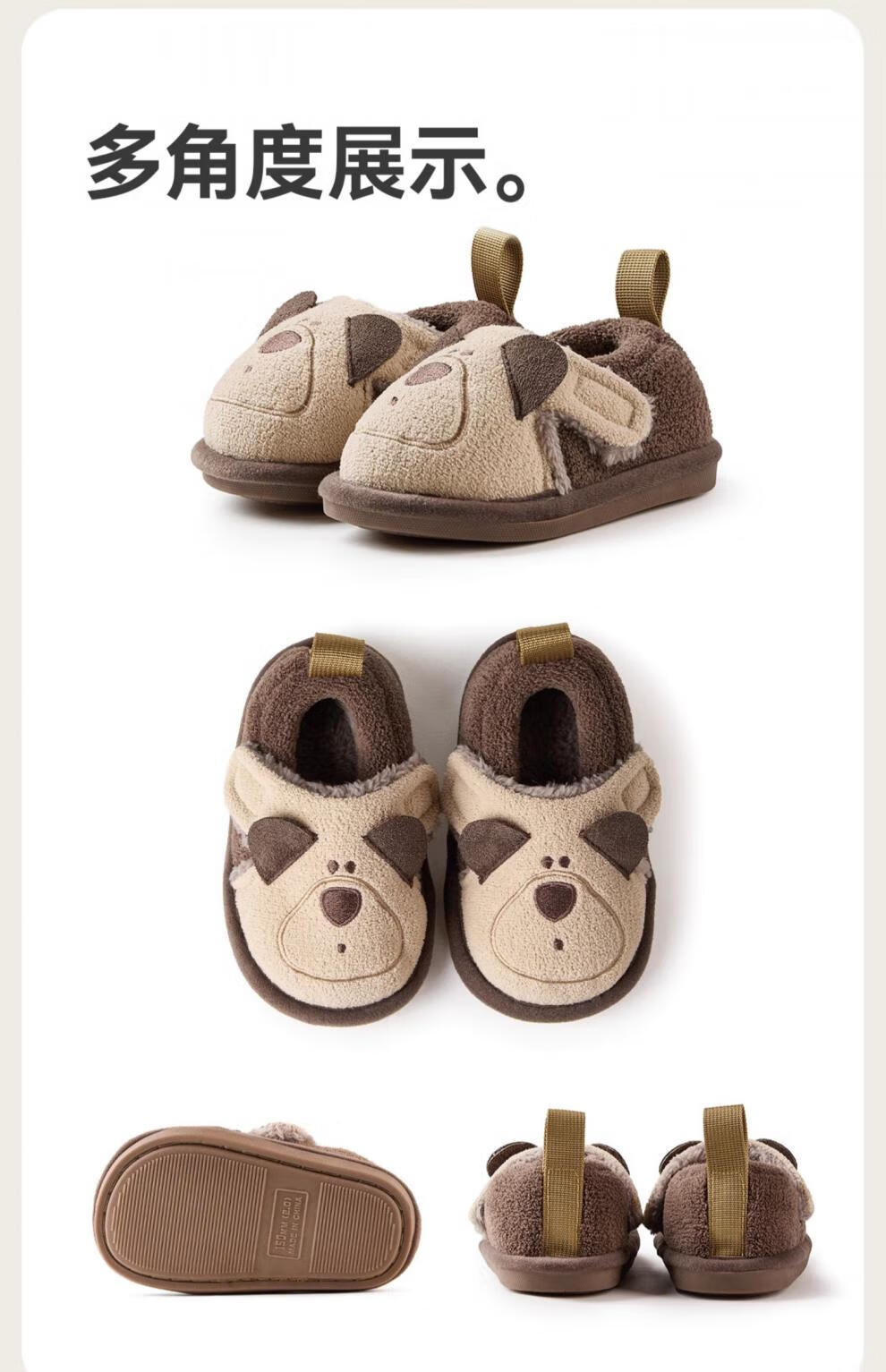 幸福玛丽(Cheerful Mario)新品宝宝棉拖鞋秋冬季儿童防滑包跟家居鞋可爱女童男童棉鞋室内穿 小熊棕色 10.5 内长14cm(140)适合脚长12cm