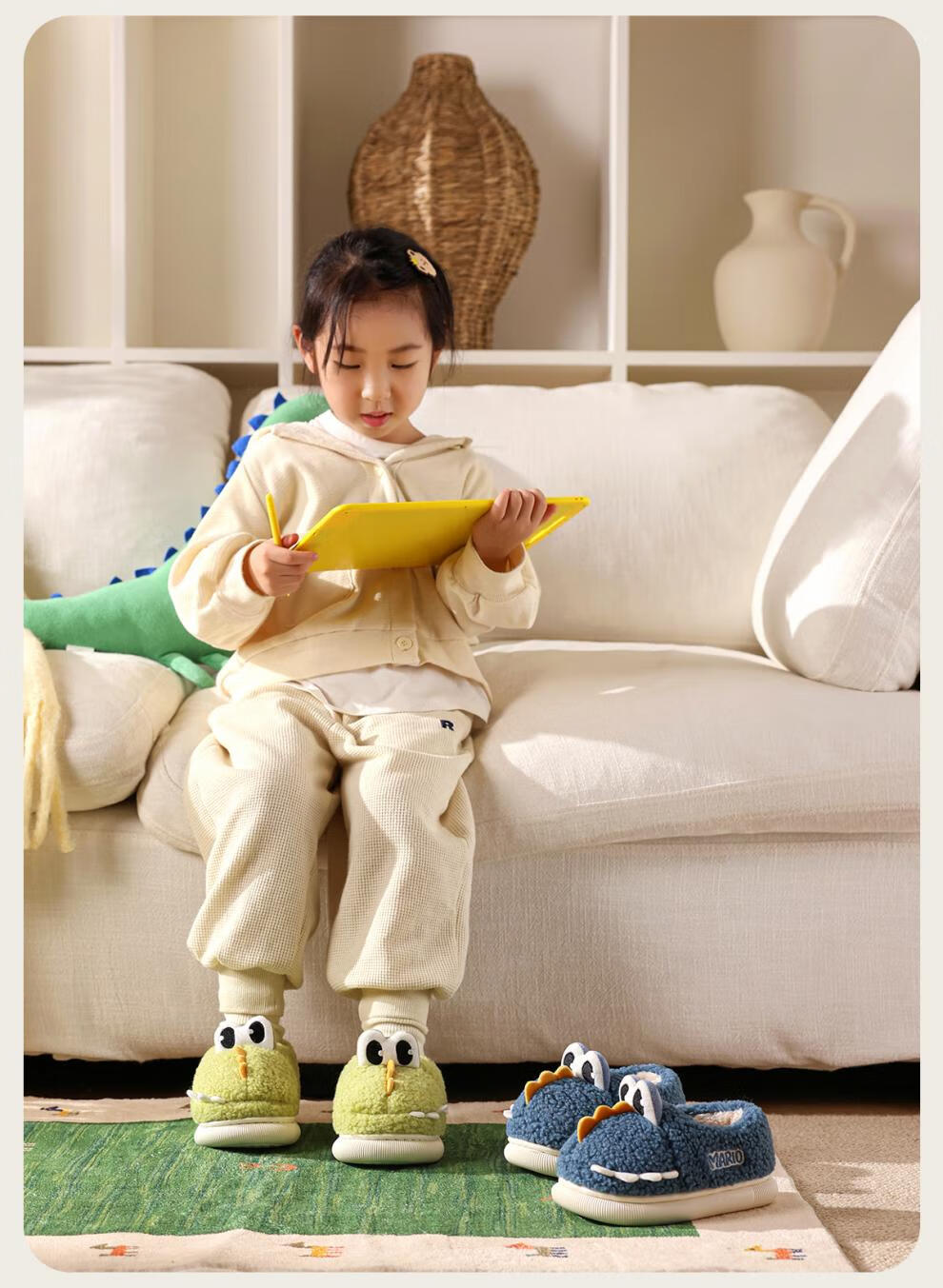 幸福玛丽(Cheerful Mario)新品宝宝棉拖鞋2025儿童冬季包跟毛毛棉鞋男童室内家居鞋 藏青色 10.5 内长14cm(140)适合脚长13cm