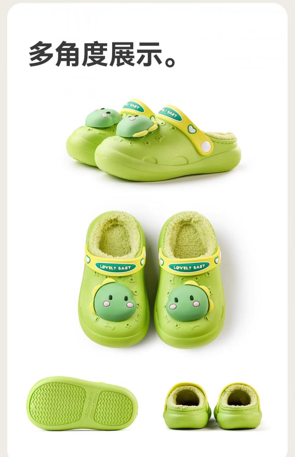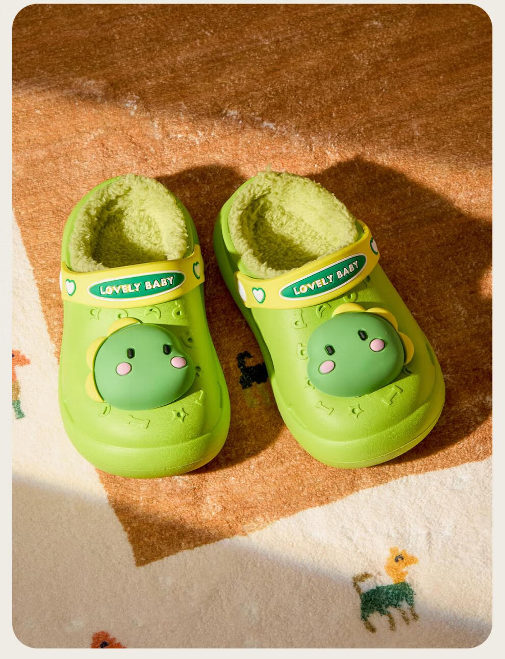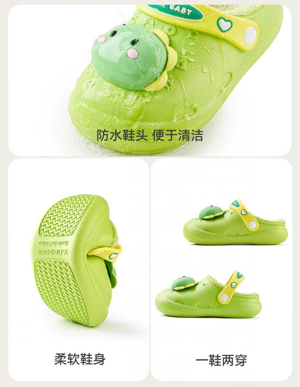 Cheerful Mario Bear Baby Winter Waterproof Warm Cotton Slippers for Infants and Children Autumn and Winter Indoor Home Furnishing Boys and Girls New Style Fruit Green Dinosaur 10.5 Inner Length 14cm (15) Suitable for Foot Length 14cm